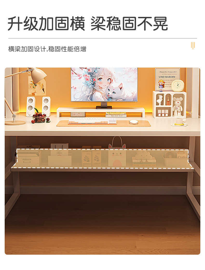 • [두꺼운 생태 원목 보드 40MM 두꺼운 철골] 유백색 80cm