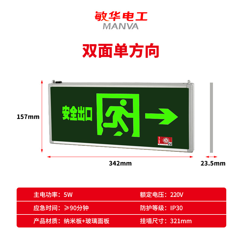 Minhua 화재 비상 조명 안전 출구 표시기 대피 표시 방수 및 방폭 대피 표시 새로운 국가 표준