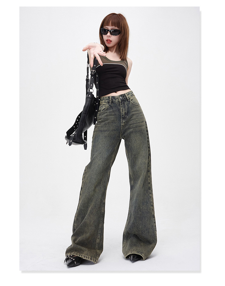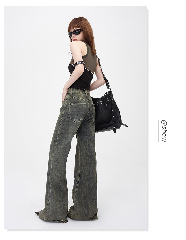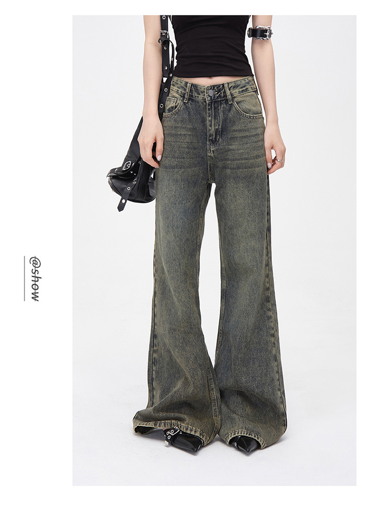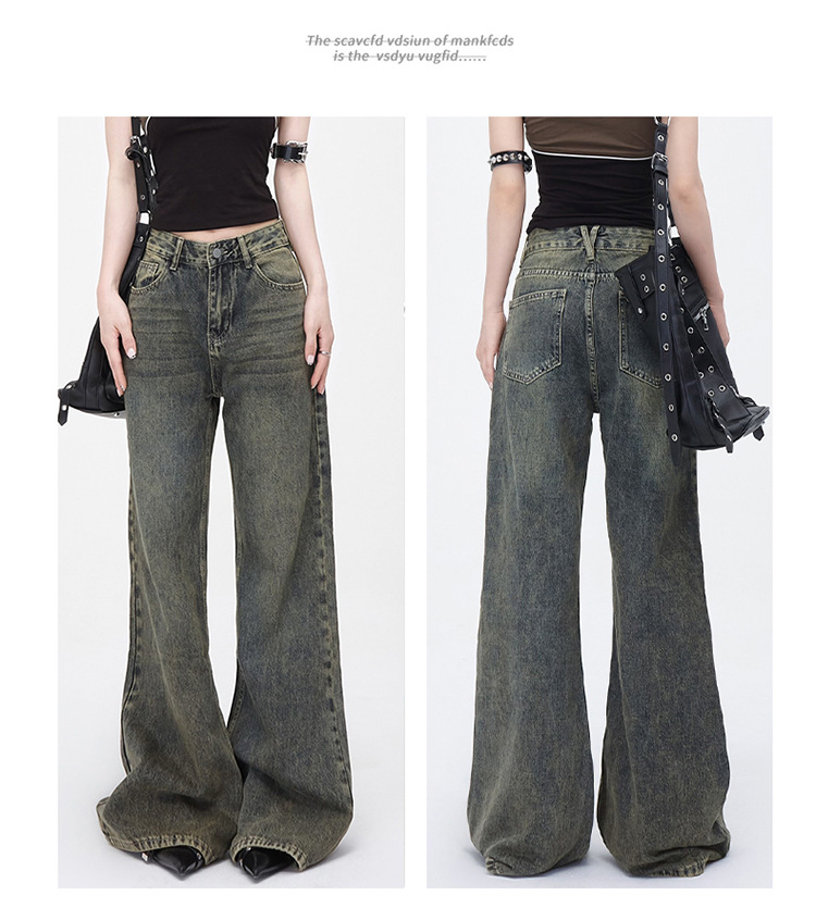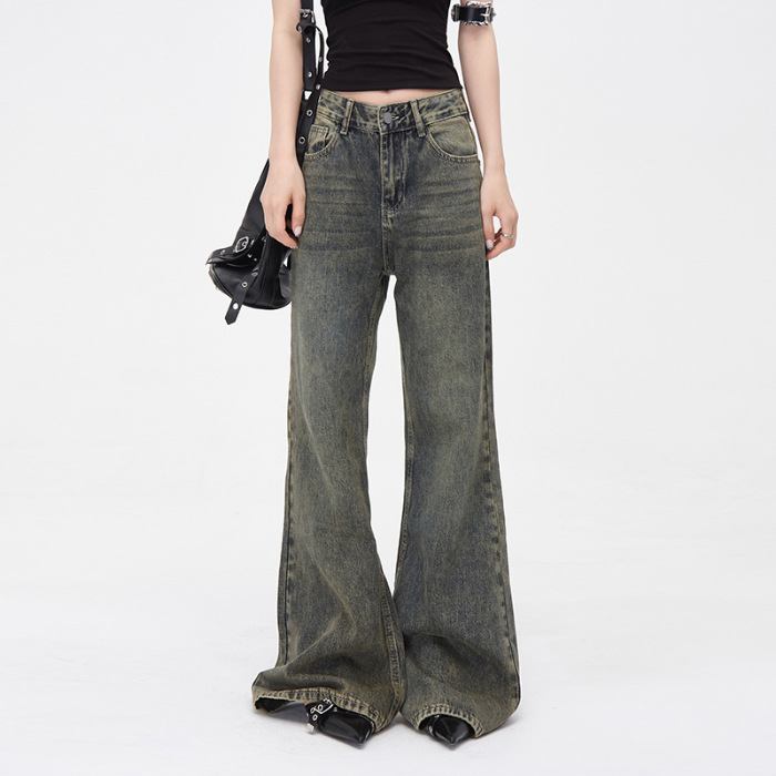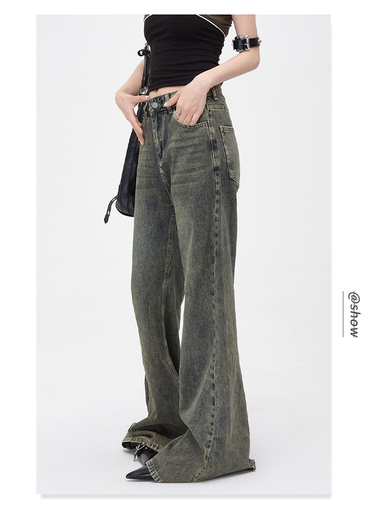 진흙 노란색 오래 된 Elasticless 느슨한 데님 걸레 바지 하이 스트리트 미국 스타일 다리가 아닌 청바지 긴 바지스토어 가기