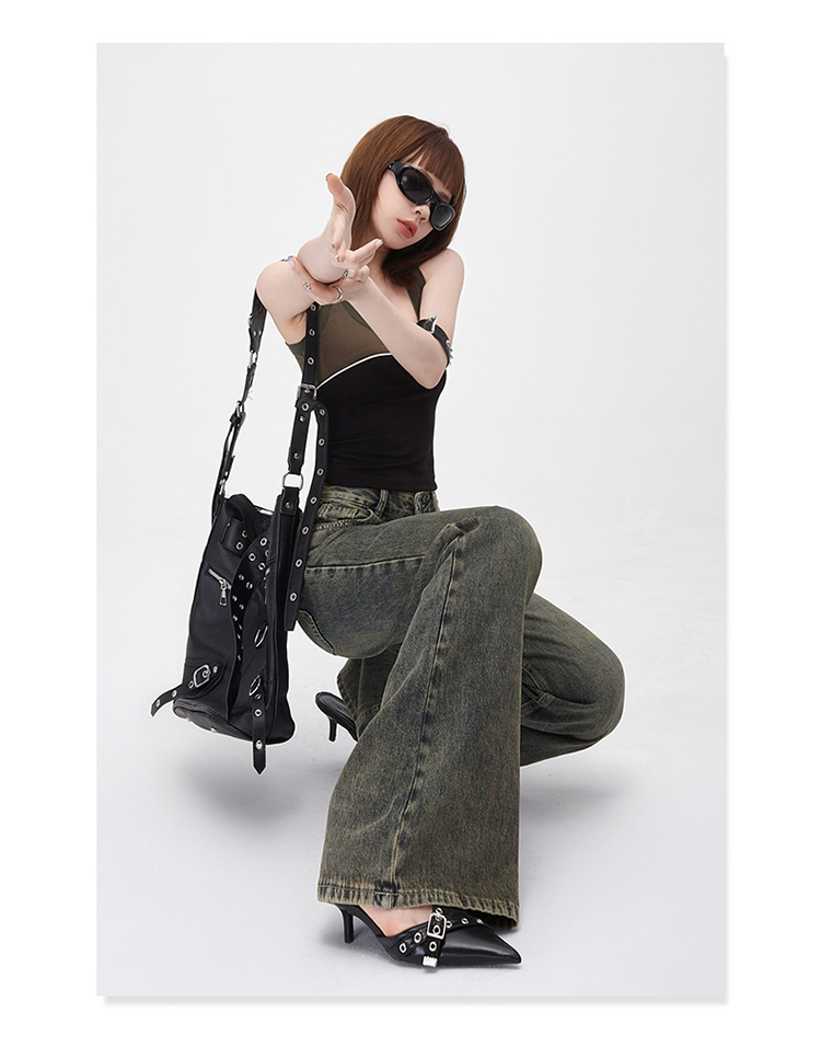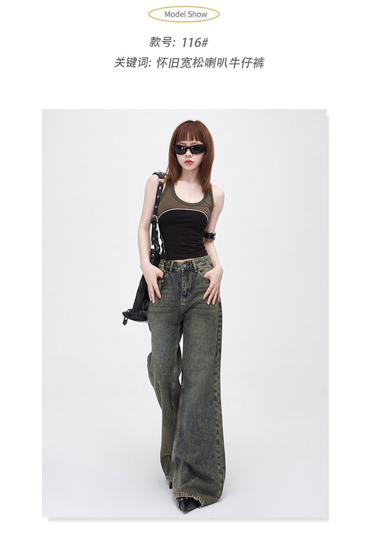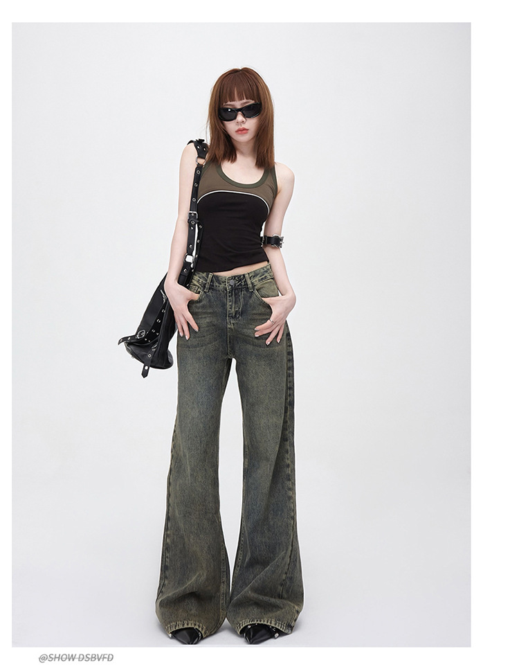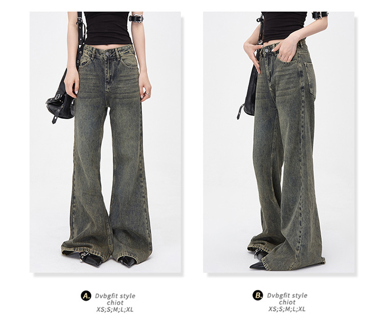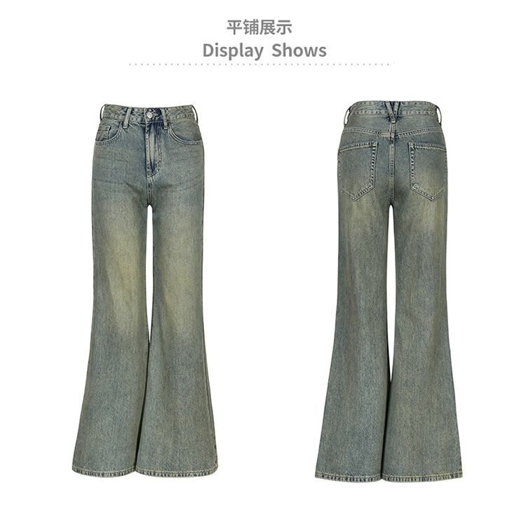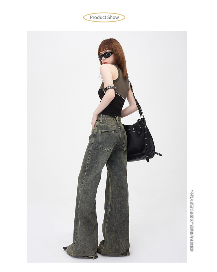 진흙 노란색 오래 된 Elasticless 느슨한 데님 걸레 바지 하이 스트리트 미국 스타일 다리가 아닌 청바지 긴 바지스토어 가기