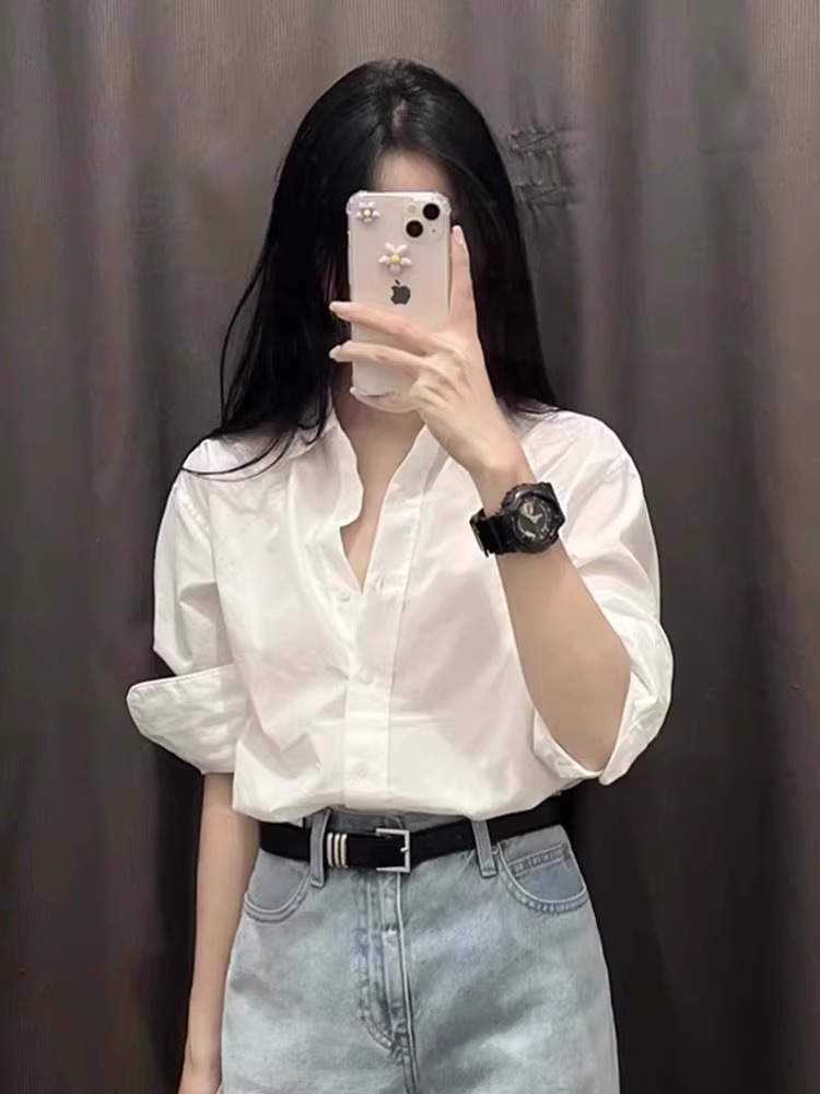 2025 봄 여름 신작 연예인 다재다능한 패션 프렌치 스타일 화이트 기질 통근 캐주얼 셔츠 여성용 루즈 셔츠스토어 가기