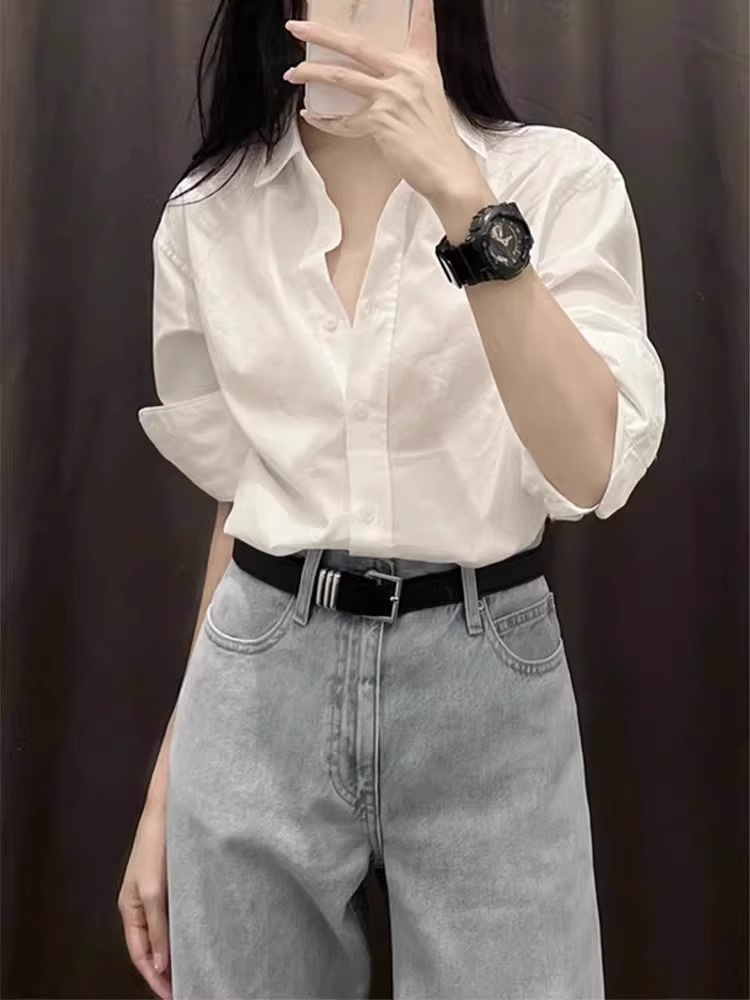 2025 봄 여름 신작 연예인 다재다능한 패션 프렌치 스타일 화이트 기질 통근 캐주얼 셔츠 여성용 루즈 셔츠
