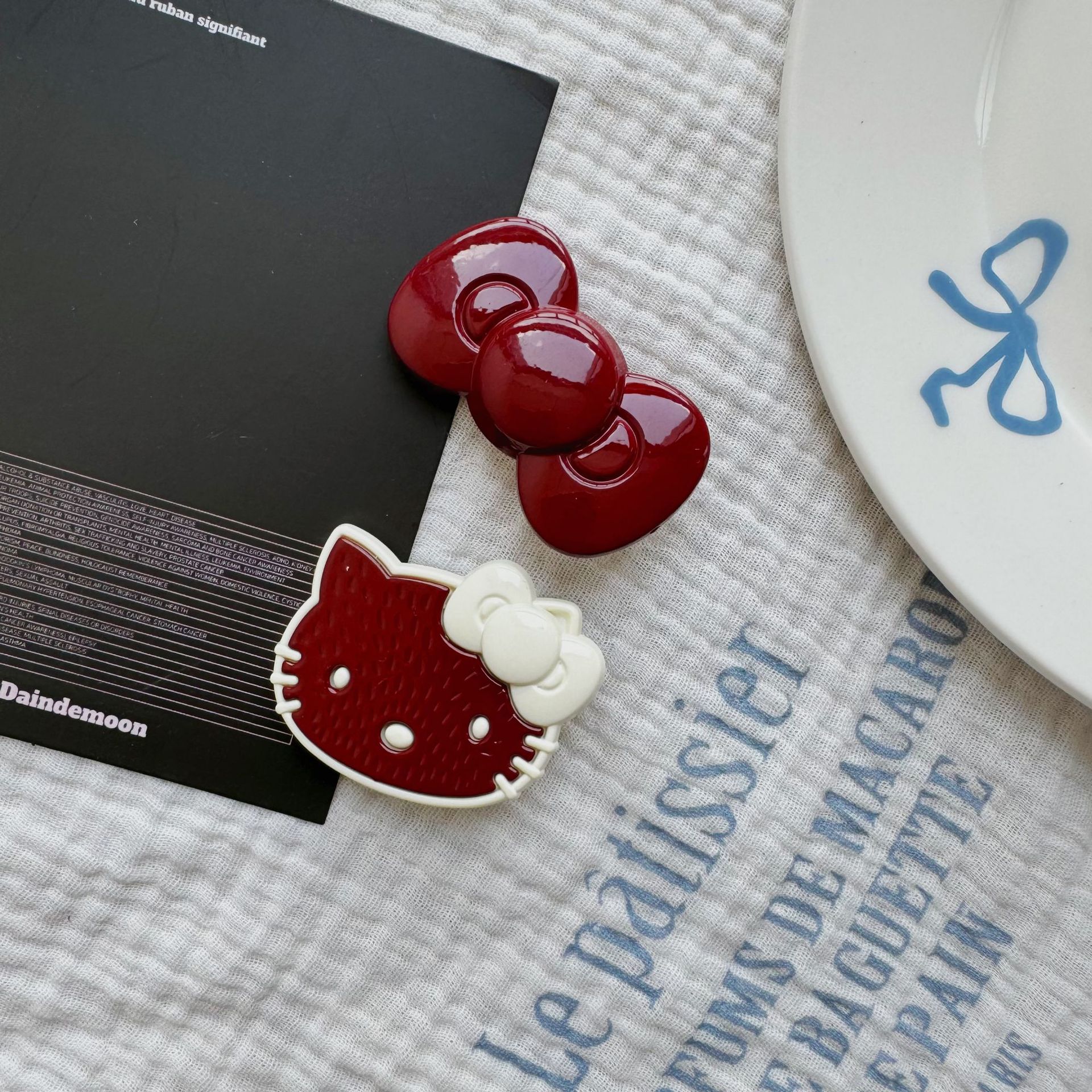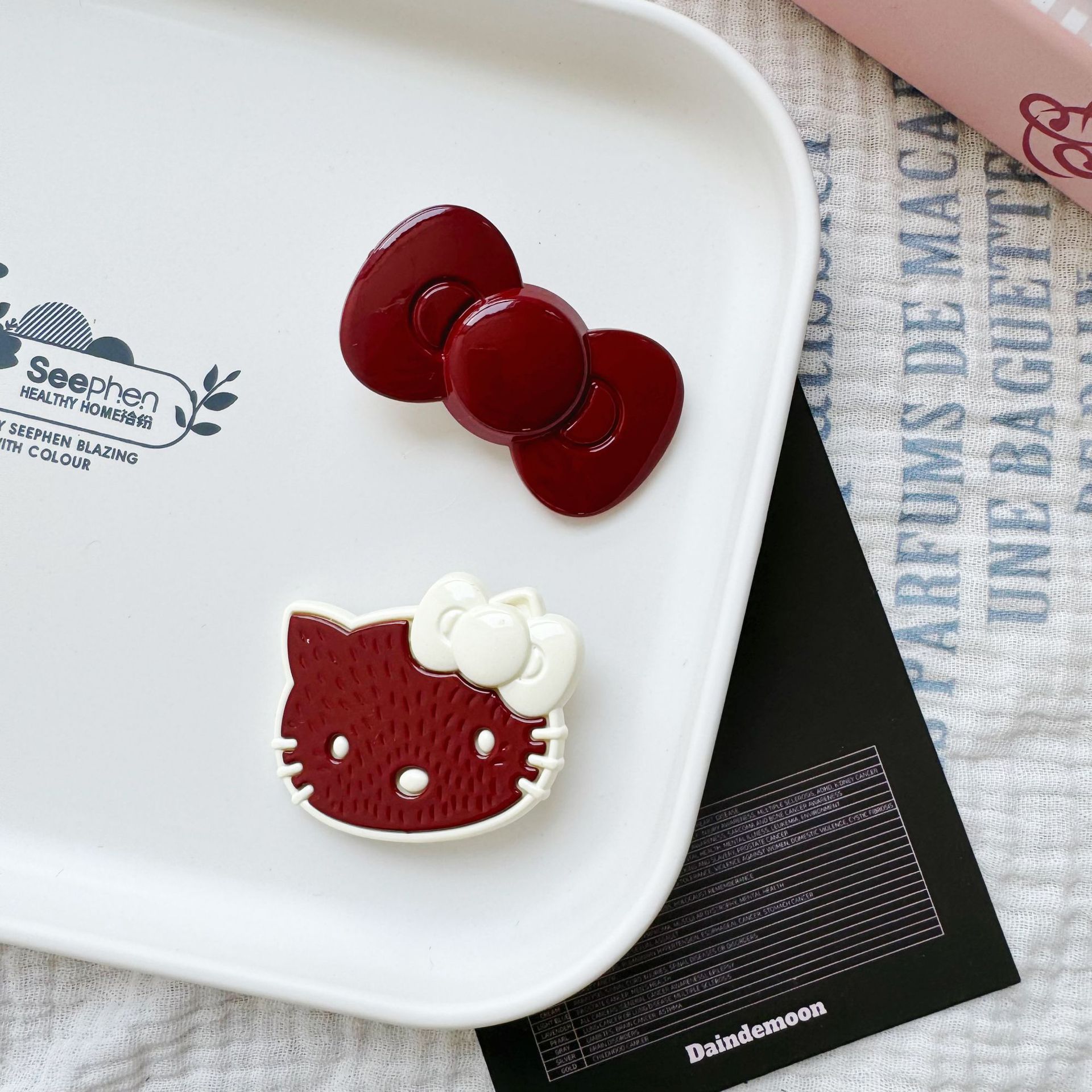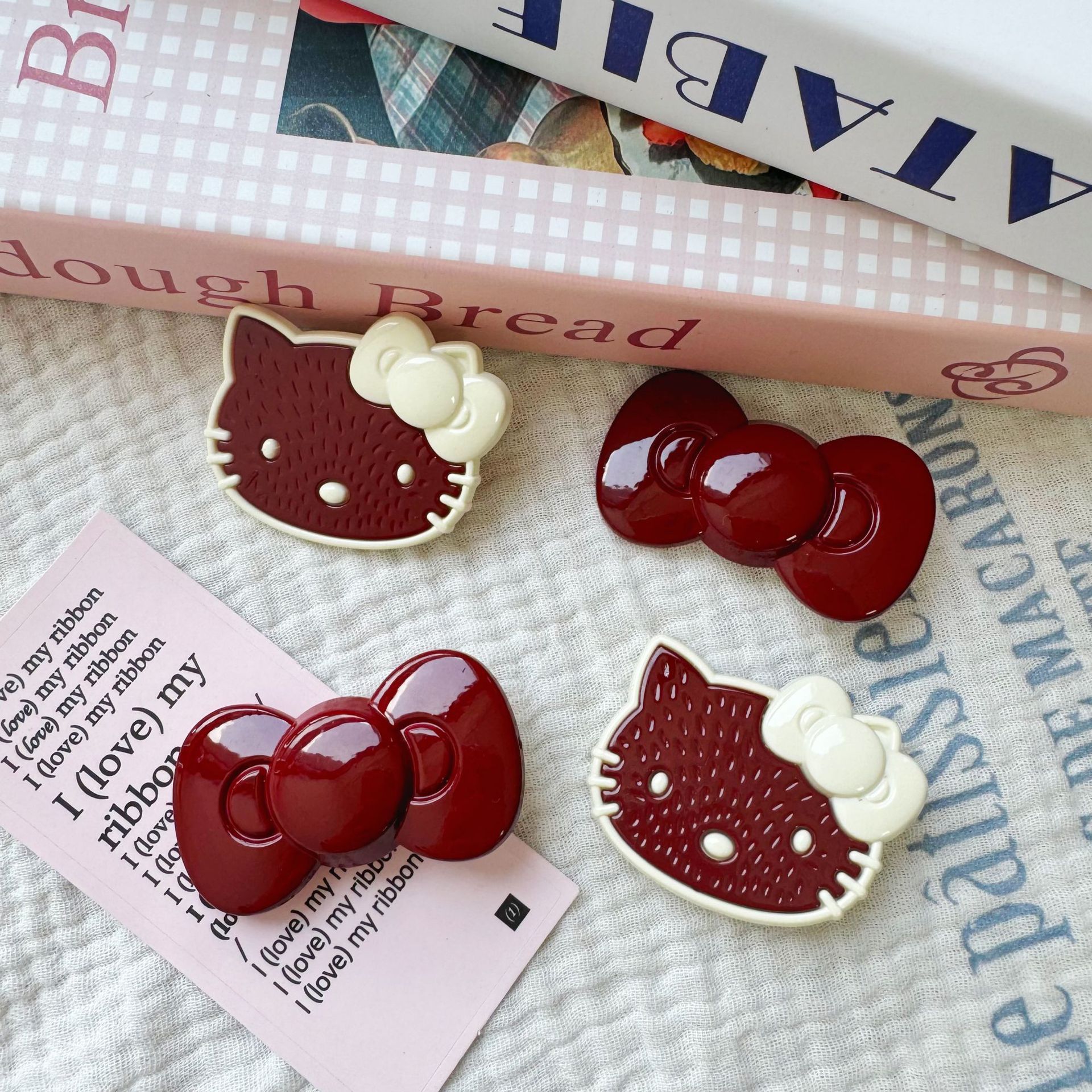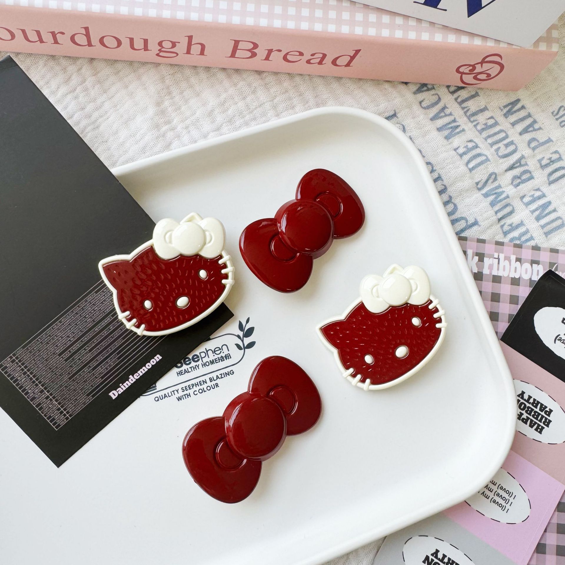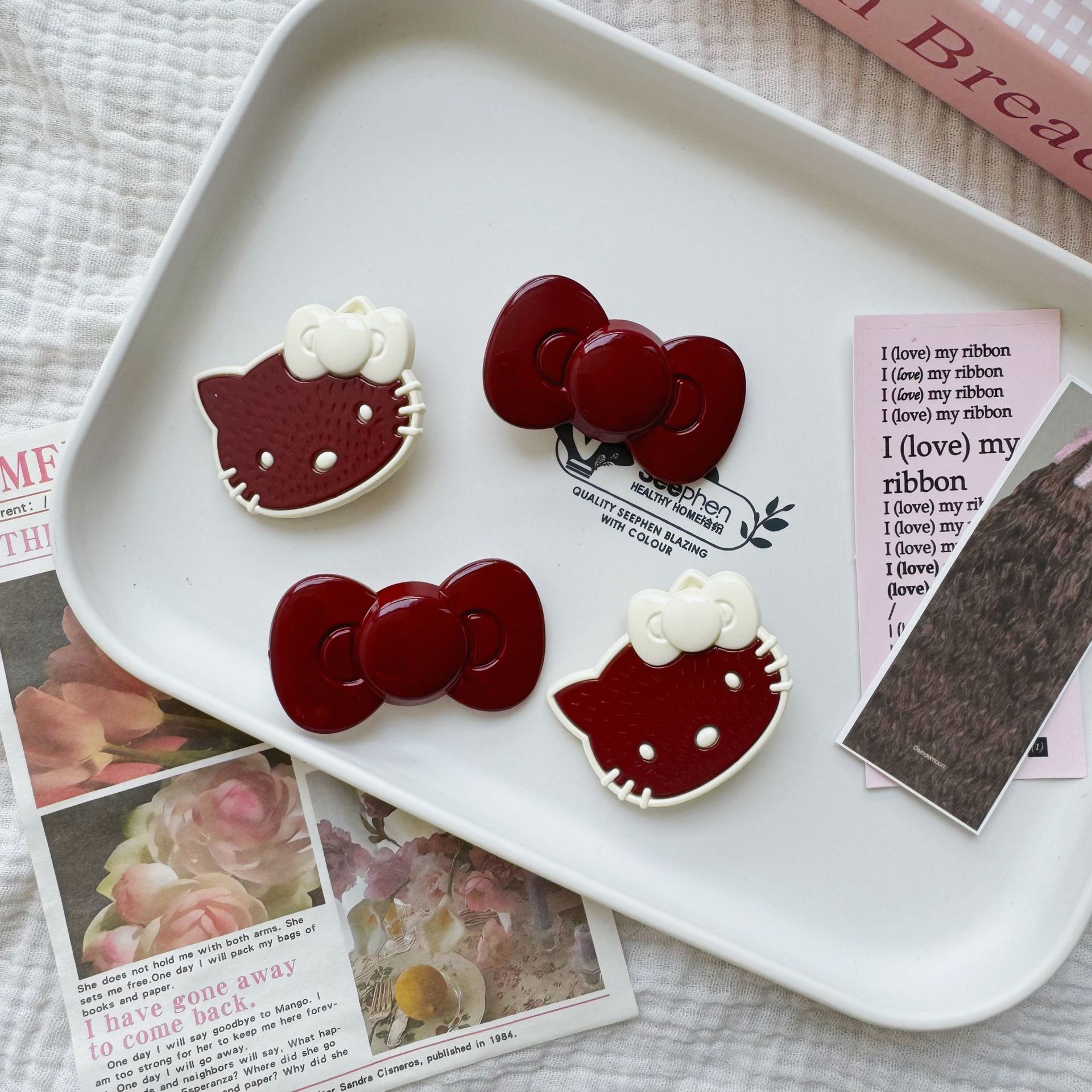 가을 겨울 신상 앙고라 레드 리본 헤어핀 헤어 액세서리 인스 스타일 고급스러운 키티 앞머리핀 사이드핀 헤어 장식스토어 가기