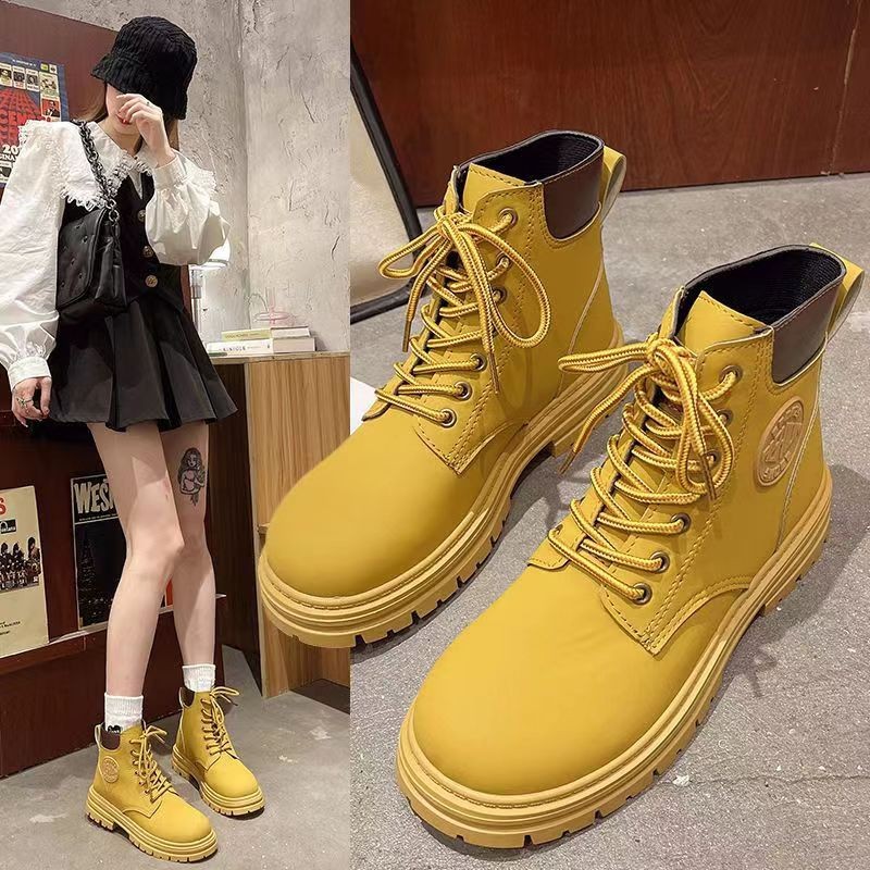2024 가을 및 겨울 영국 스타일 대황 부츠 여성의 새로운 빅 헤드 마틴 부츠 여성 레트로 싱글 부츠 짧은 부츠 오토바이 두꺼운 바닥스토어 가기