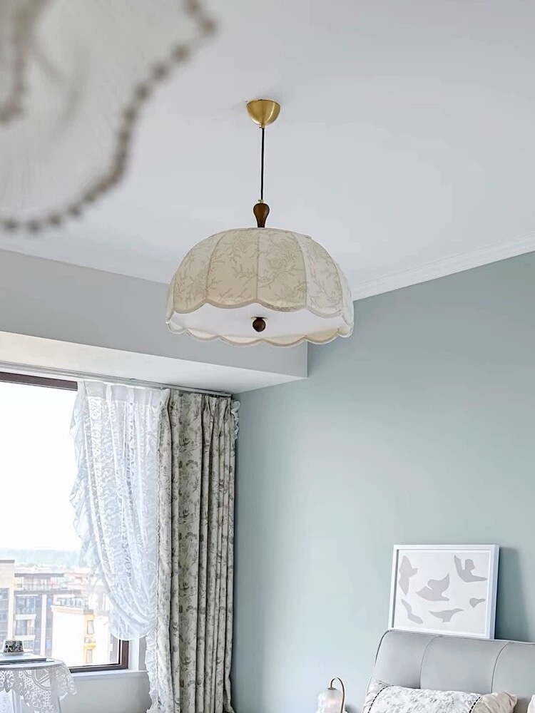 레트로 프렌치 스타일 침실 패브릭 샹들리에 패턴 중간 고대 레스토랑 바 난양 솔리드 우드 로맨틱 룸 메인 램프스토어 가기
