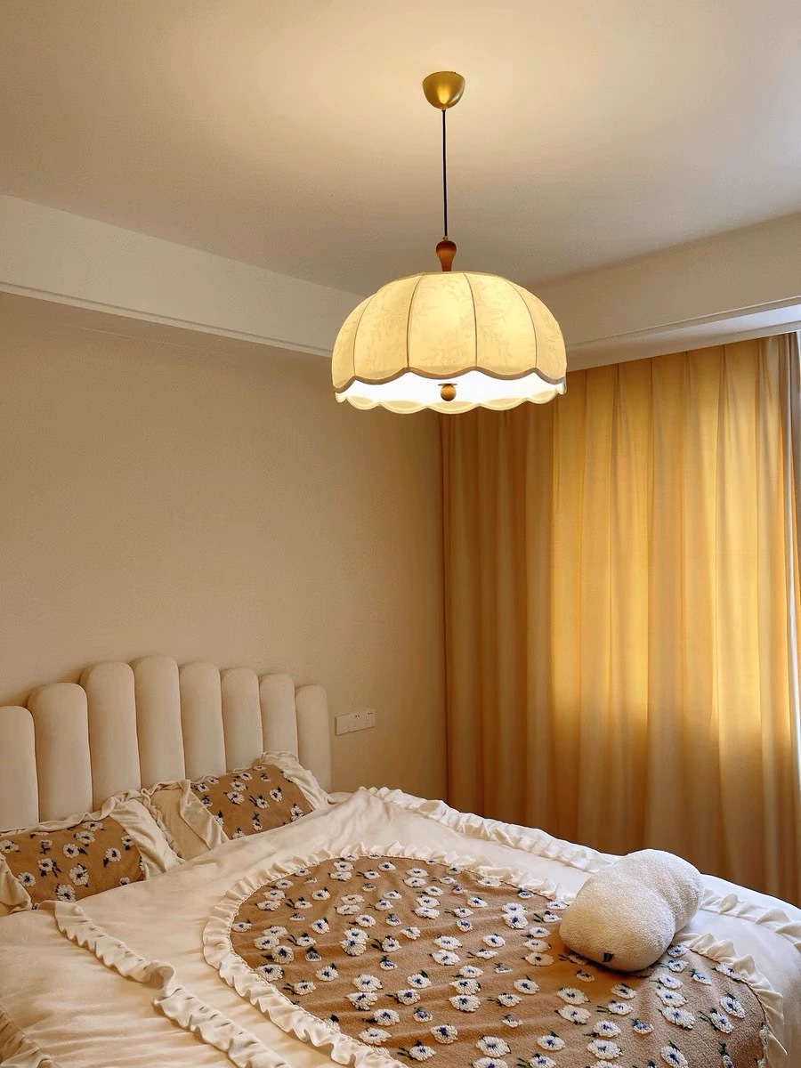 레트로 프렌치 스타일 침실 패브릭 샹들리에 패턴 중간 고대 레스토랑 바 난양 솔리드 우드 로맨틱 룸 메인 램프