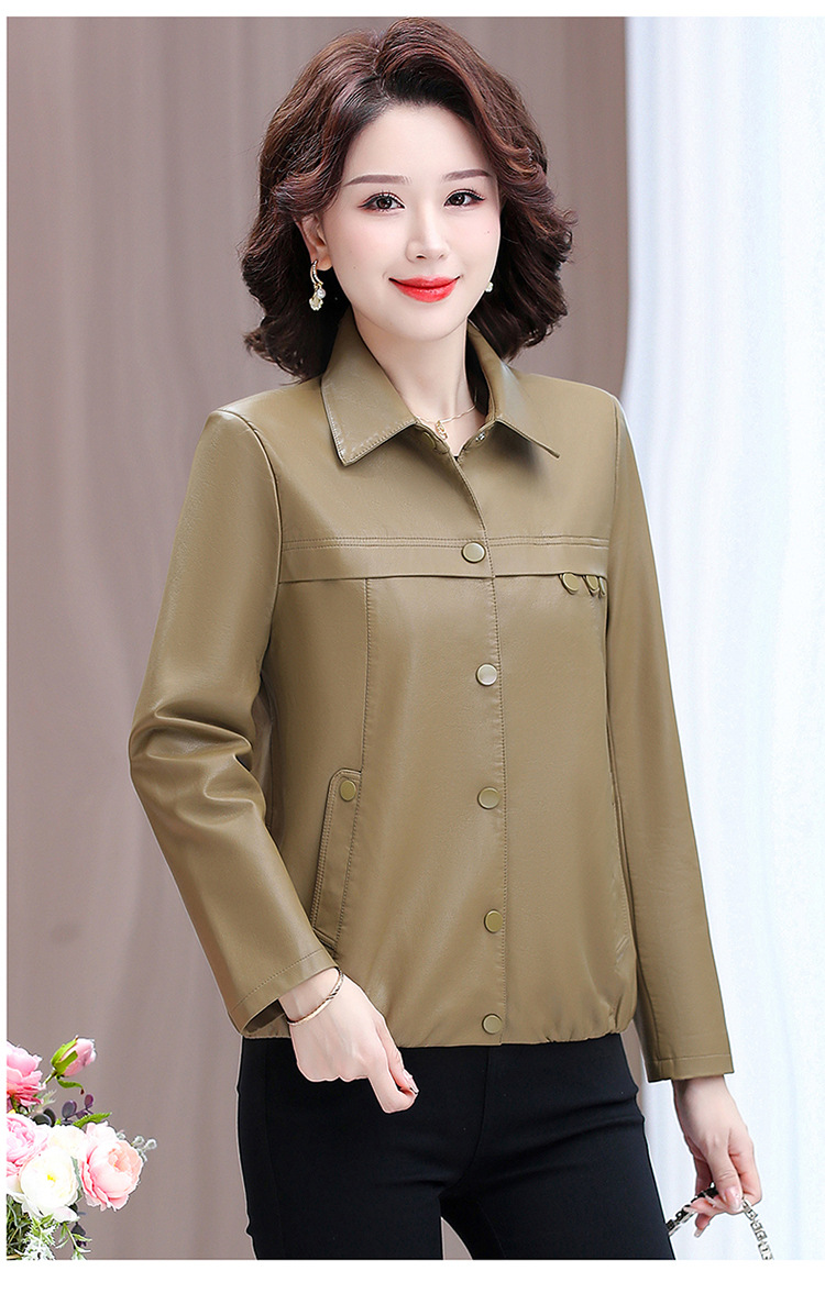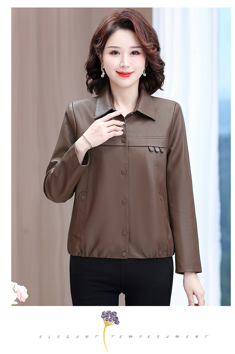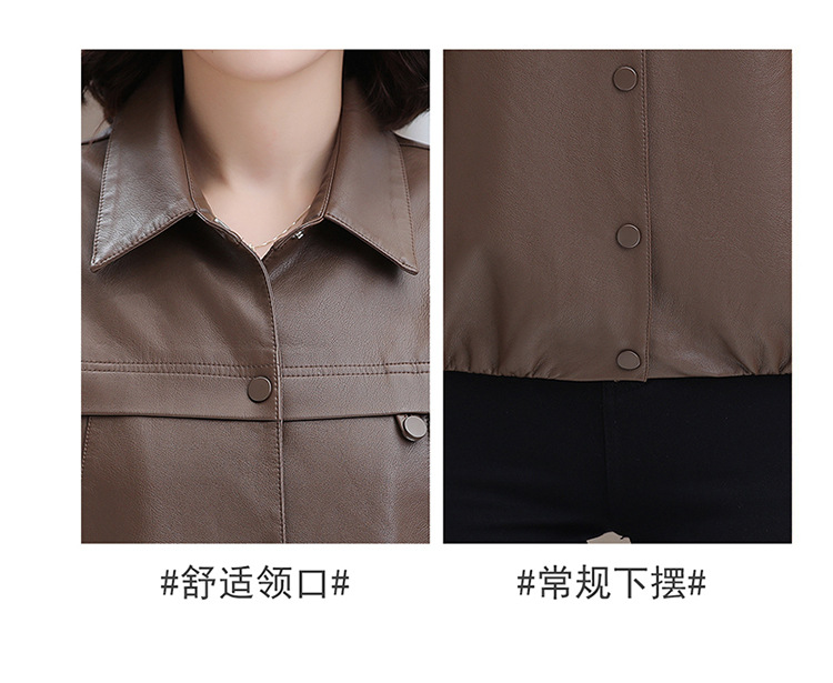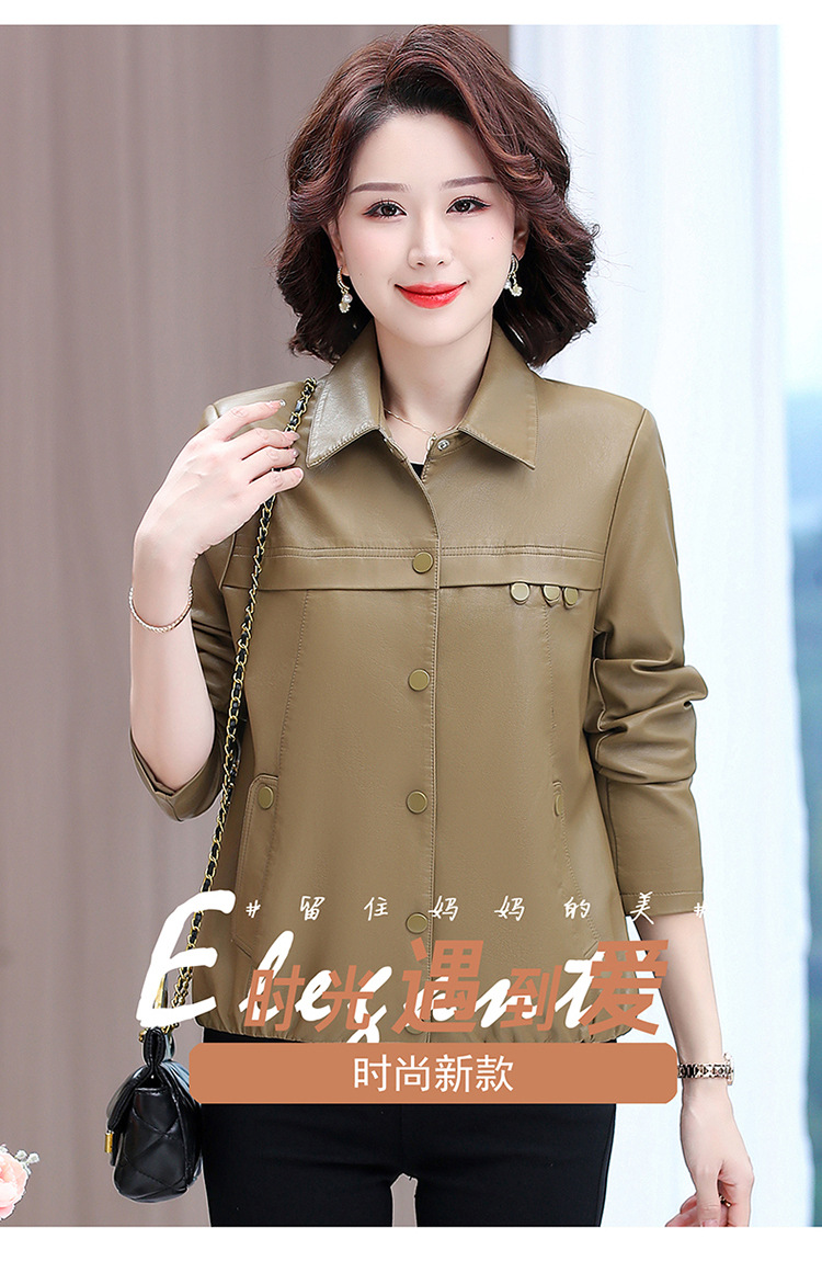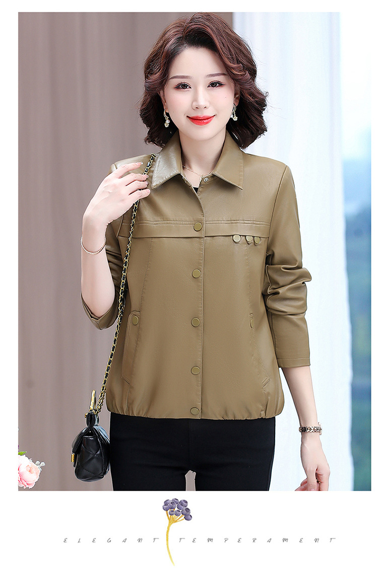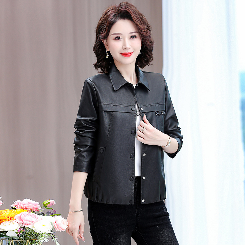 중년 어머니의 가을 의류 캐주얼 PU 가죽 의류 패션 서양식 가죽 자켓 중년 여성 가죽 의류 봄과 가을 짧은 자켓