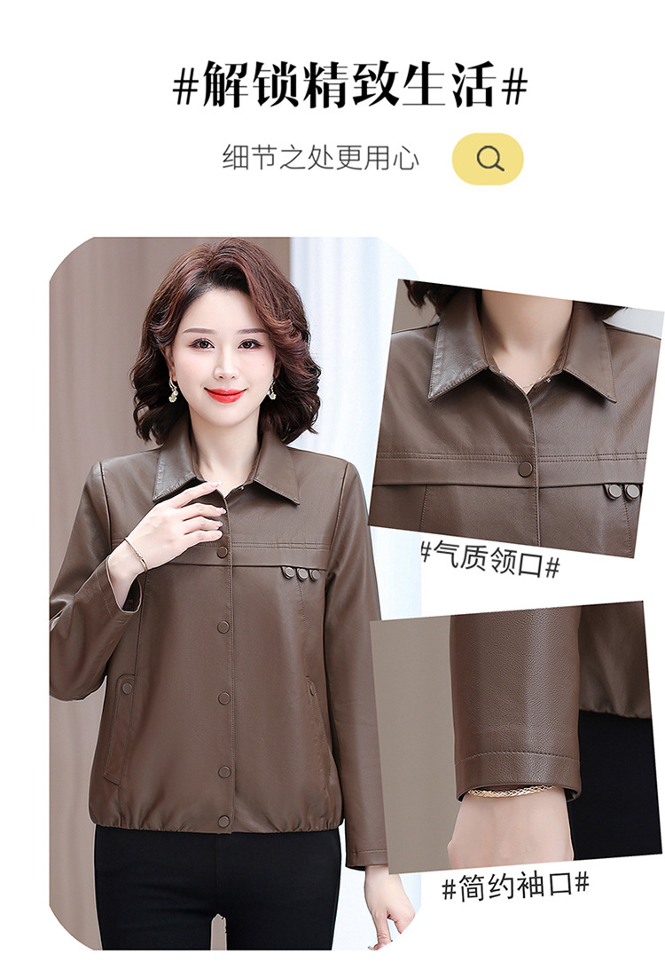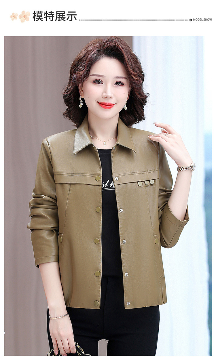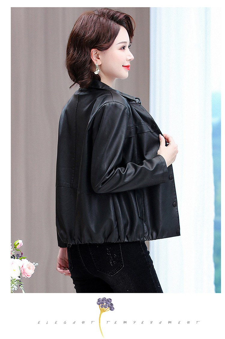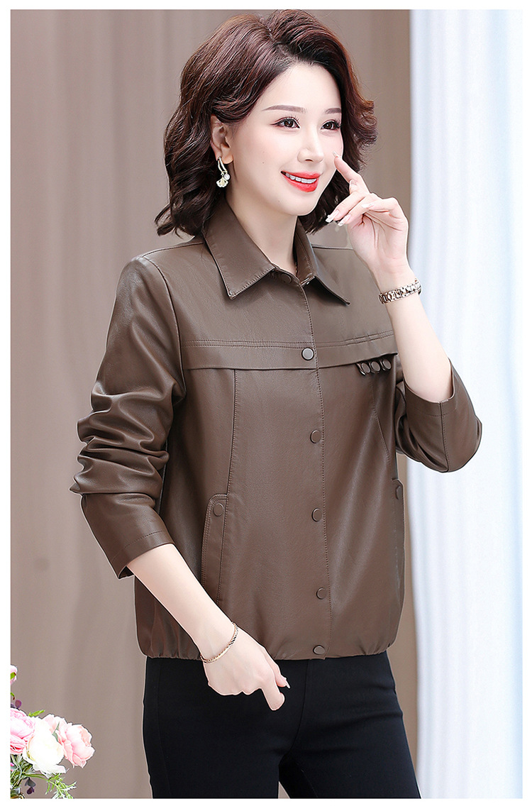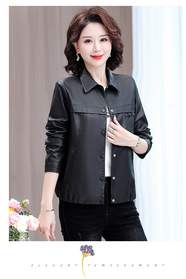 중년 어머니의 가을 의류 캐주얼 PU 가죽 의류 패션 서양식 가죽 자켓 중년 여성 가죽 의류 봄과 가을 짧은 자켓