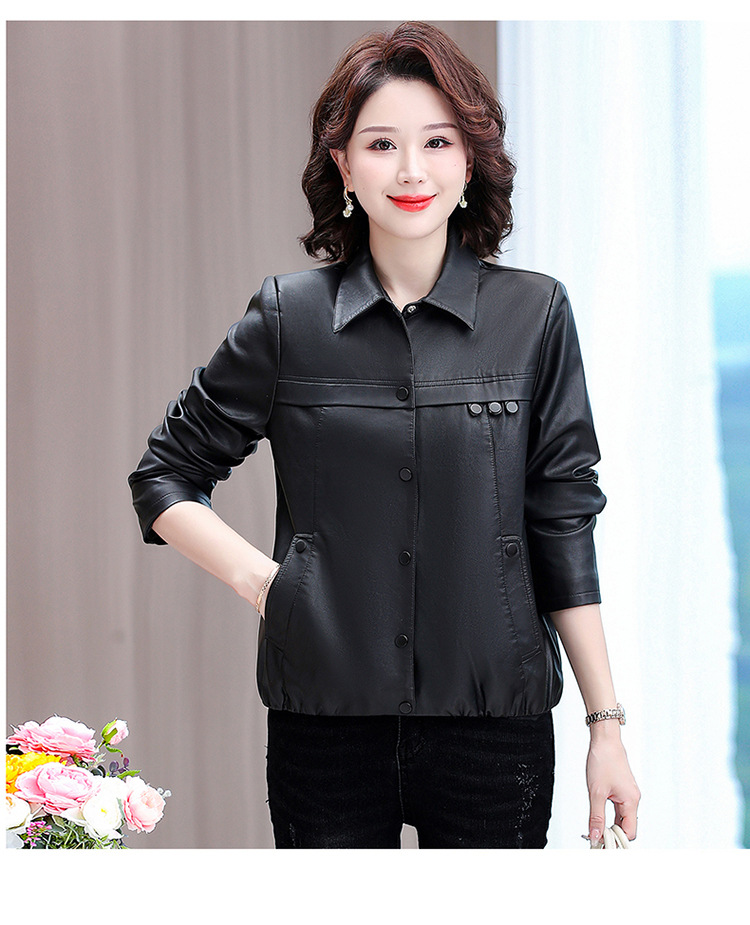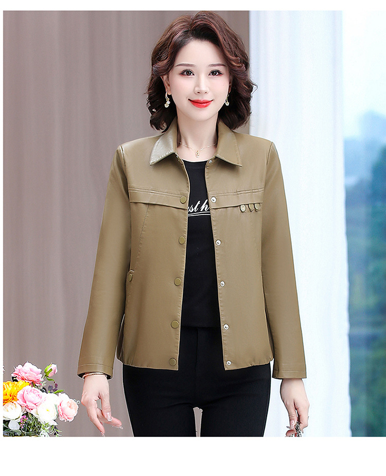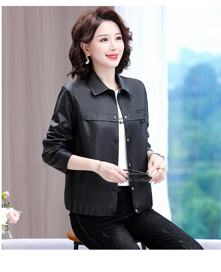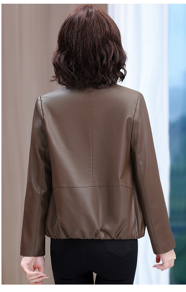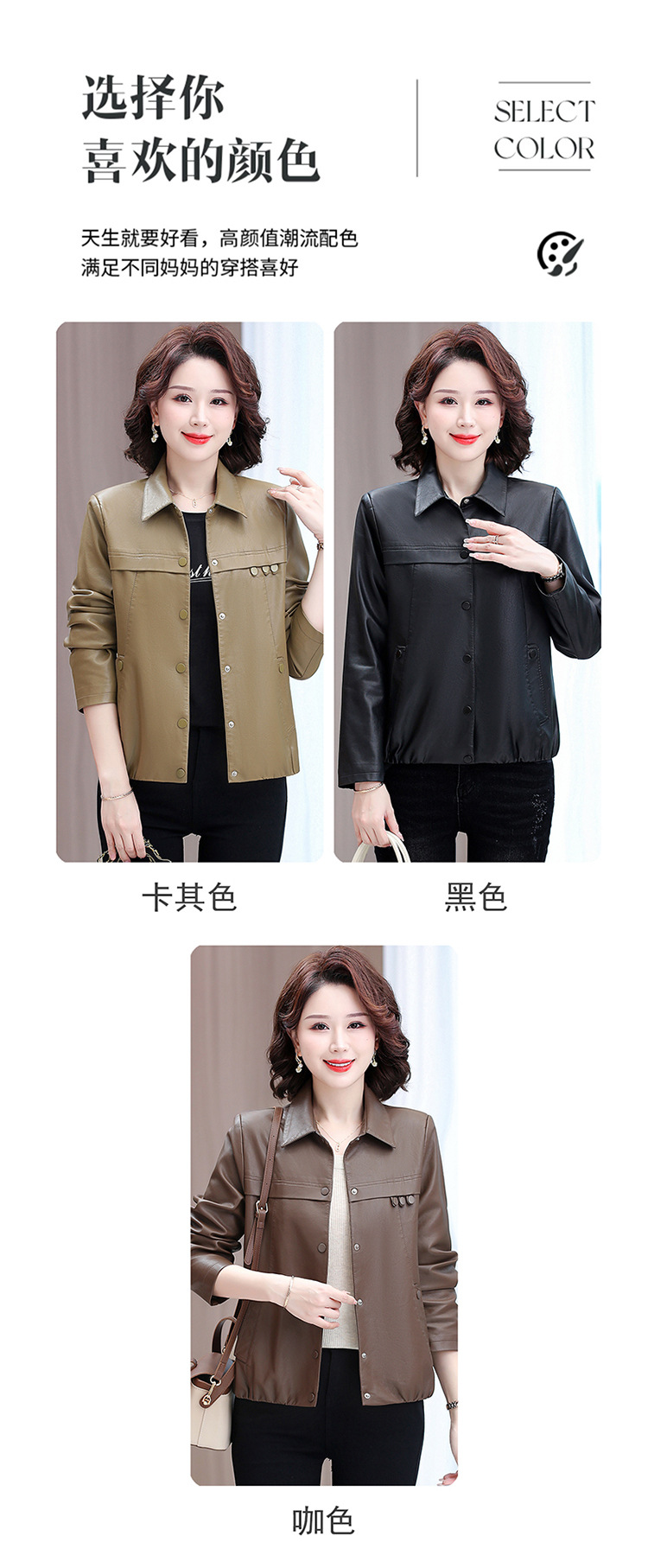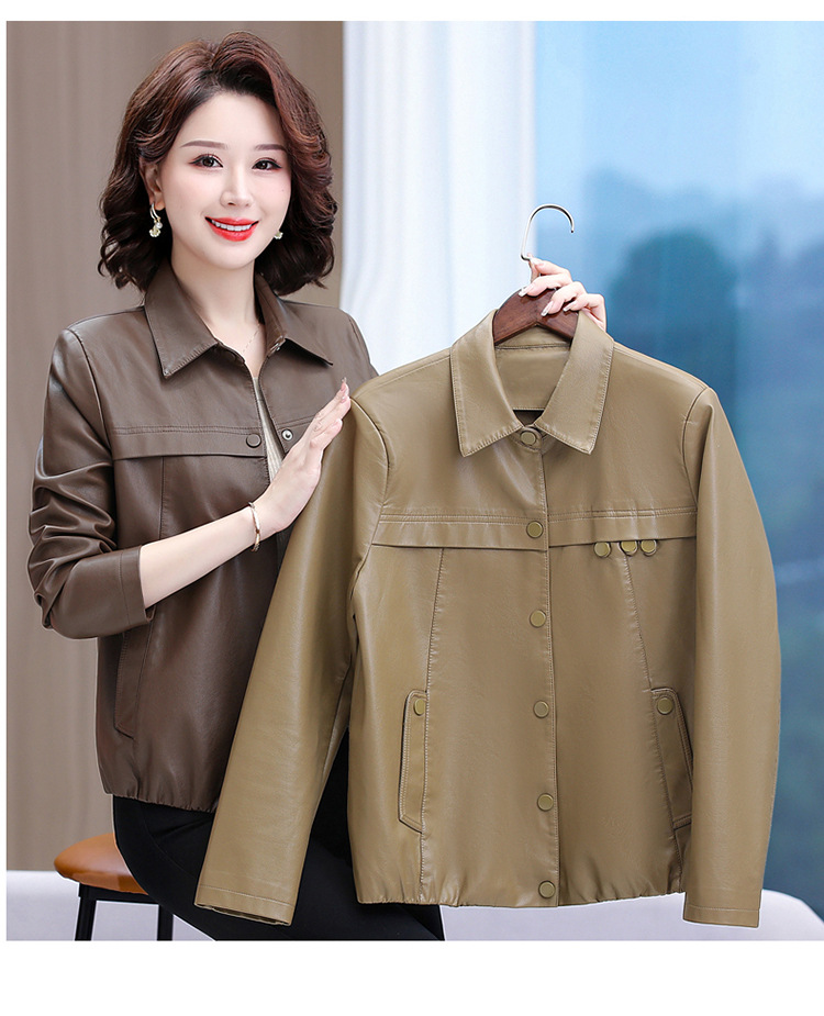 중년 어머니의 가을 의류 캐주얼 PU 가죽 의류 패션 서양식 가죽 자켓 중년 여성 가죽 의류 봄과 가을 짧은 자켓