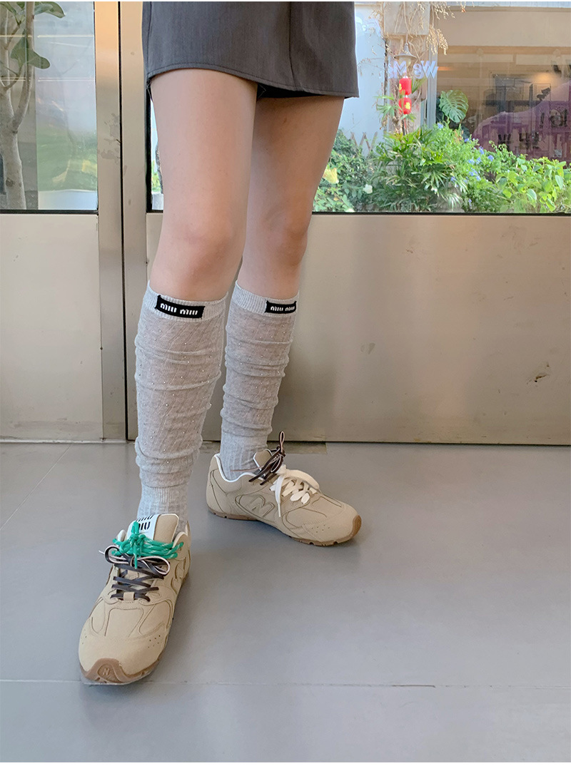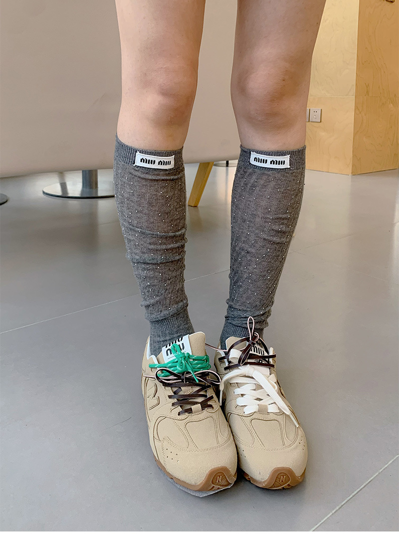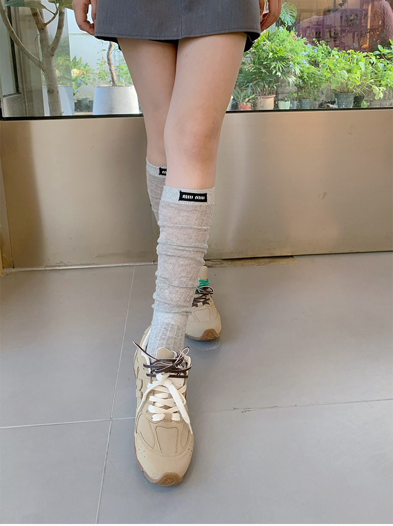 가을 새로운 미우 스타일 유행 편지 힙 와이드 스트립 통기성 코튼 원사 내 송아지 중간 길이 양말 봄과 가을 얇은스토어 가기