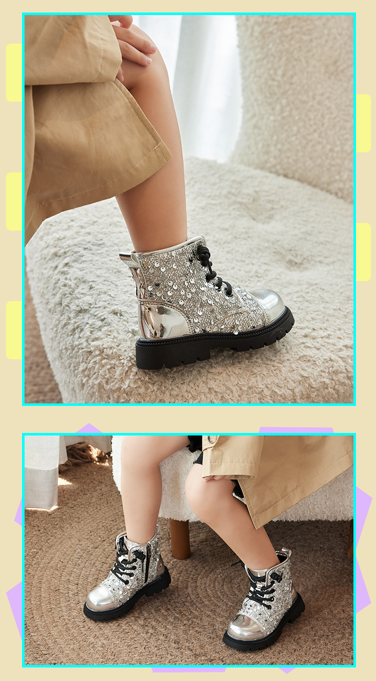 친환경 소재 아동용 반짝이 가을 겨울 유아 신발 여아 마틴 부츠 남아용 플러스 벨벳 부츠 부드러운 밑창 숏부츠스토어 가기