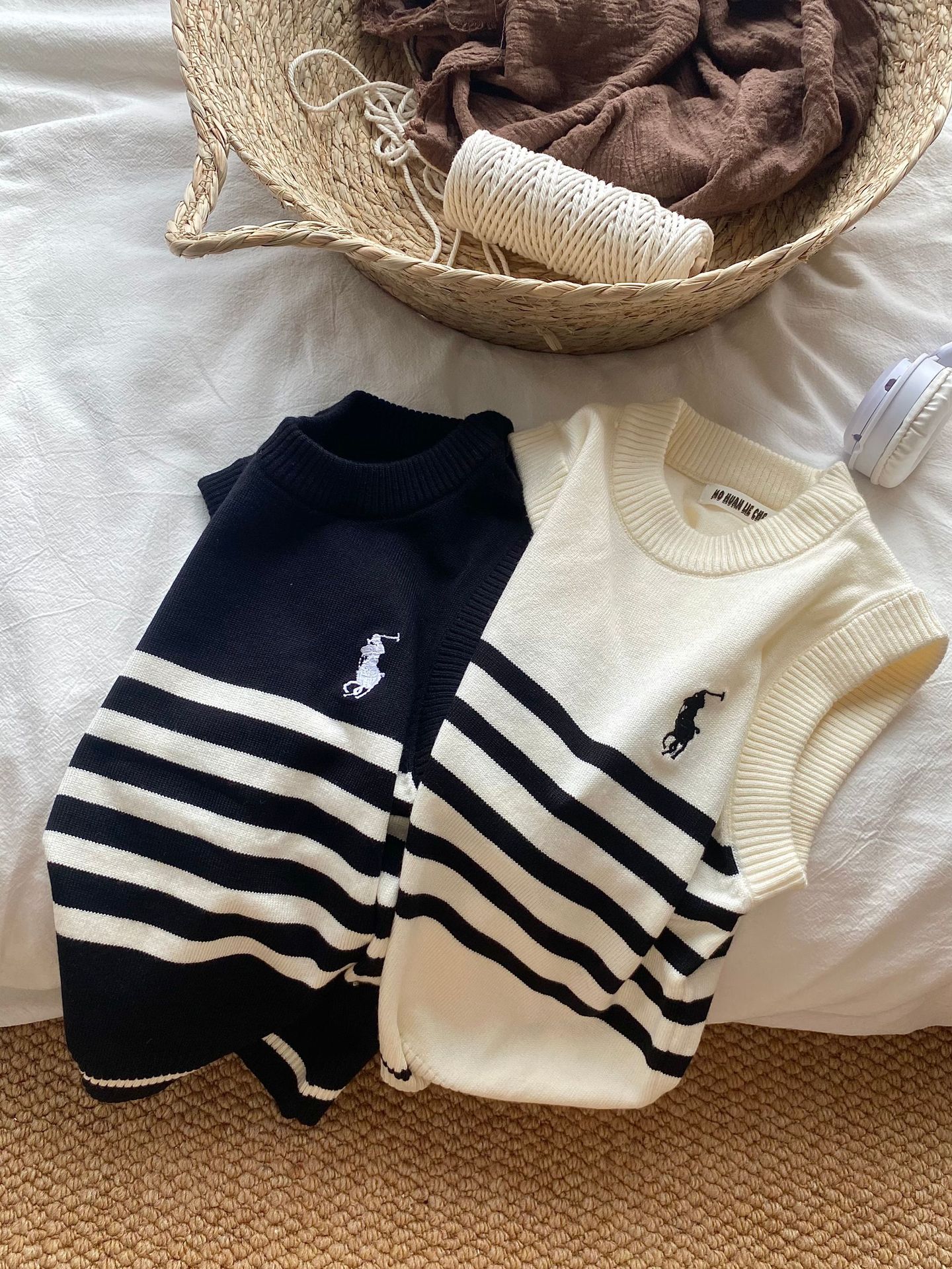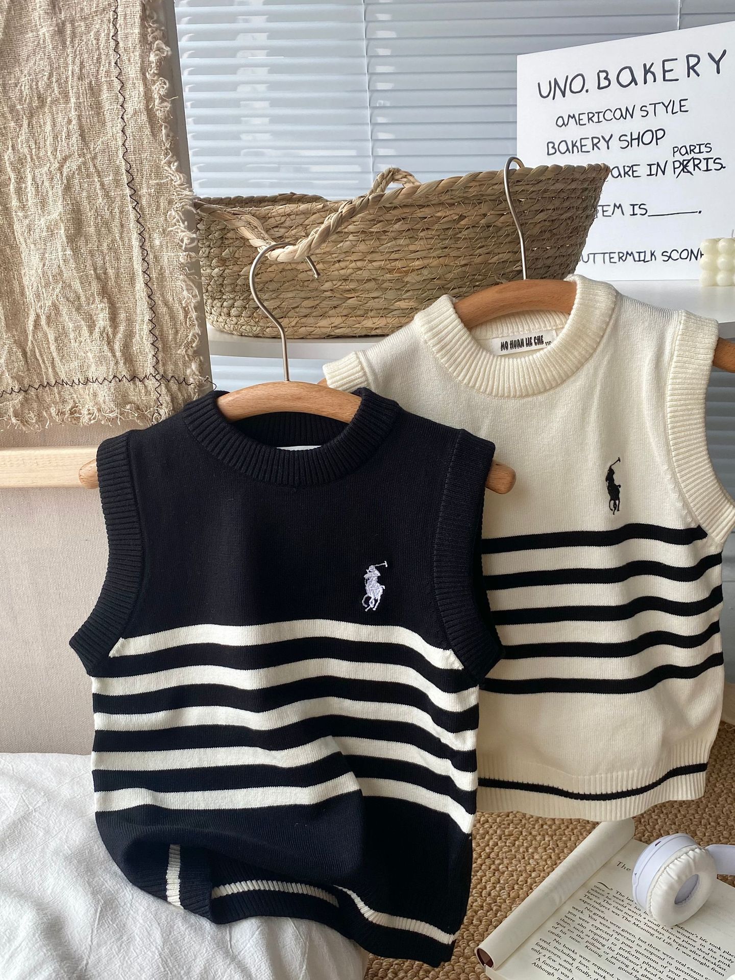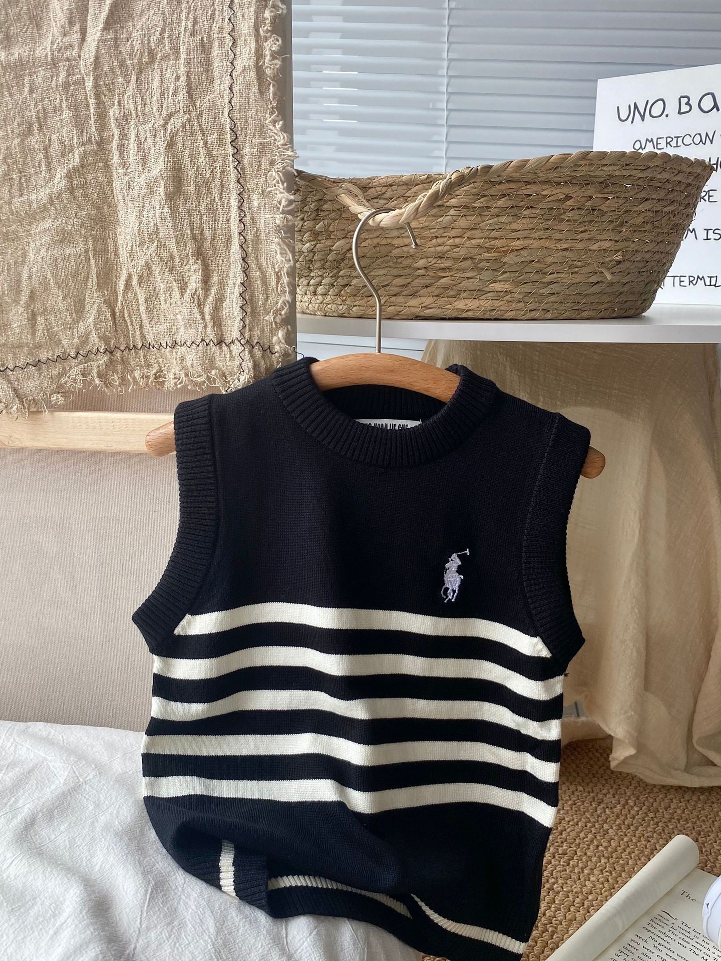 가을 겨울 스웨터 조끼 소년 소녀를위한 새로운 니트 조끼 한국 아기 따뜻한 스웨터 24033 줄무늬