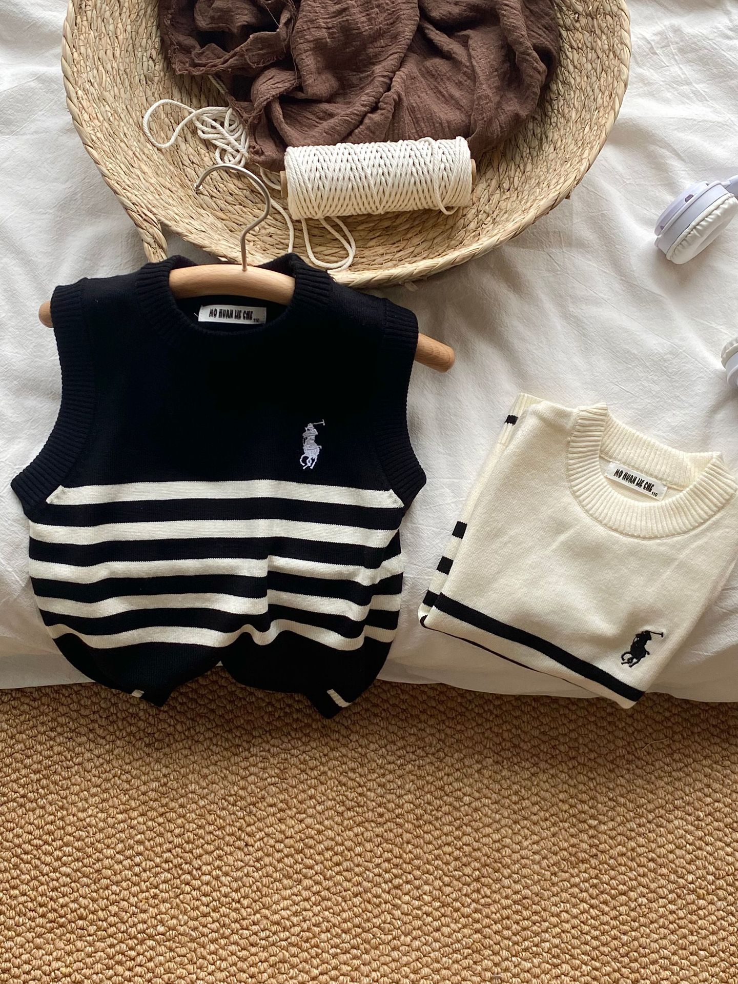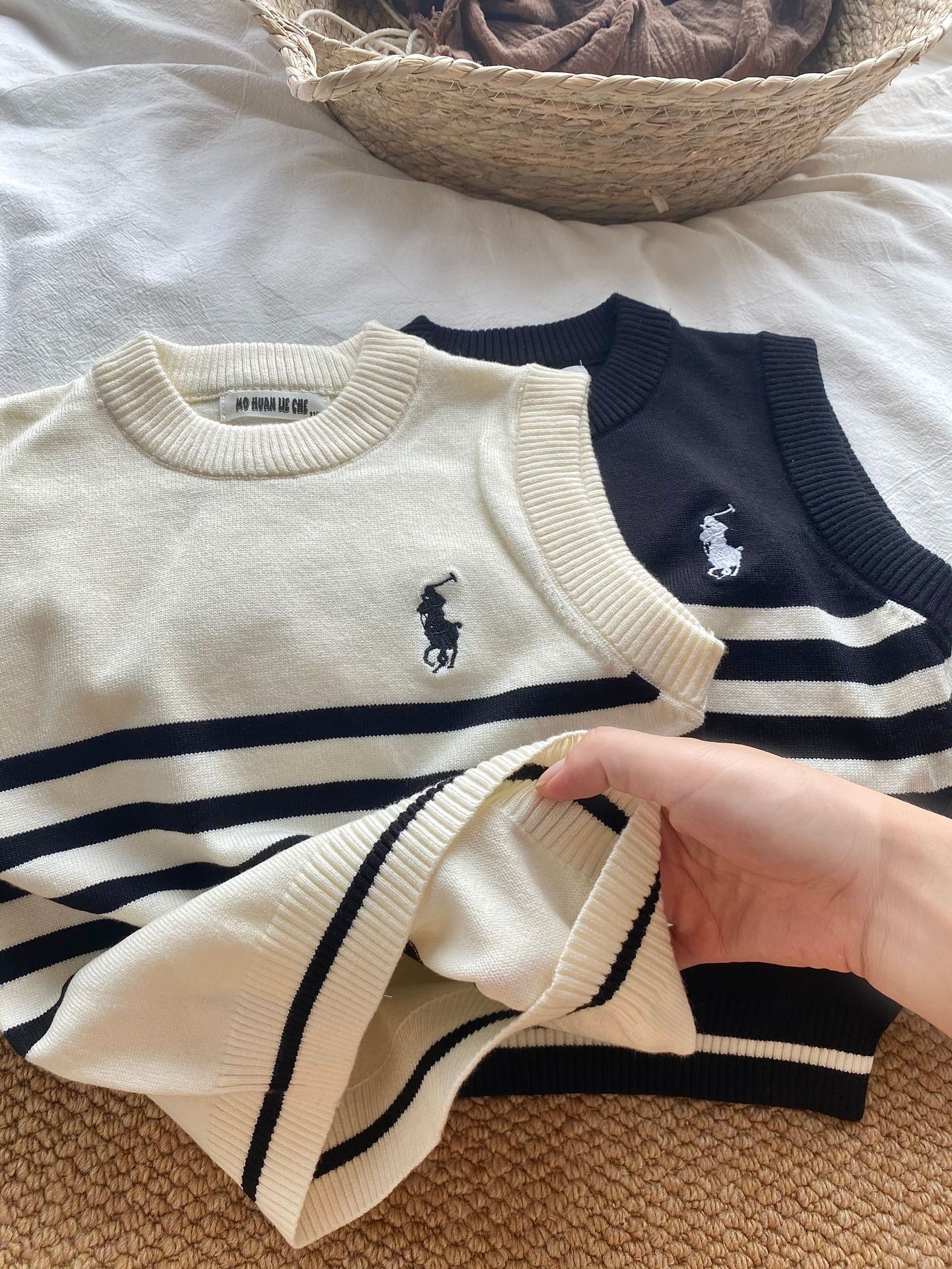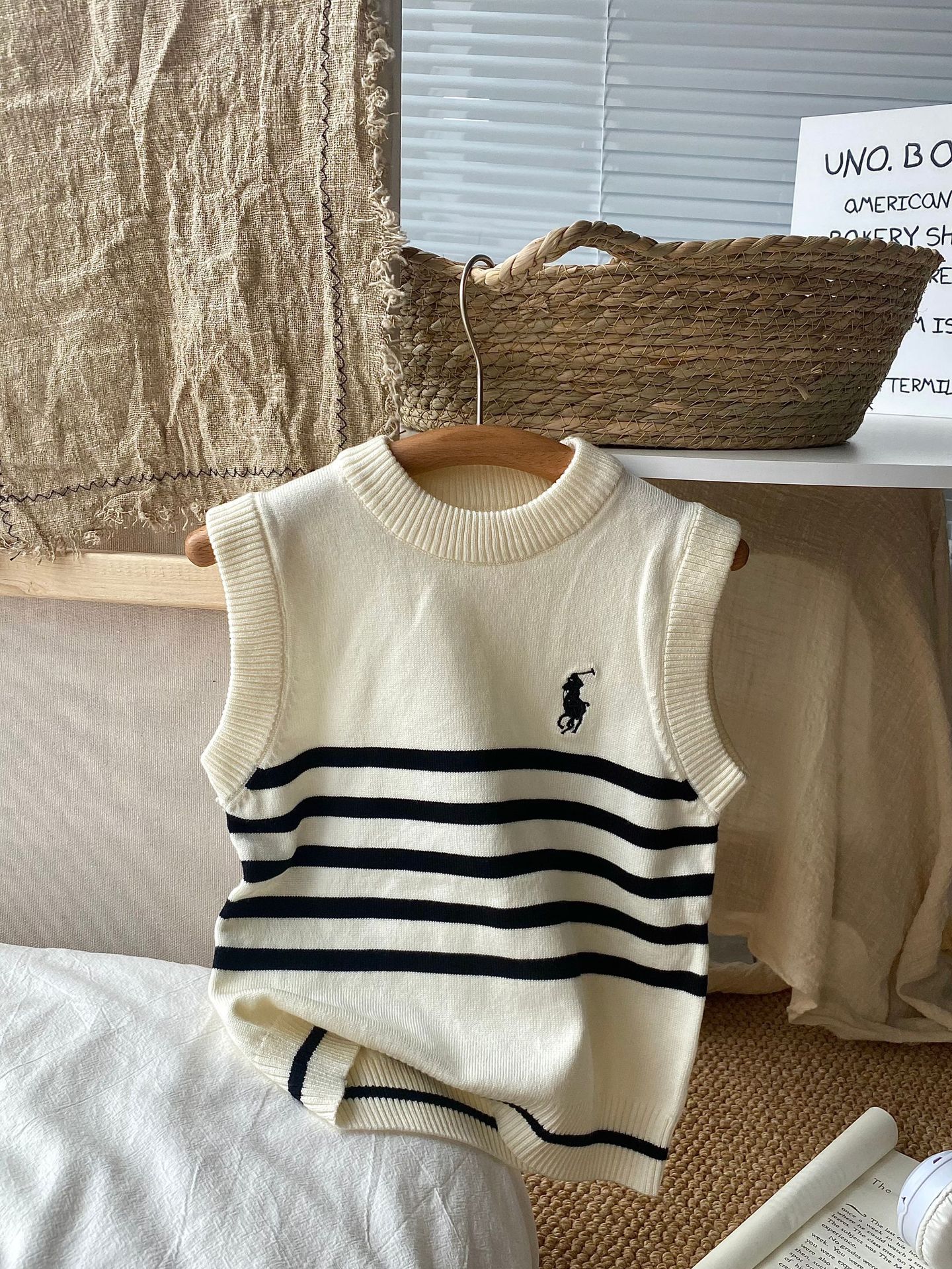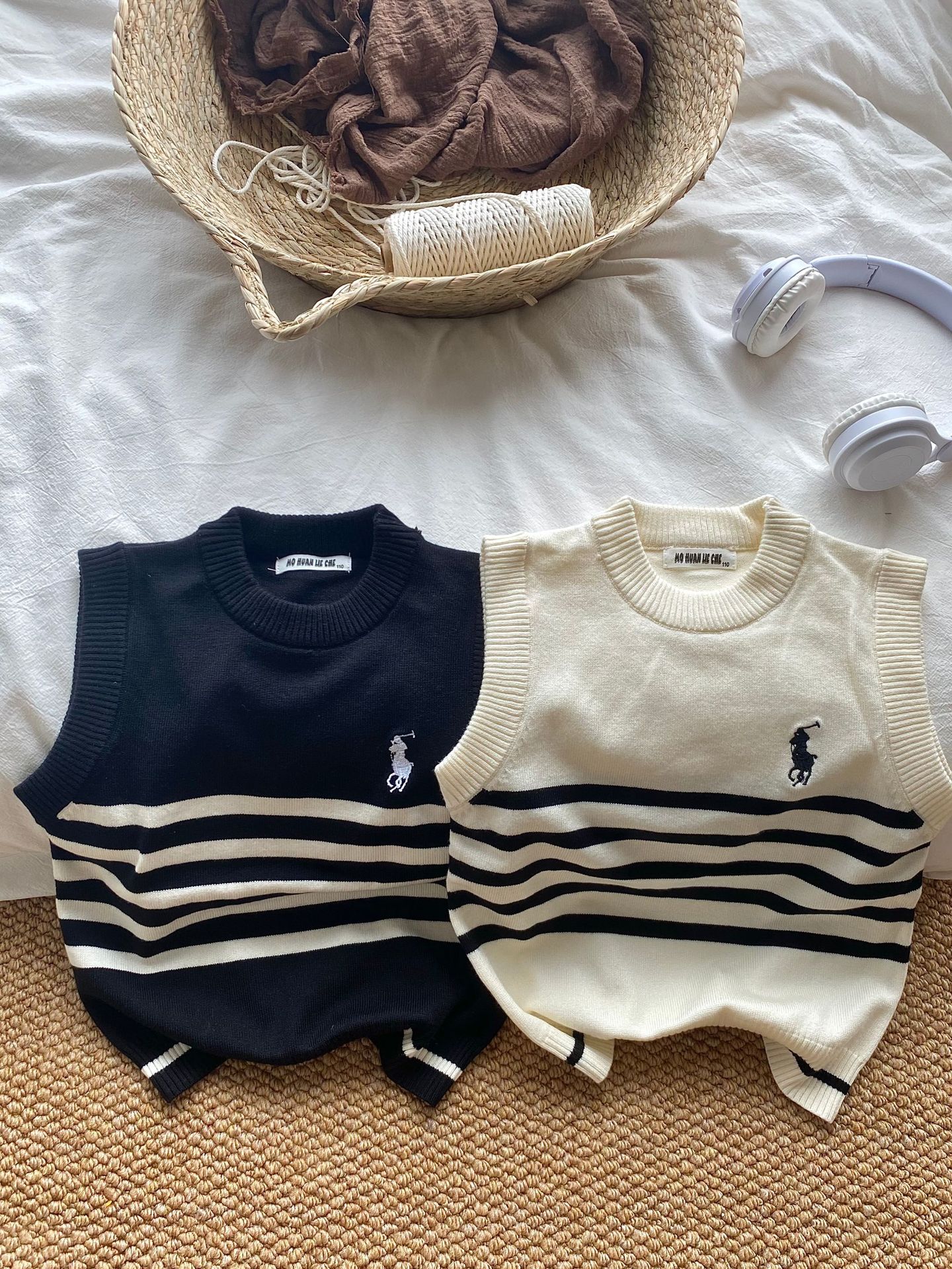 가을 겨울 스웨터 조끼 소년 소녀를위한 새로운 니트 조끼 한국 아기 따뜻한 스웨터 24033 줄무늬