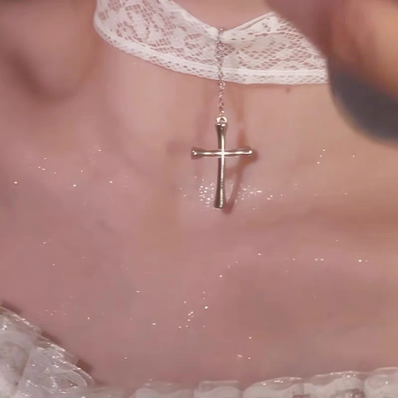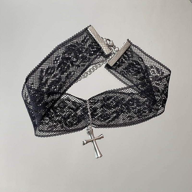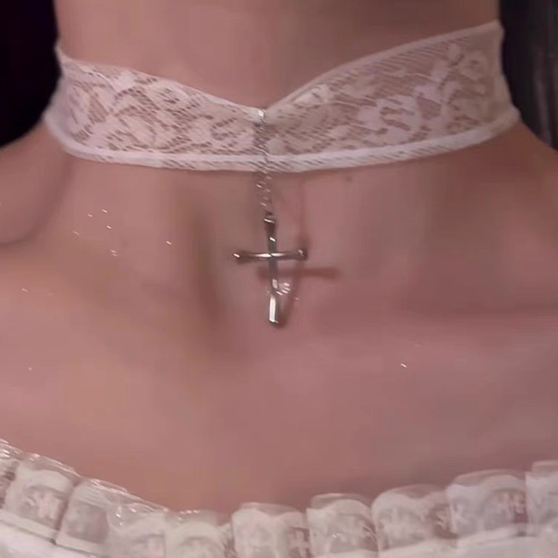 달콤한 쿨 퓨어 스파이스 소녀 크로스 목걸이 틈새 펜던트 칼라 간단한 올 매치 할로윈 초커