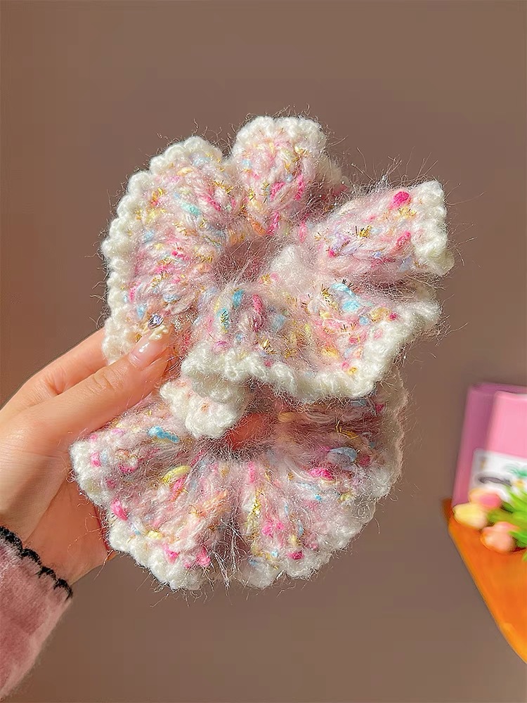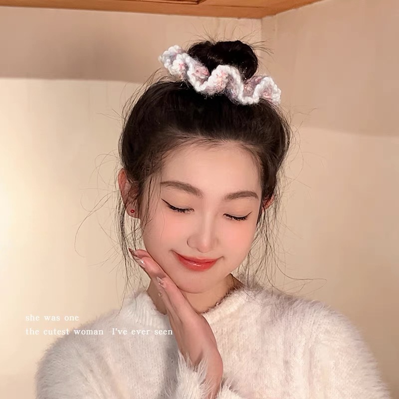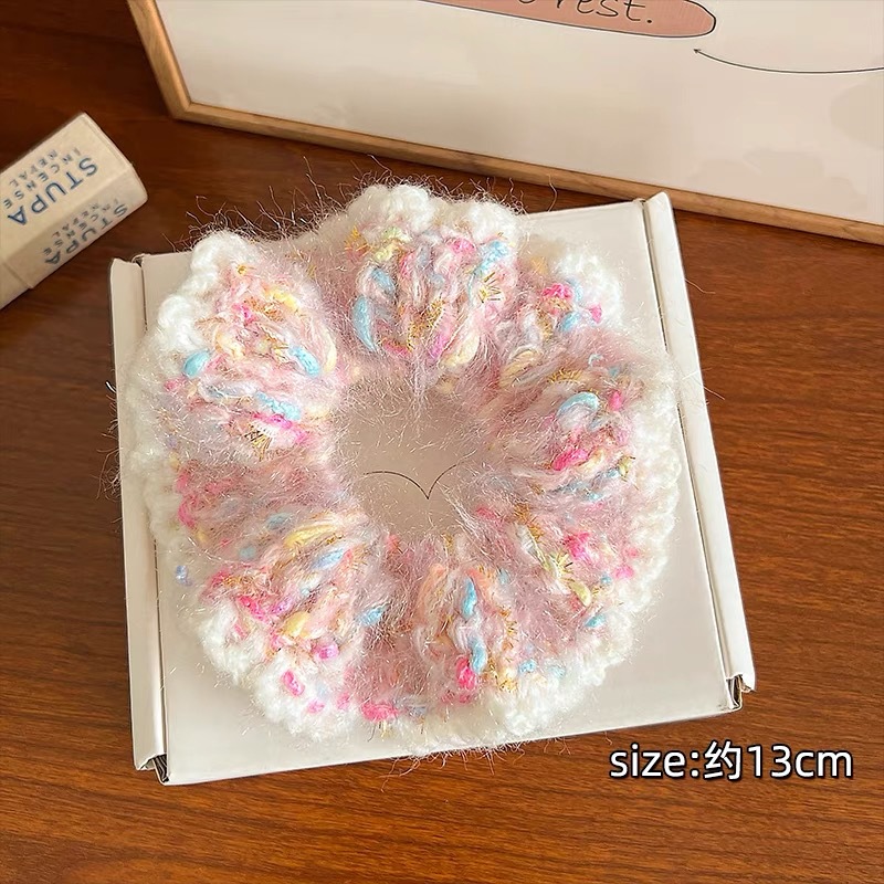 핑크 양모 니트 달콤한 대형 장내 헤어 링 소녀의 하트 넥타이 헤어 로프 볼 헤드 포니 테일 헤드 로프 고무 벤던 가을과 겨울