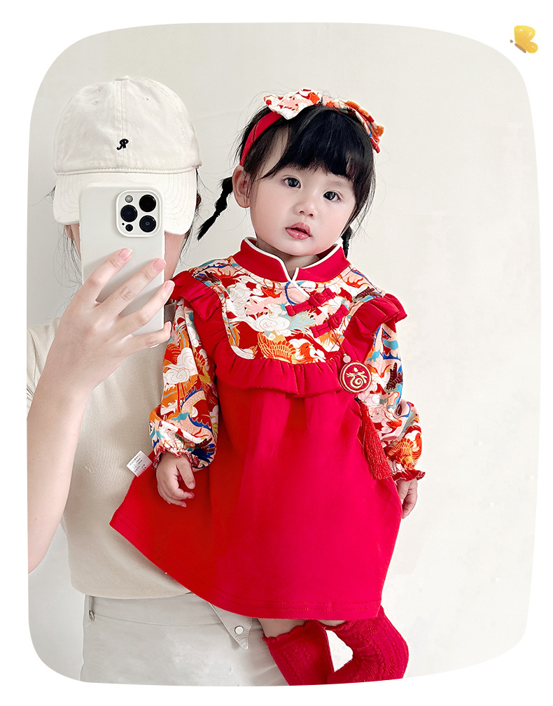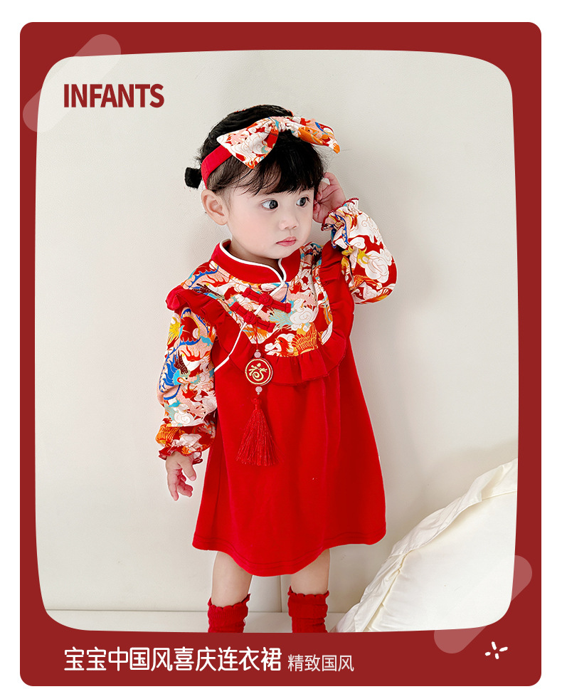 2025 가을 아기 소녀 축제 드레스 3872 중국 스타일 아기 한 살 전월 드레스 봄과 가을 당나라 정장 스커트스토어 가기
