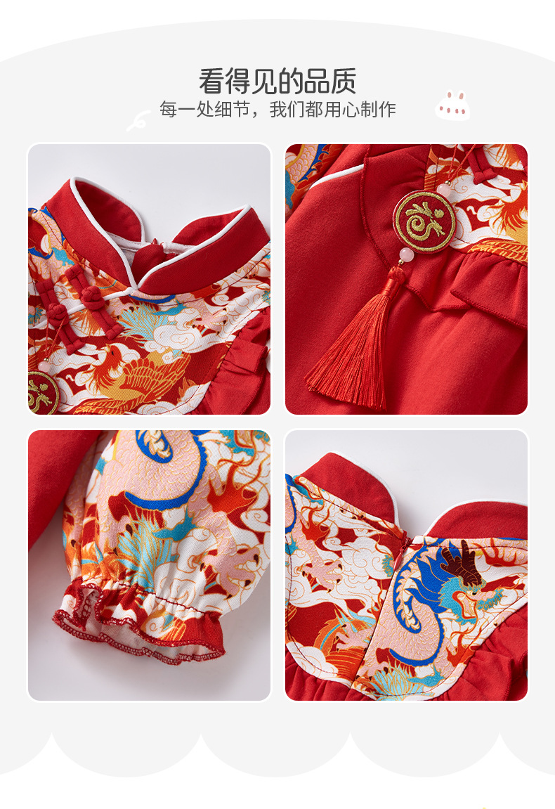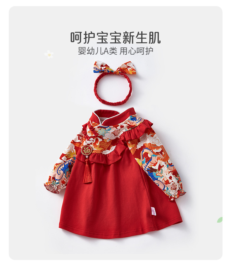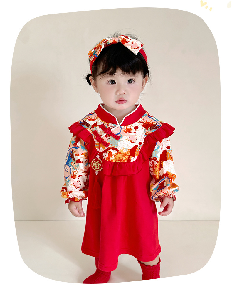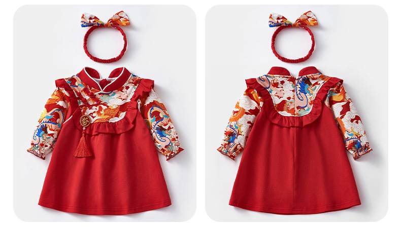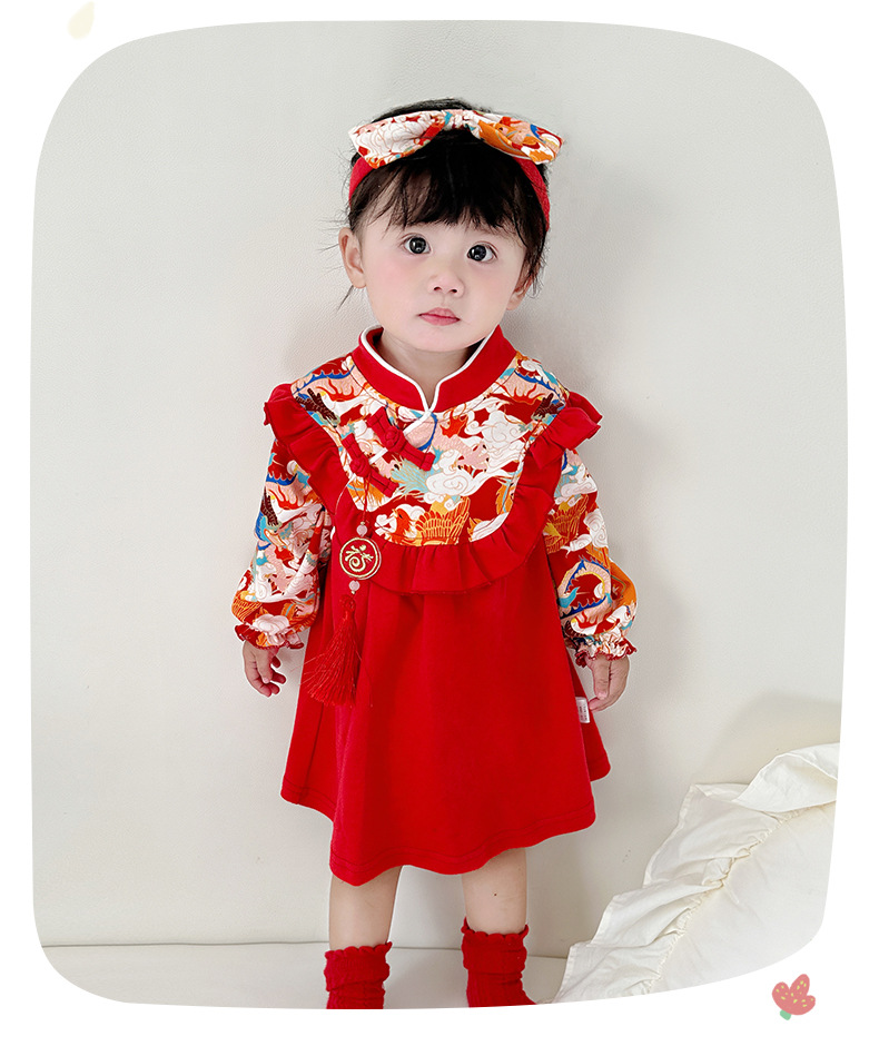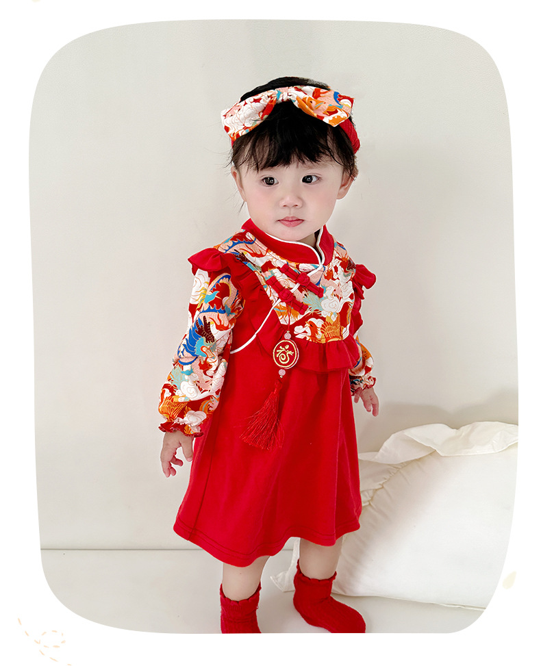 2025 가을 아기 소녀 축제 드레스 3872 중국 스타일 아기 한 살 전월 드레스 봄과 가을 당나라 정장 스커트