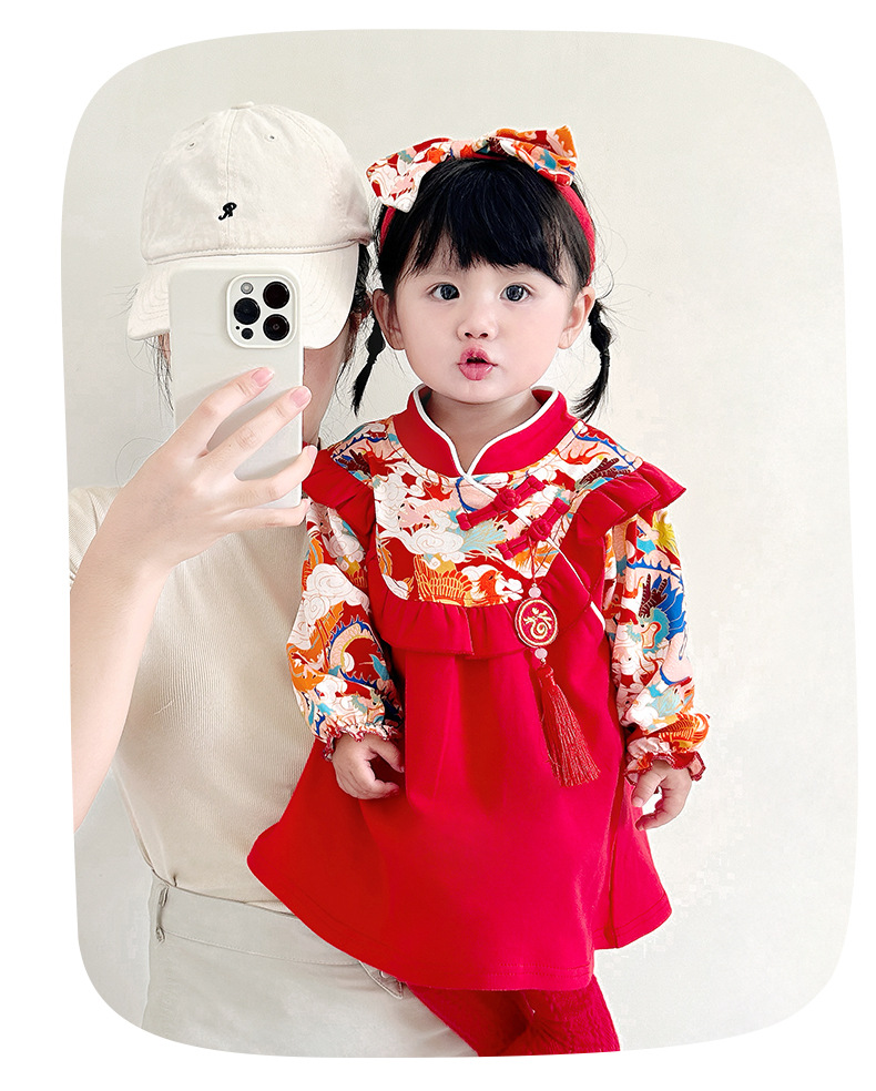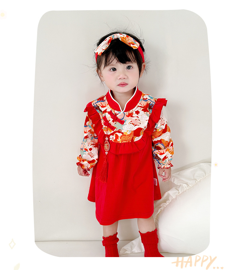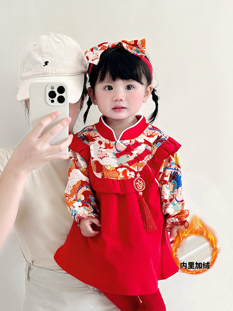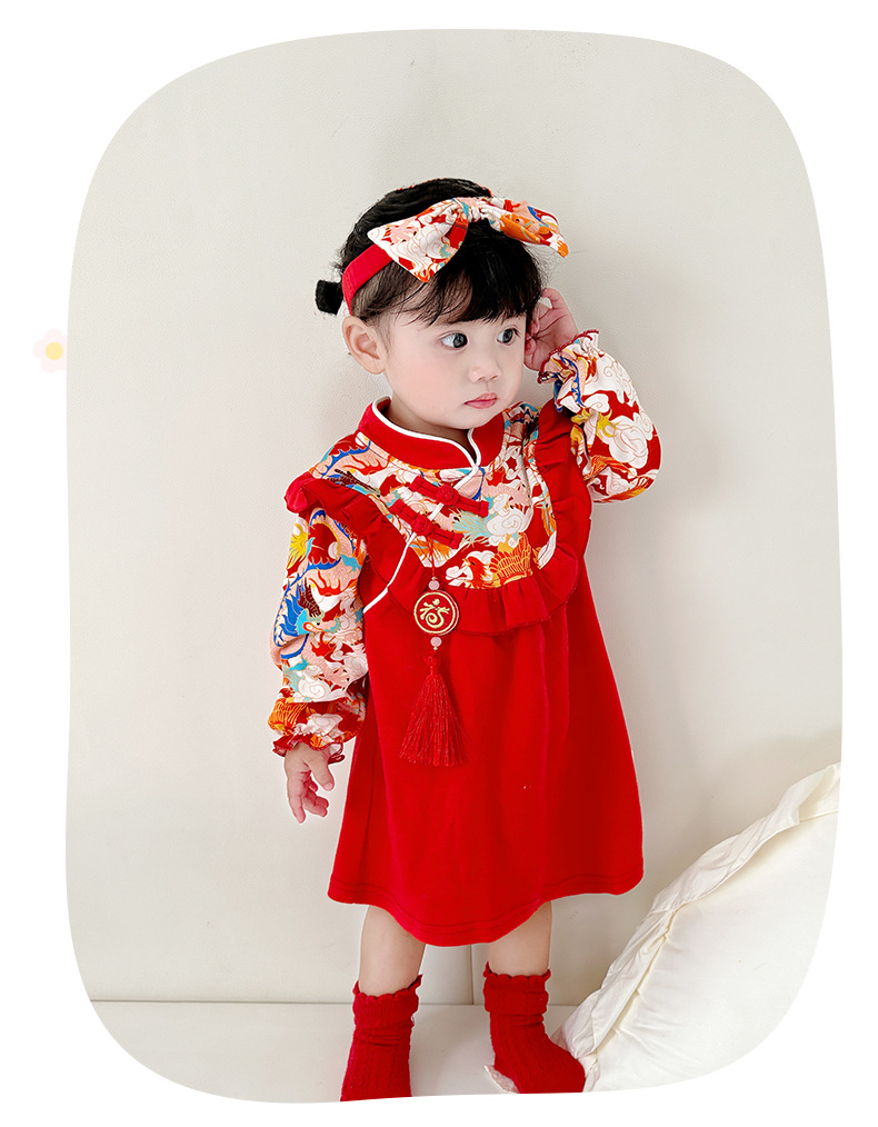 2025 가을 아기 소녀 축제 드레스 3872 중국 스타일 아기 한 살 전월 드레스 봄과 가을 당나라 정장 스커트