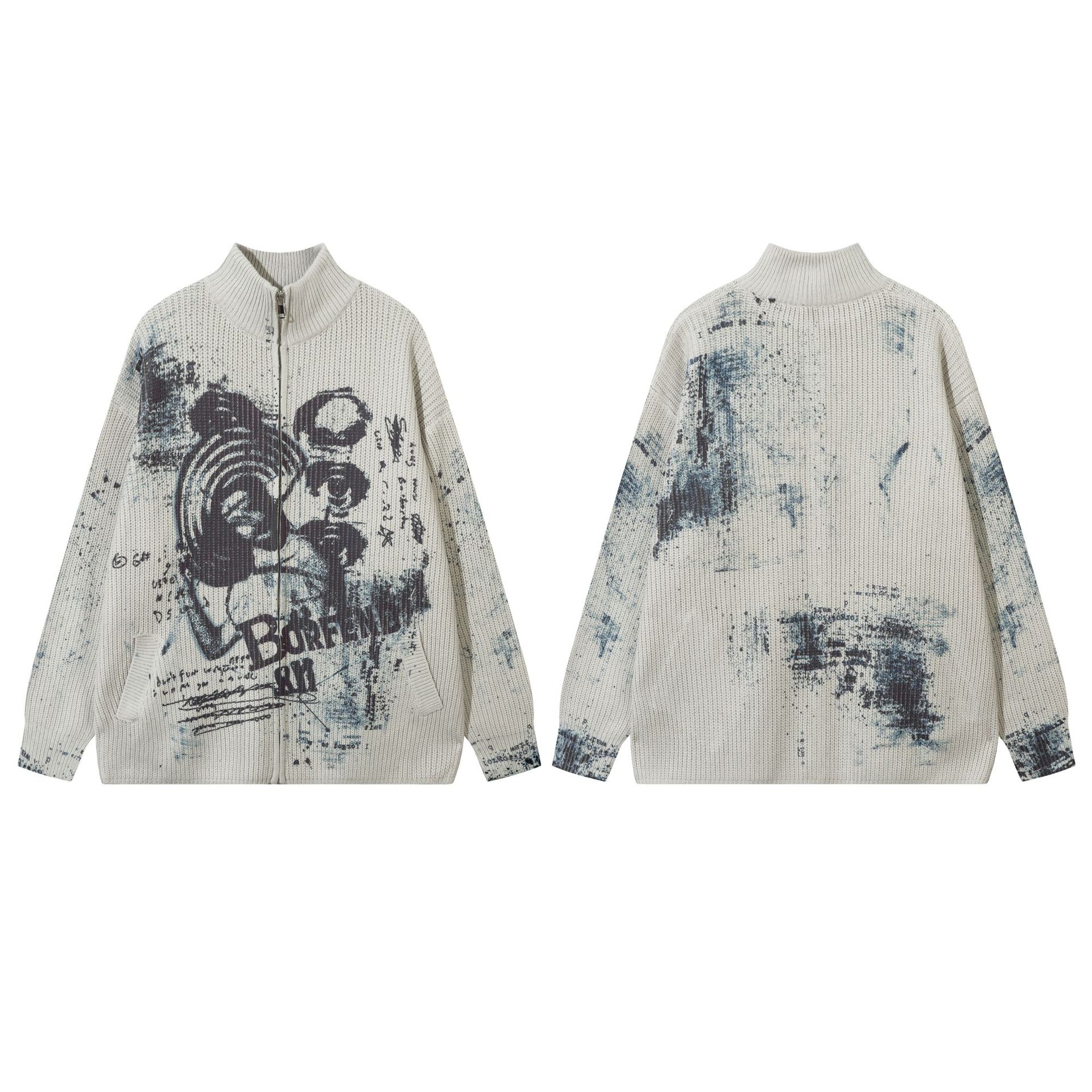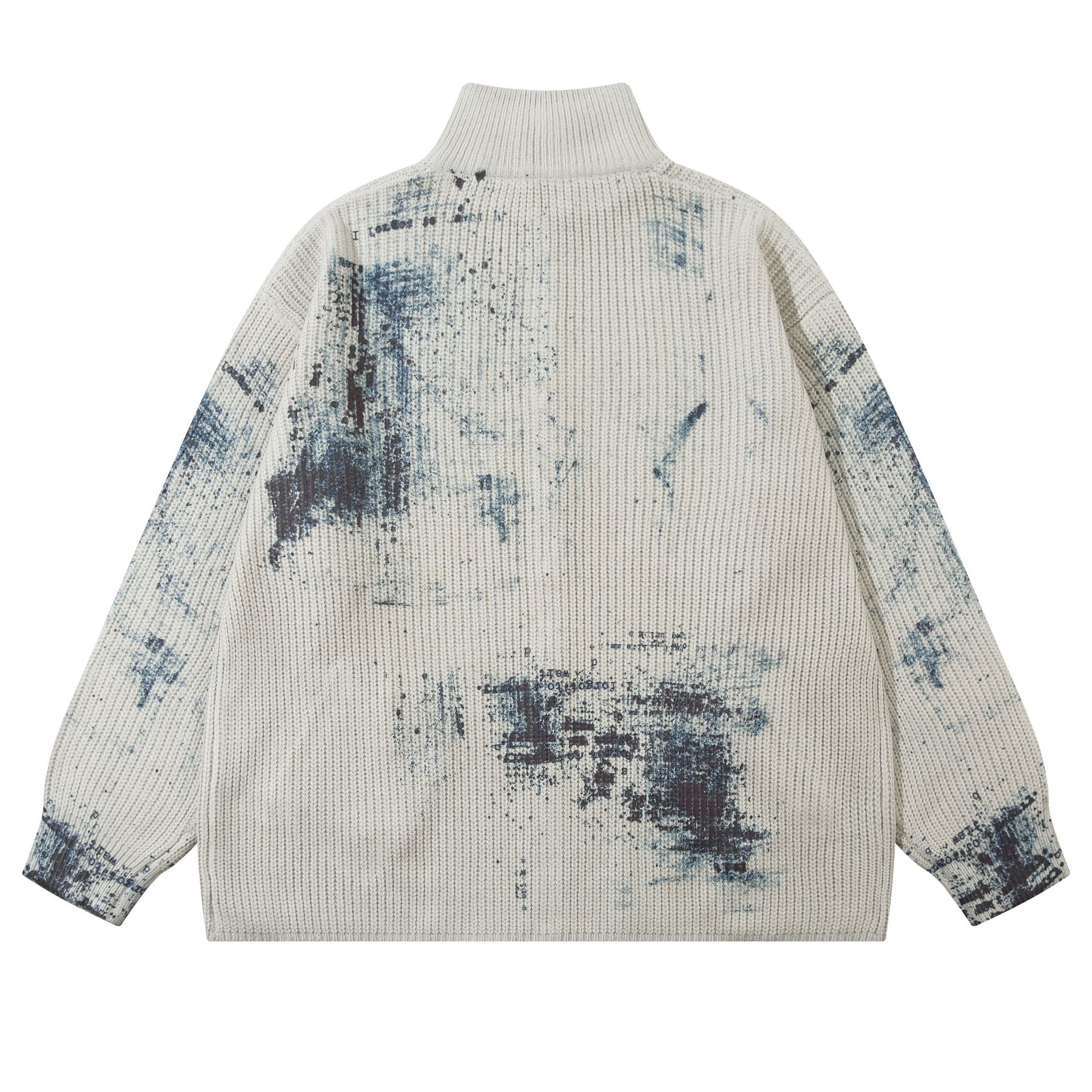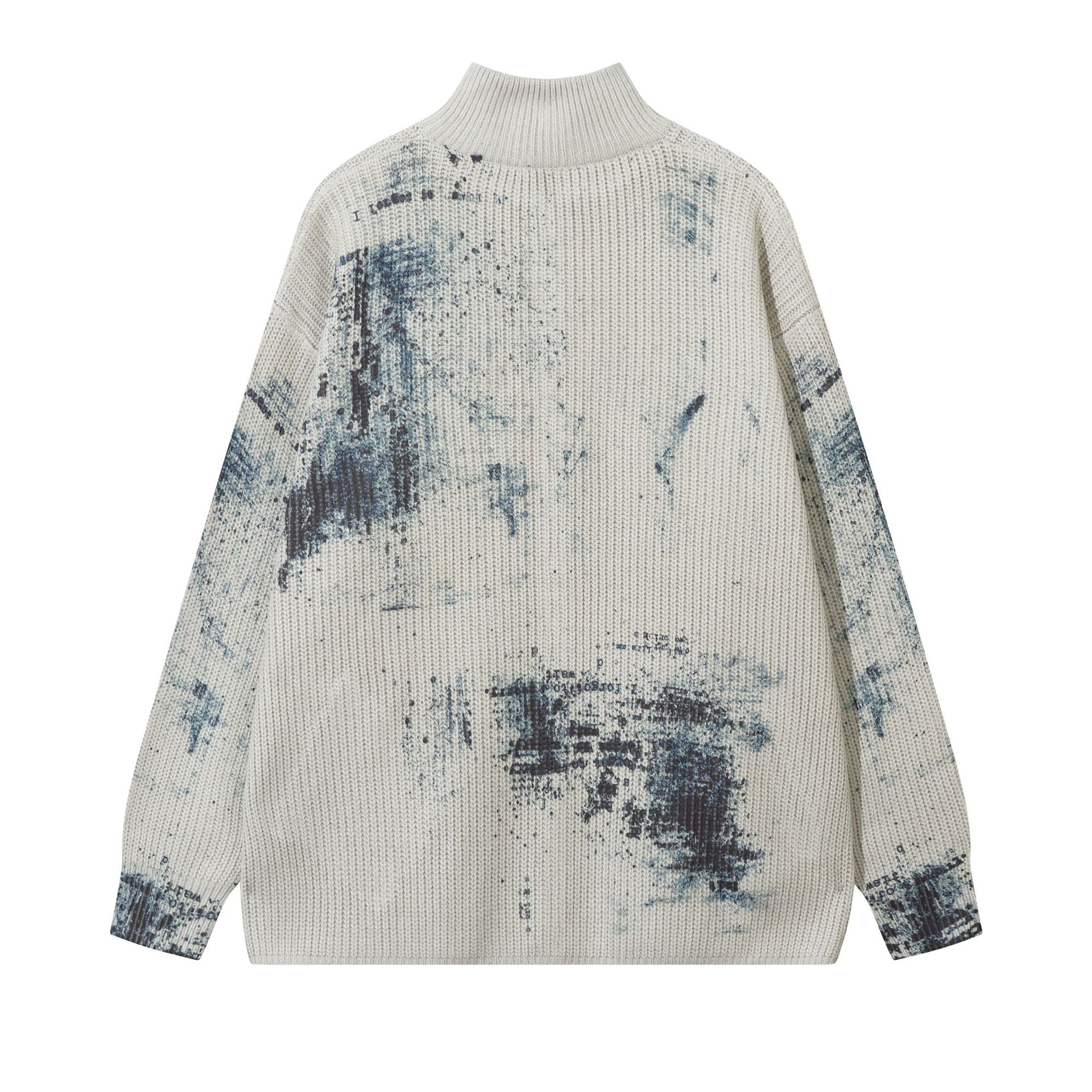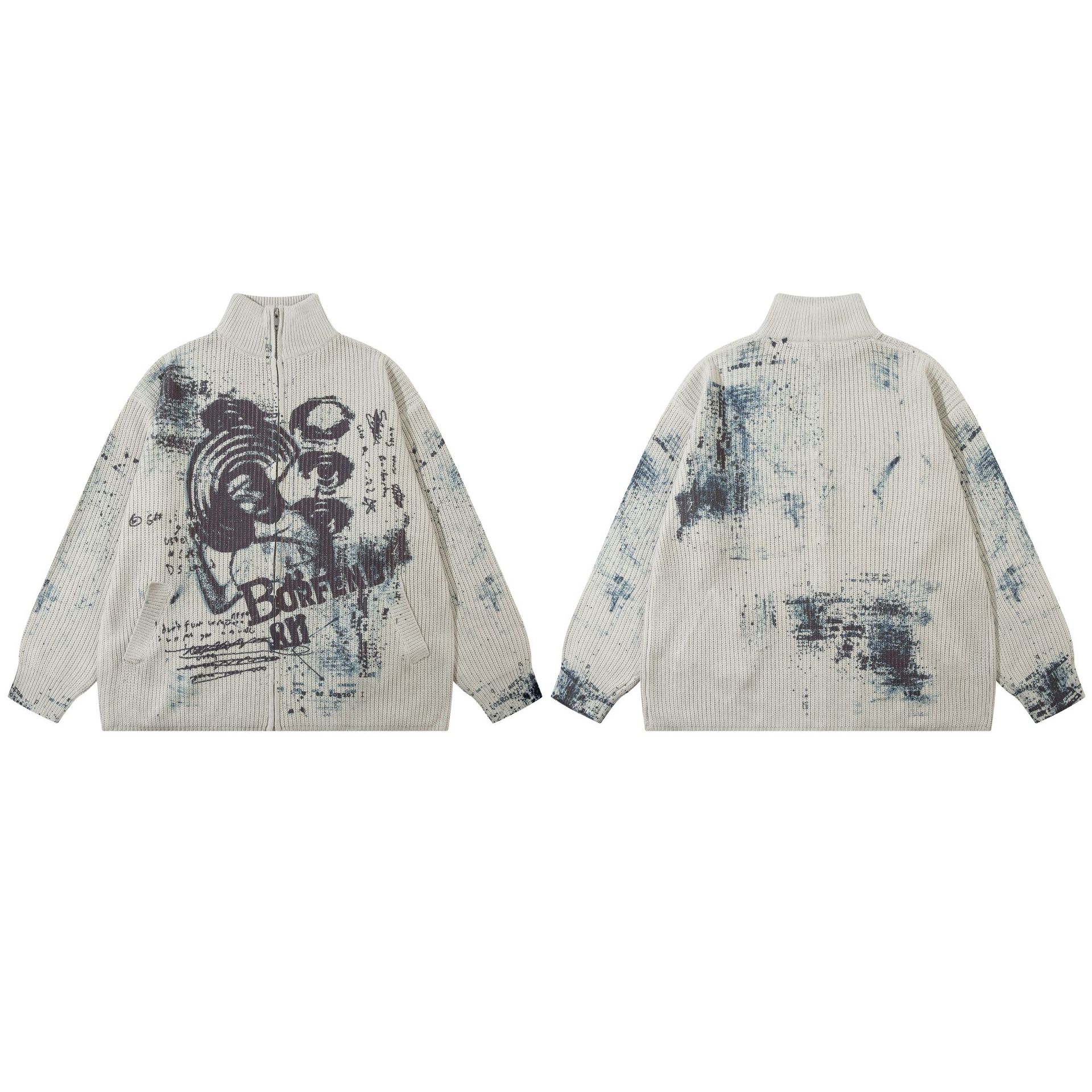 Jiayiku 남성복 2025 가을 겨울 신상품 아메리칸 레트로 스타일 스플래시 그래피티 프린트 하프 터틀넥 지퍼 스웨터 재킷스토어 가기