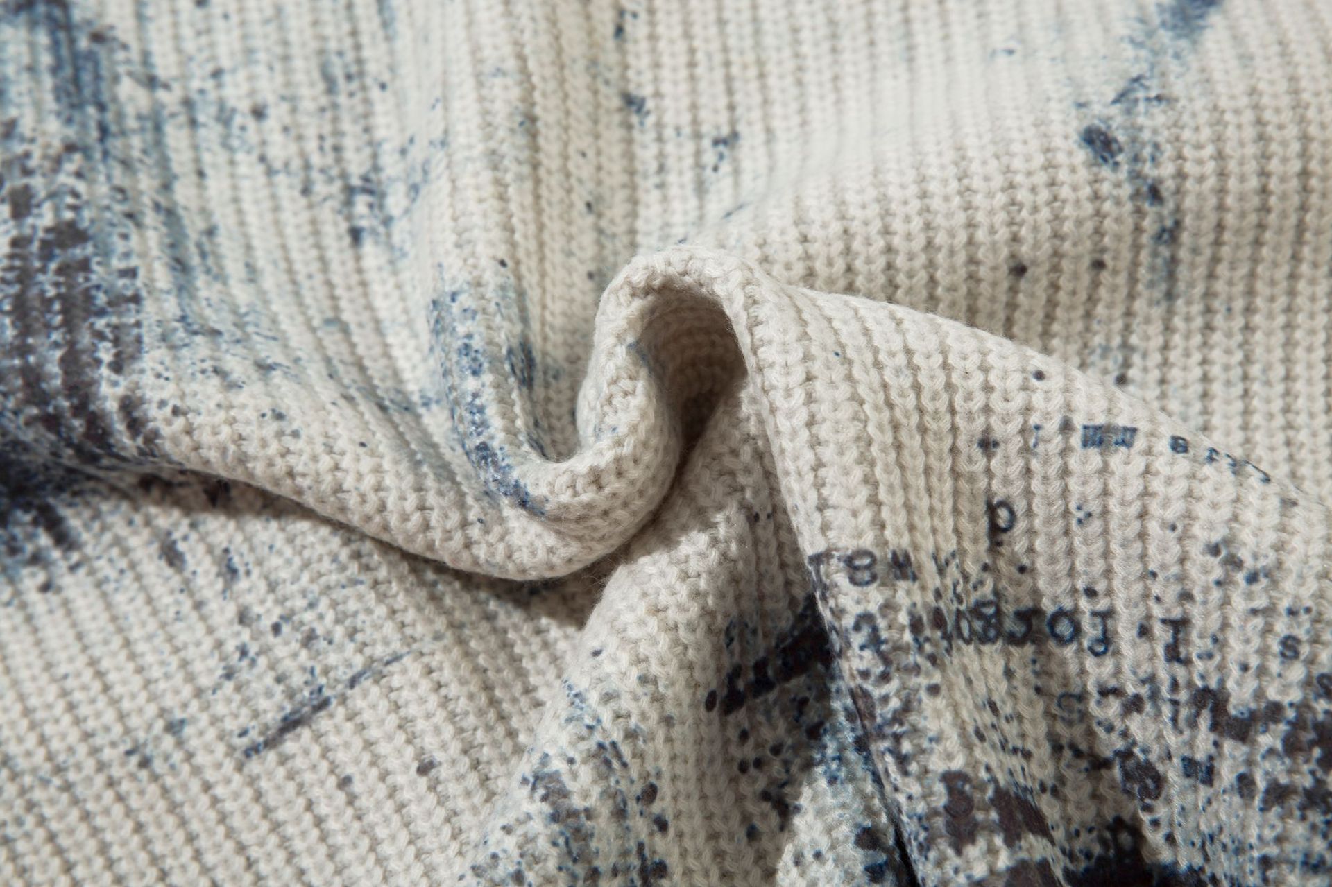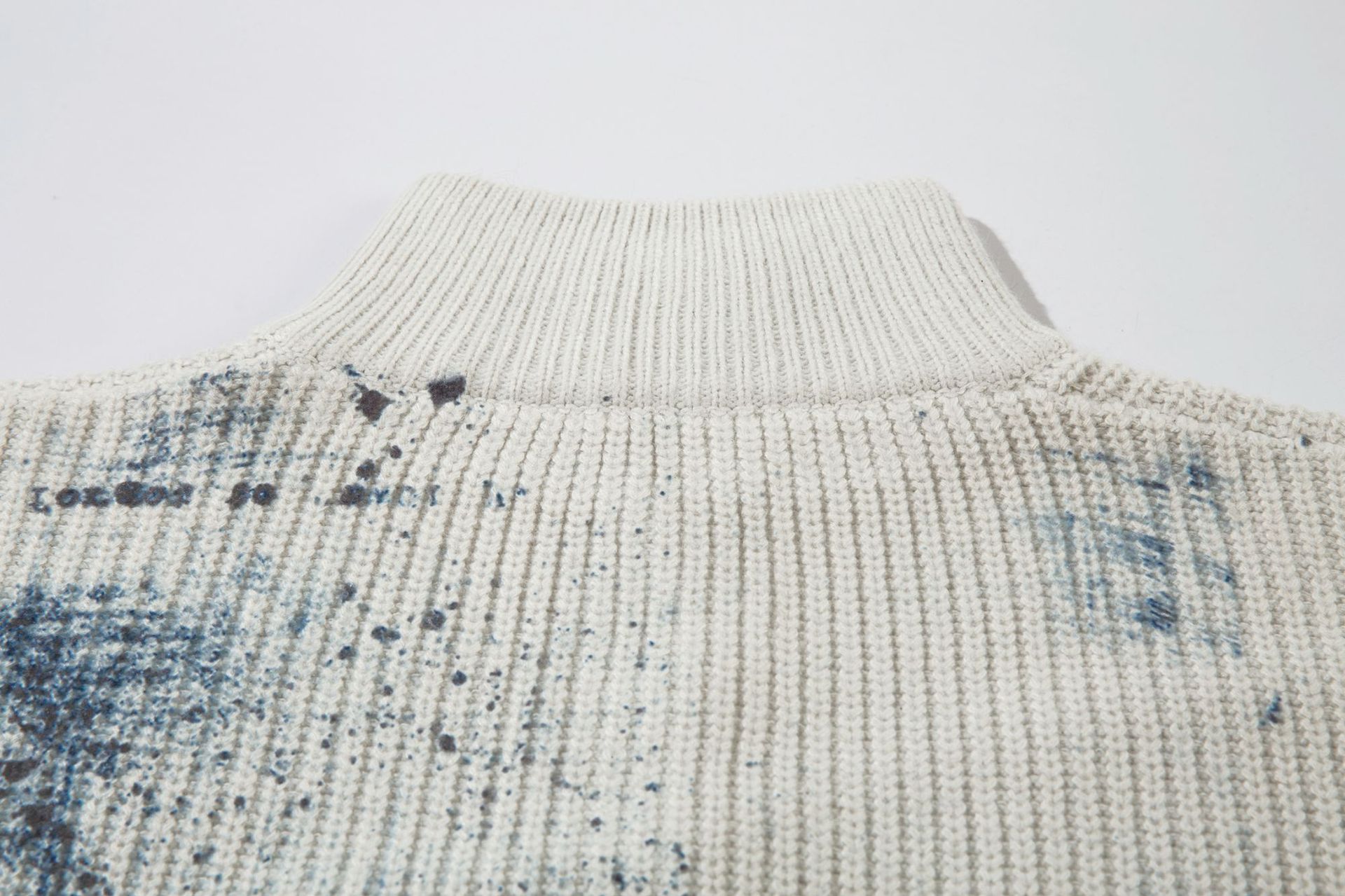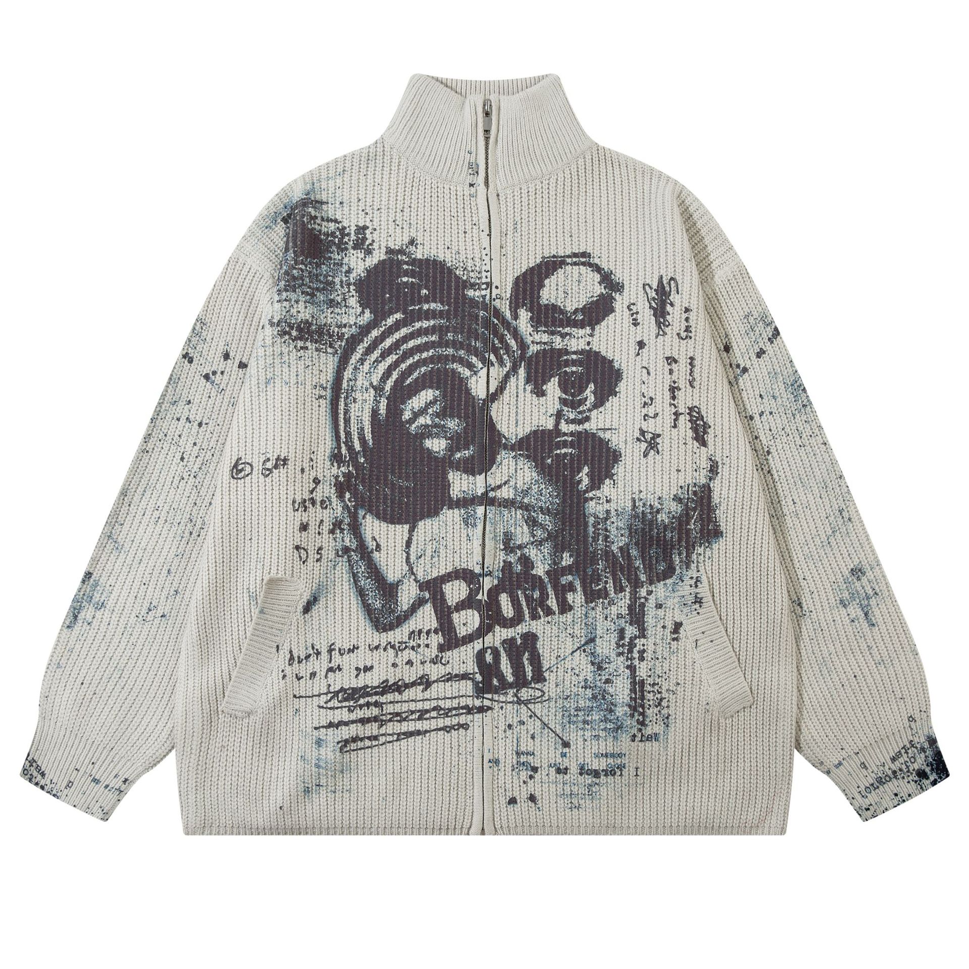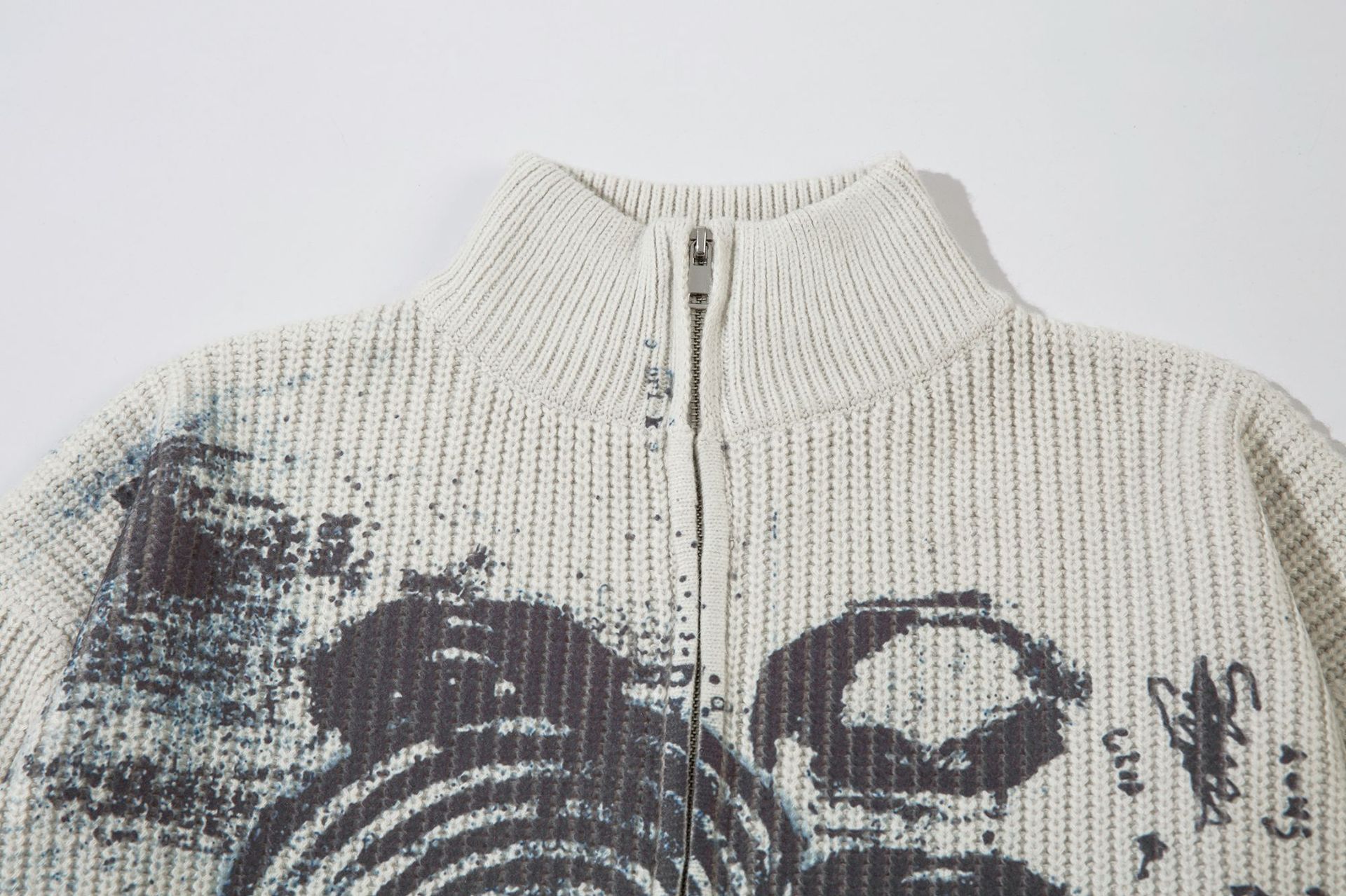 Jiayiku 남성복 2025 가을 겨울 신상품 아메리칸 레트로 스타일 스플래시 그래피티 프린트 하프 터틀넥 지퍼 스웨터 재킷스토어 가기