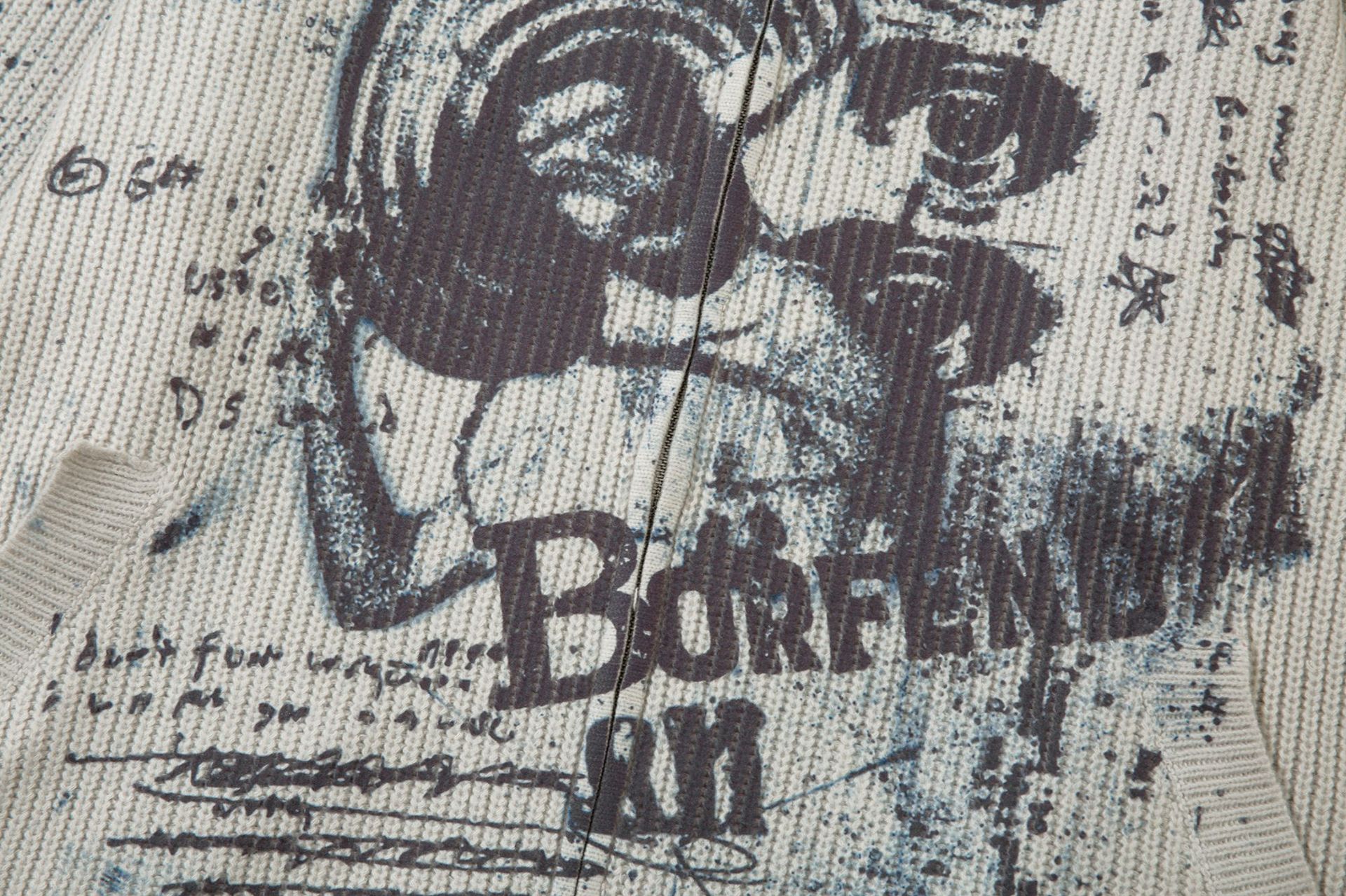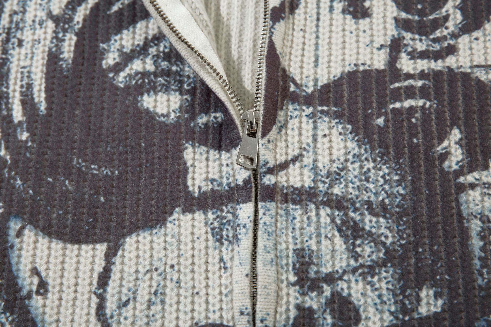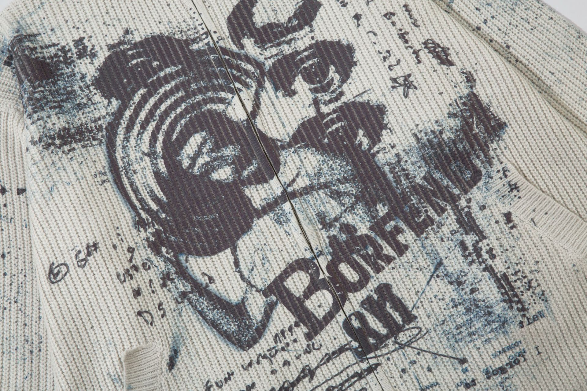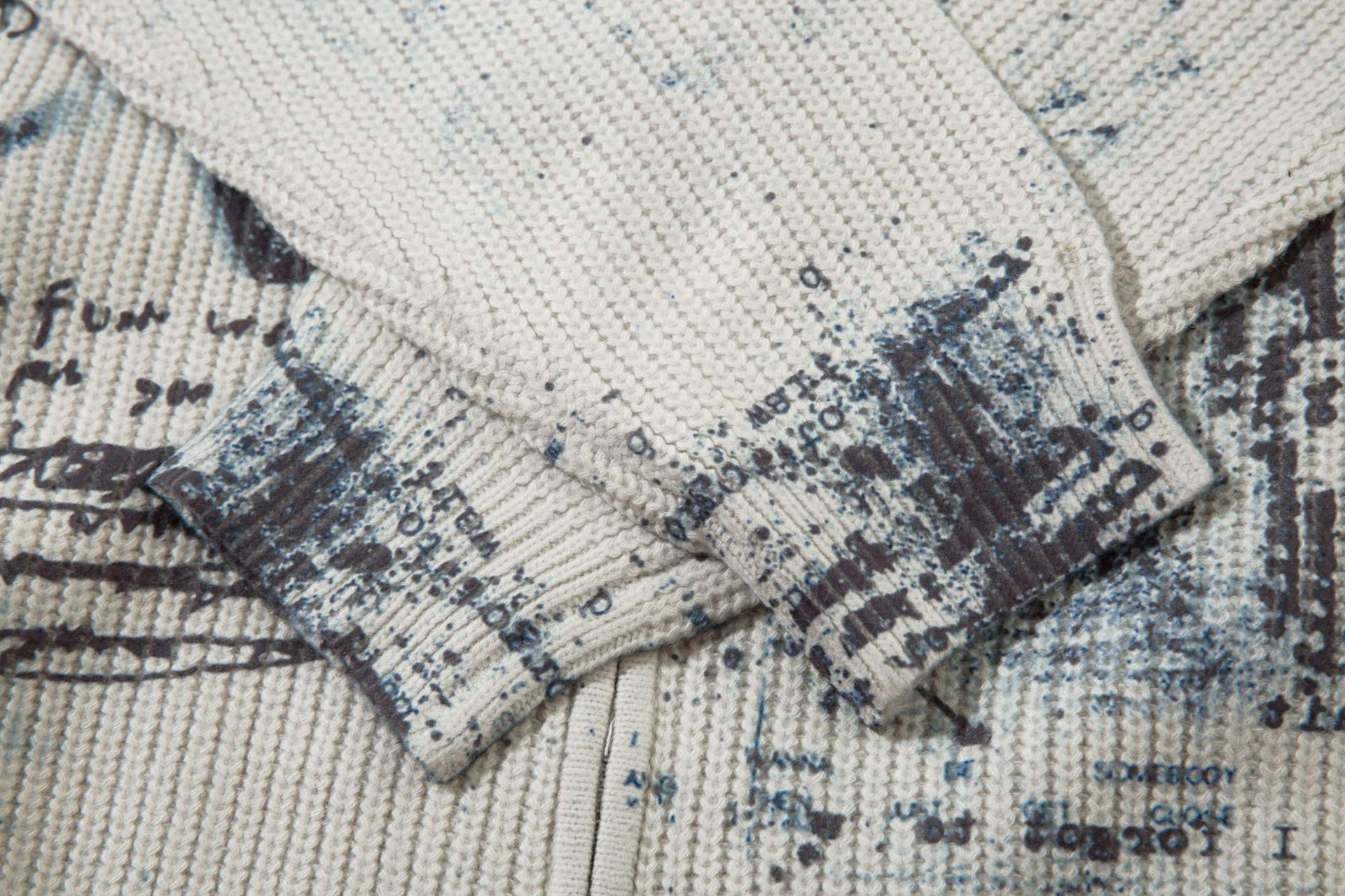 Jiayiku 남성복 2025 가을 겨울 신상품 아메리칸 레트로 스타일 스플래시 그래피티 프린트 하프 터틀넥 지퍼 스웨터 재킷스토어 가기