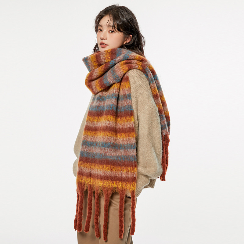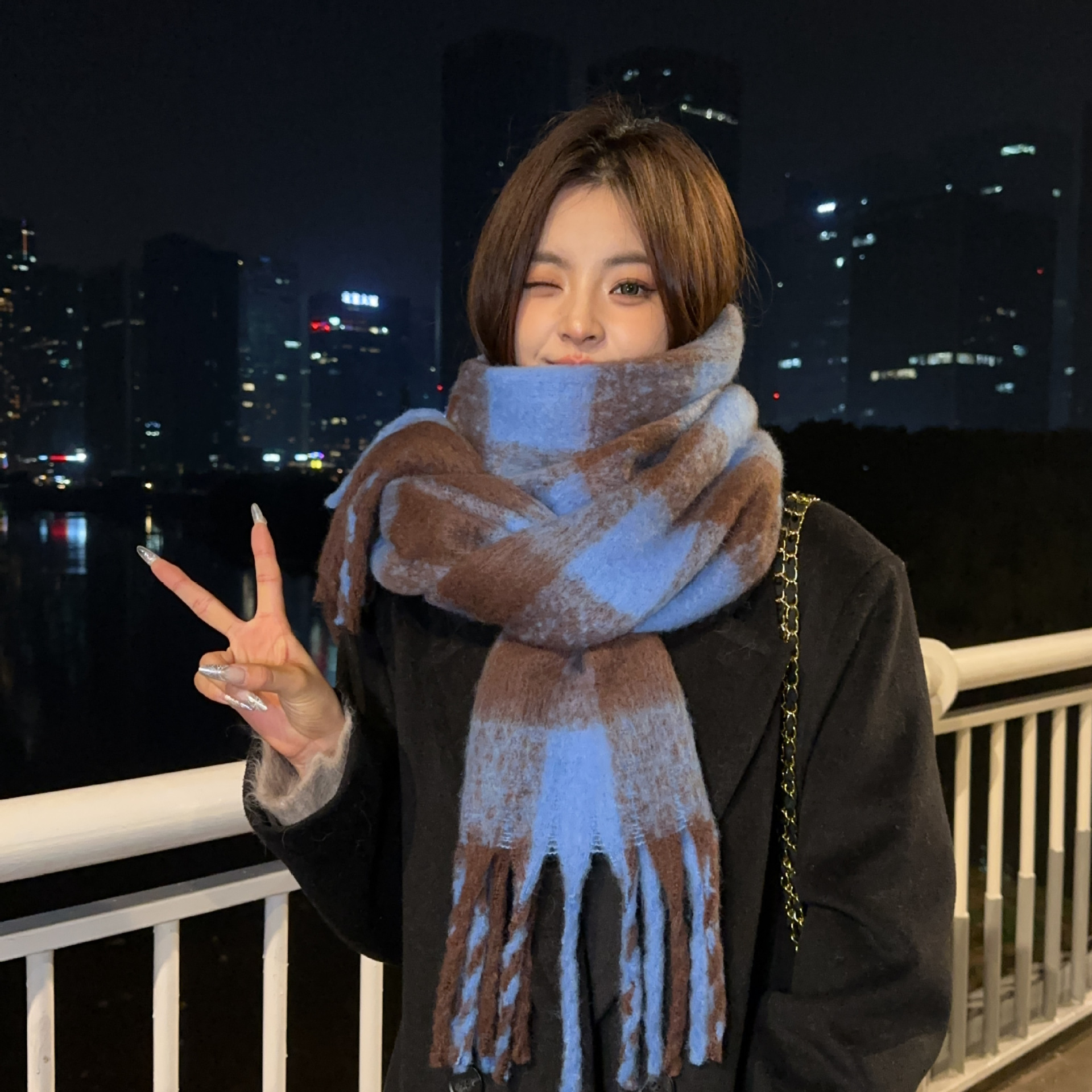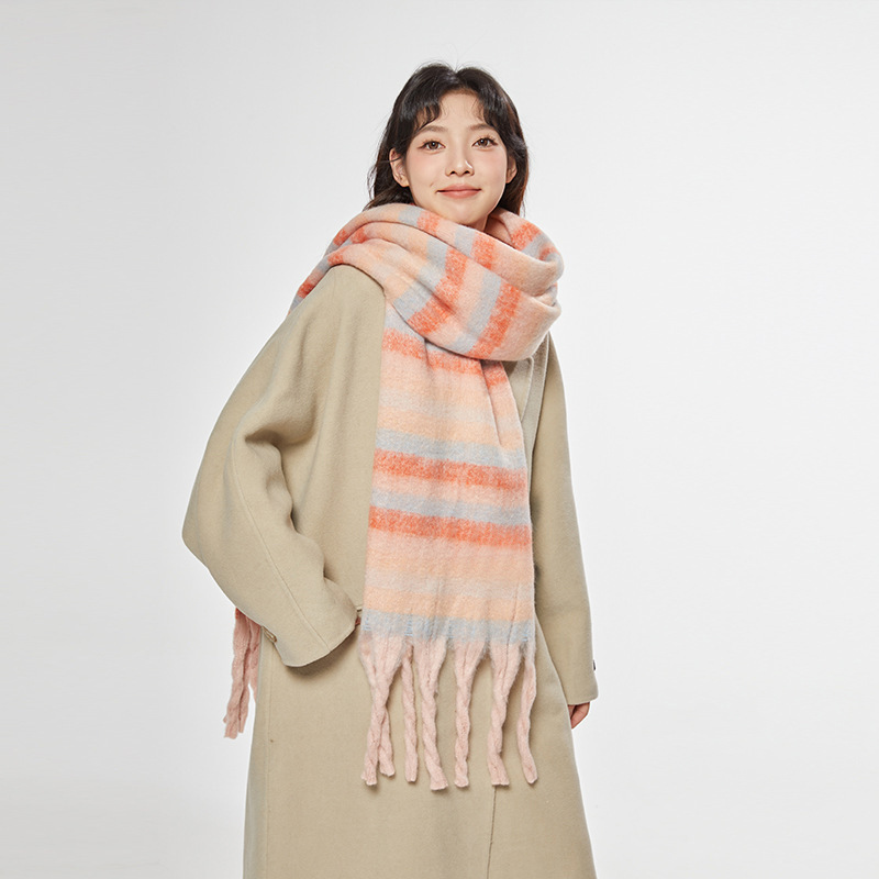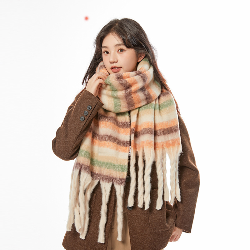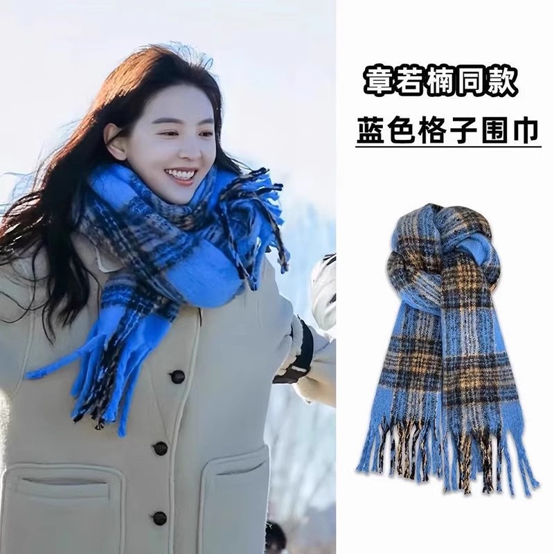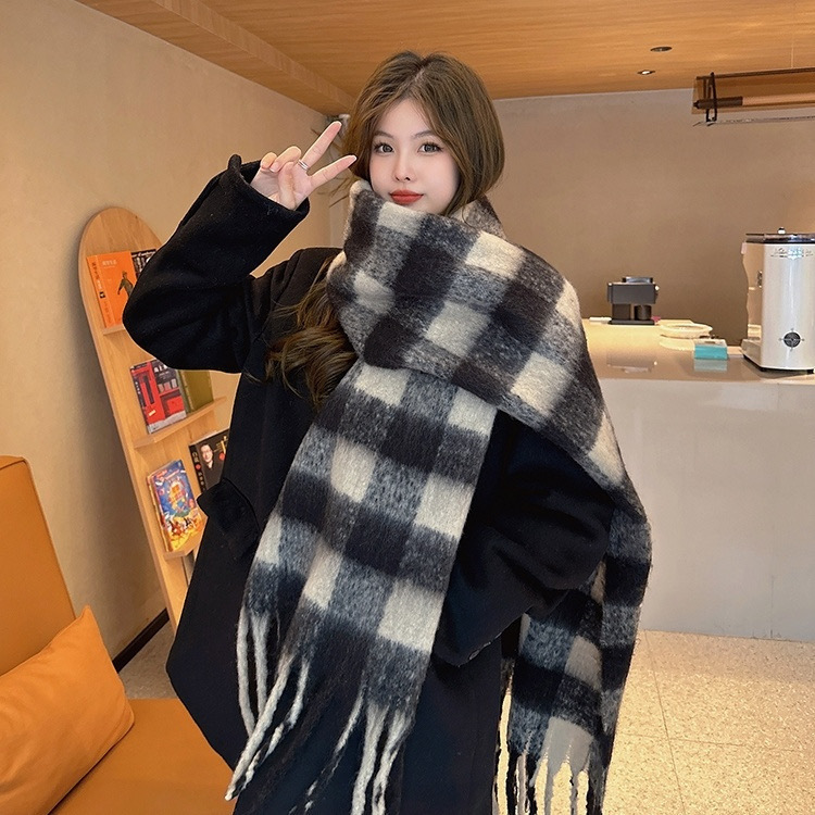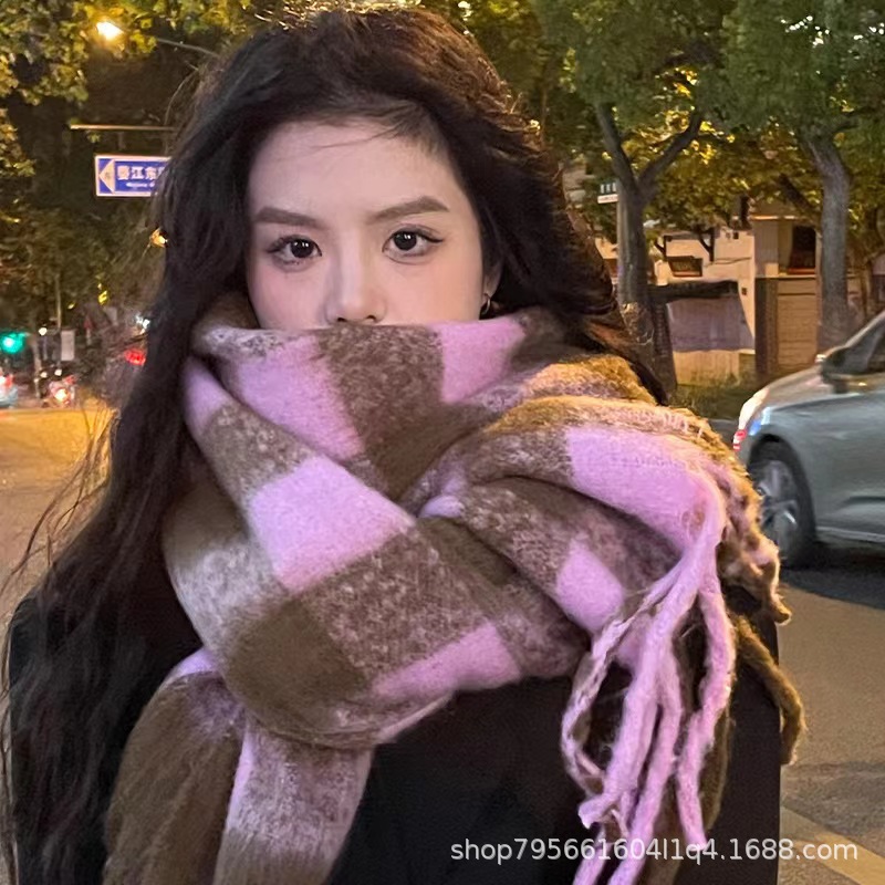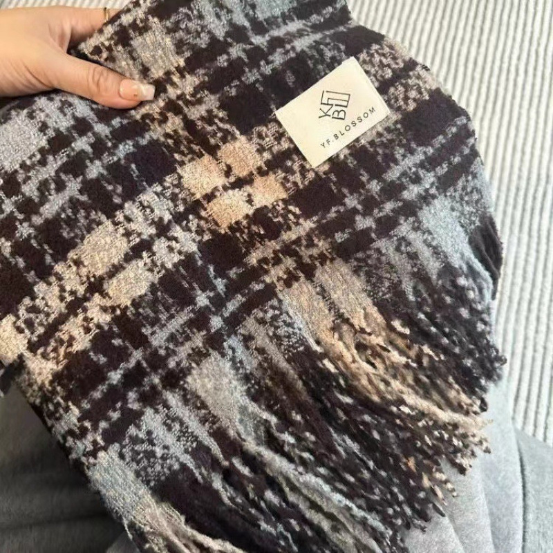 2025년 신상 체크무늬 스카프 여성용 가을 겨울 고급스러운 롱 스타일 따뜻하고 두꺼운 한국 스타일 모조 캐시미어 스카프 숄스토어 가기