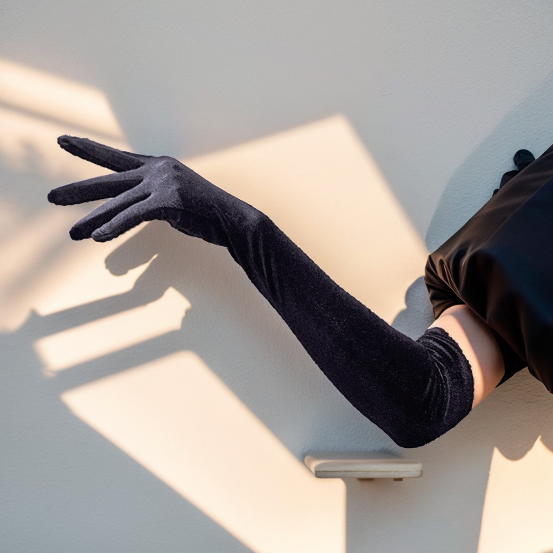 우아한 고급 골드 벨벳 레이디 따뜻한 긴 데이트 볼 무대 공연 스크립트 킬 환영 에티켓 장갑
