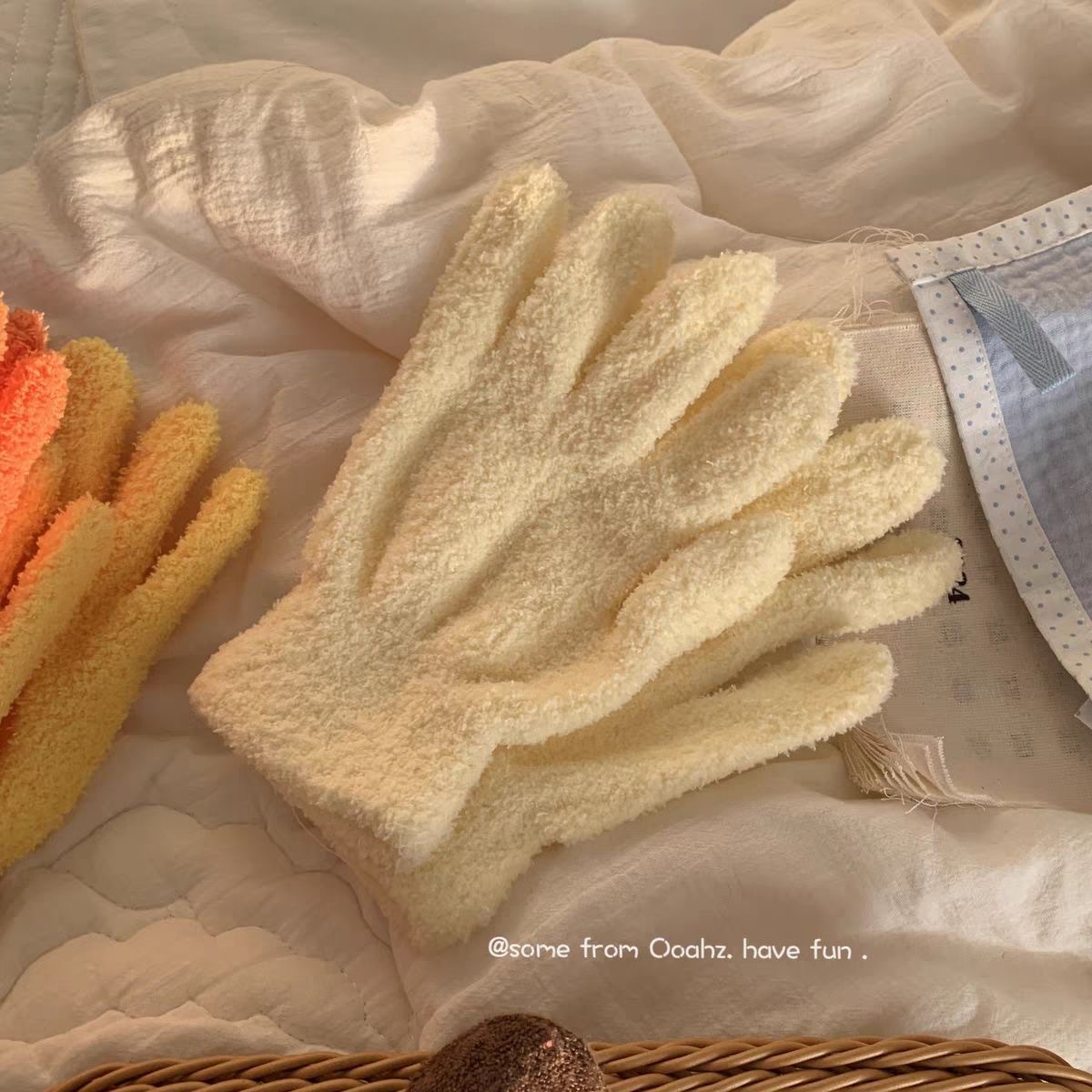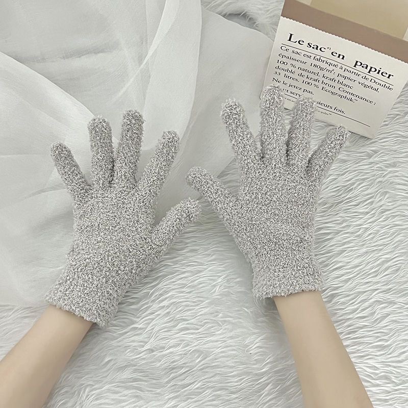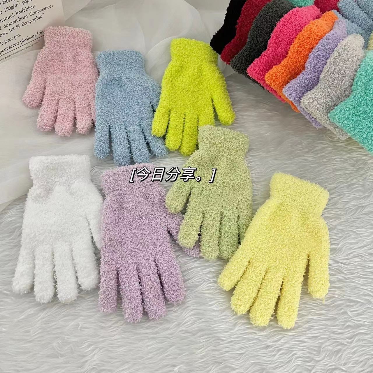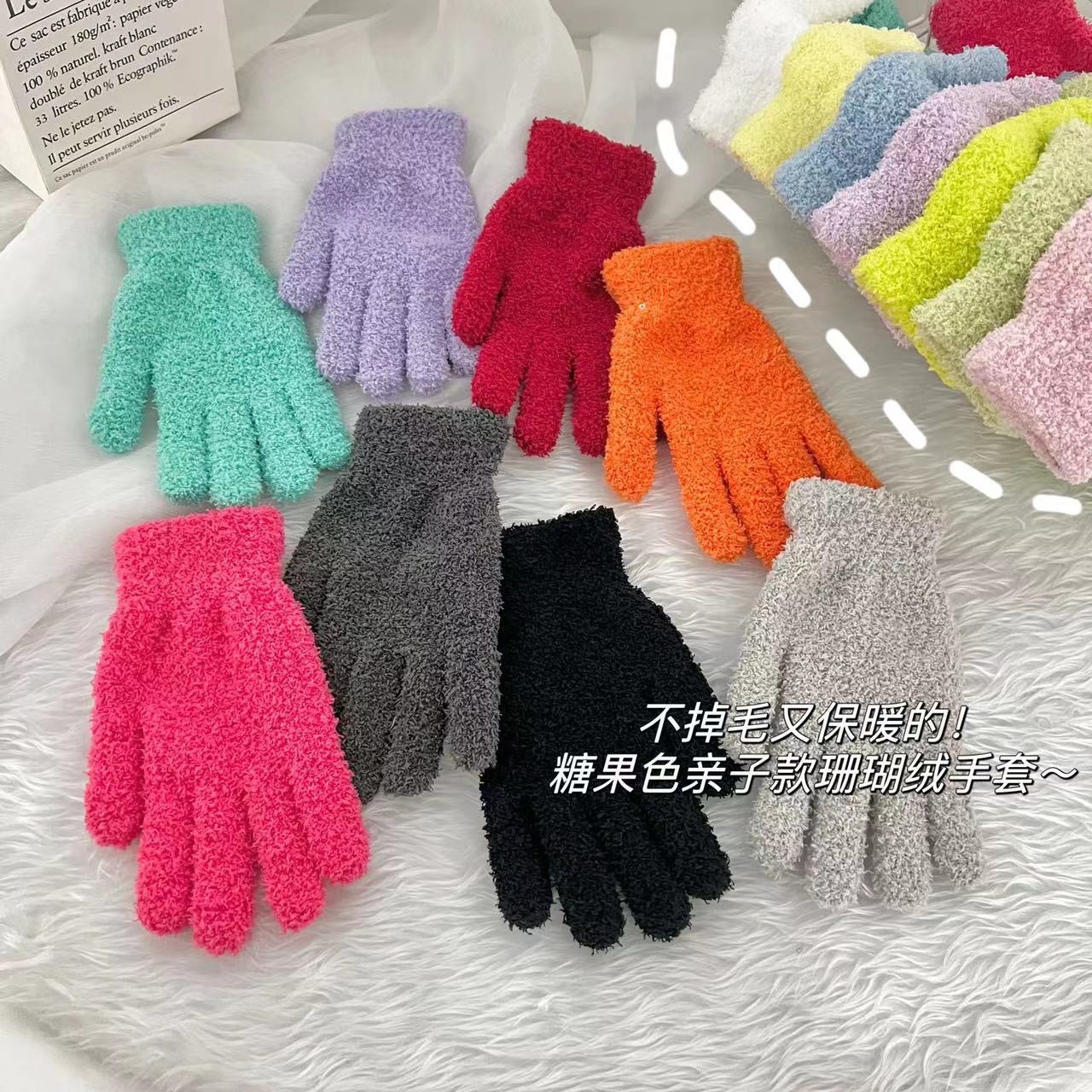 사탕 색 어린이 니트 솔리드 컬러 장갑 기모 두꺼운 산호 양털 손가락 부동액 달콤한 귀여운 가을과 겨울