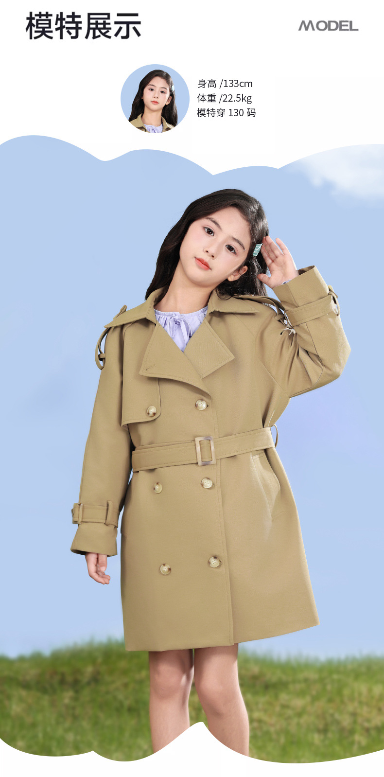 女童风衣外套2024中大童春装新款亲子长款儿童风衣春秋季中大童装