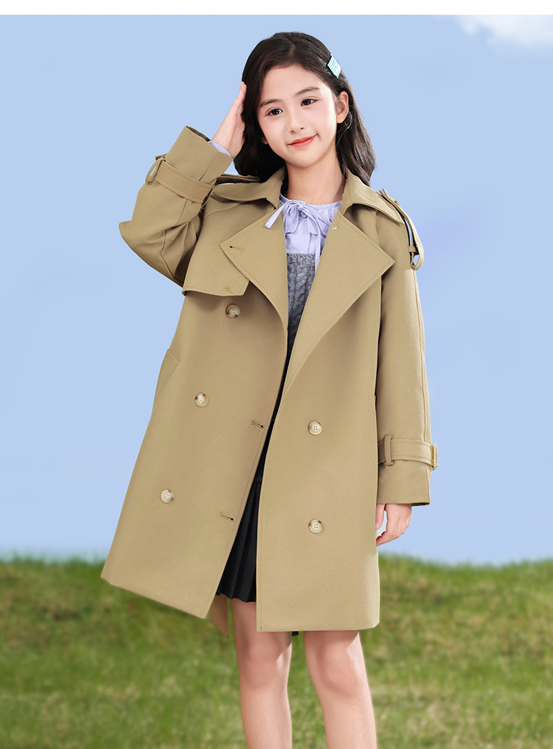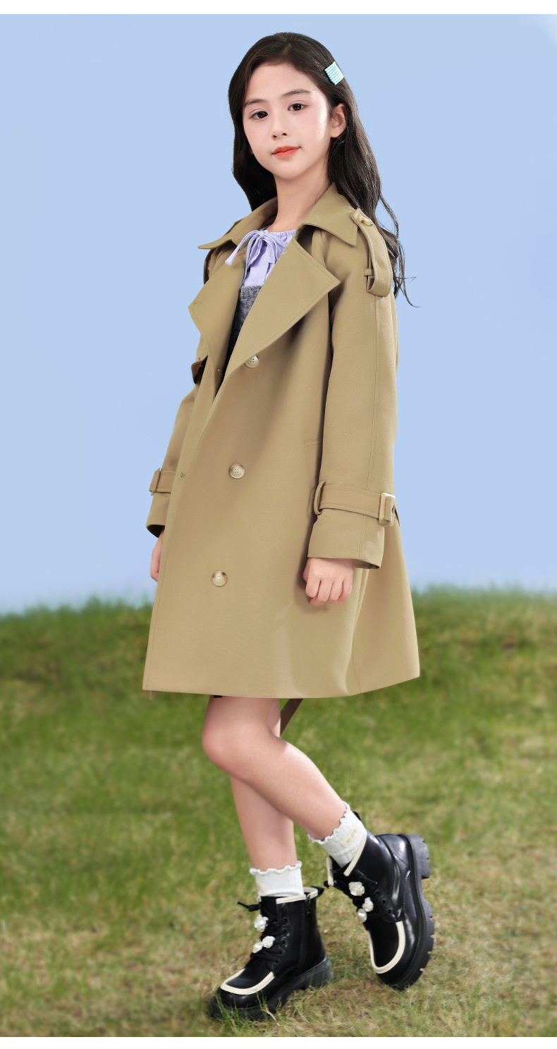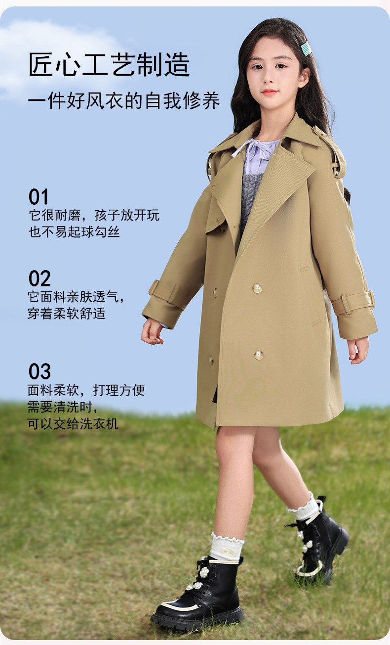 女童风衣外套2024年春秋装新韩版中大童外套女孩中长款儿童风衣