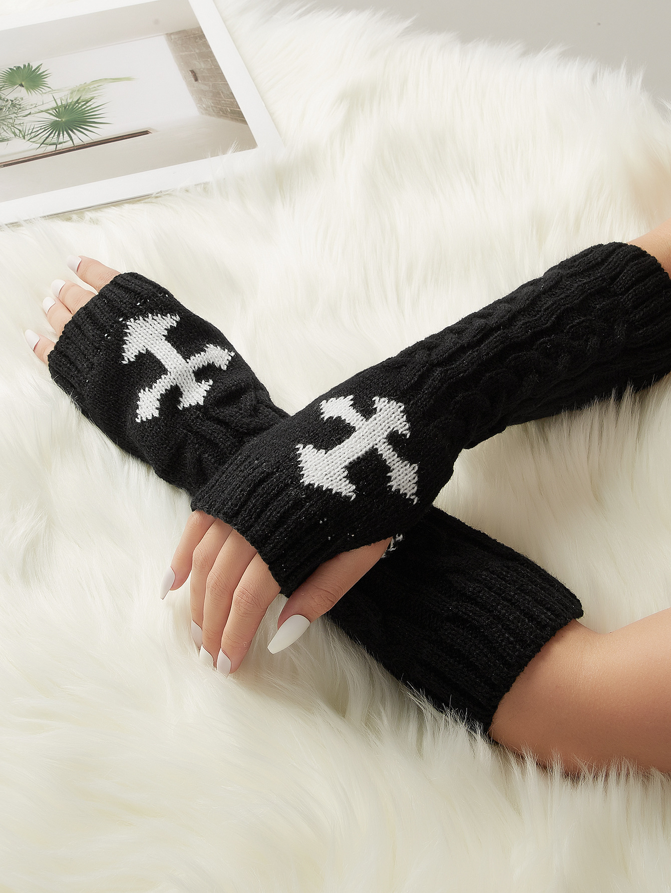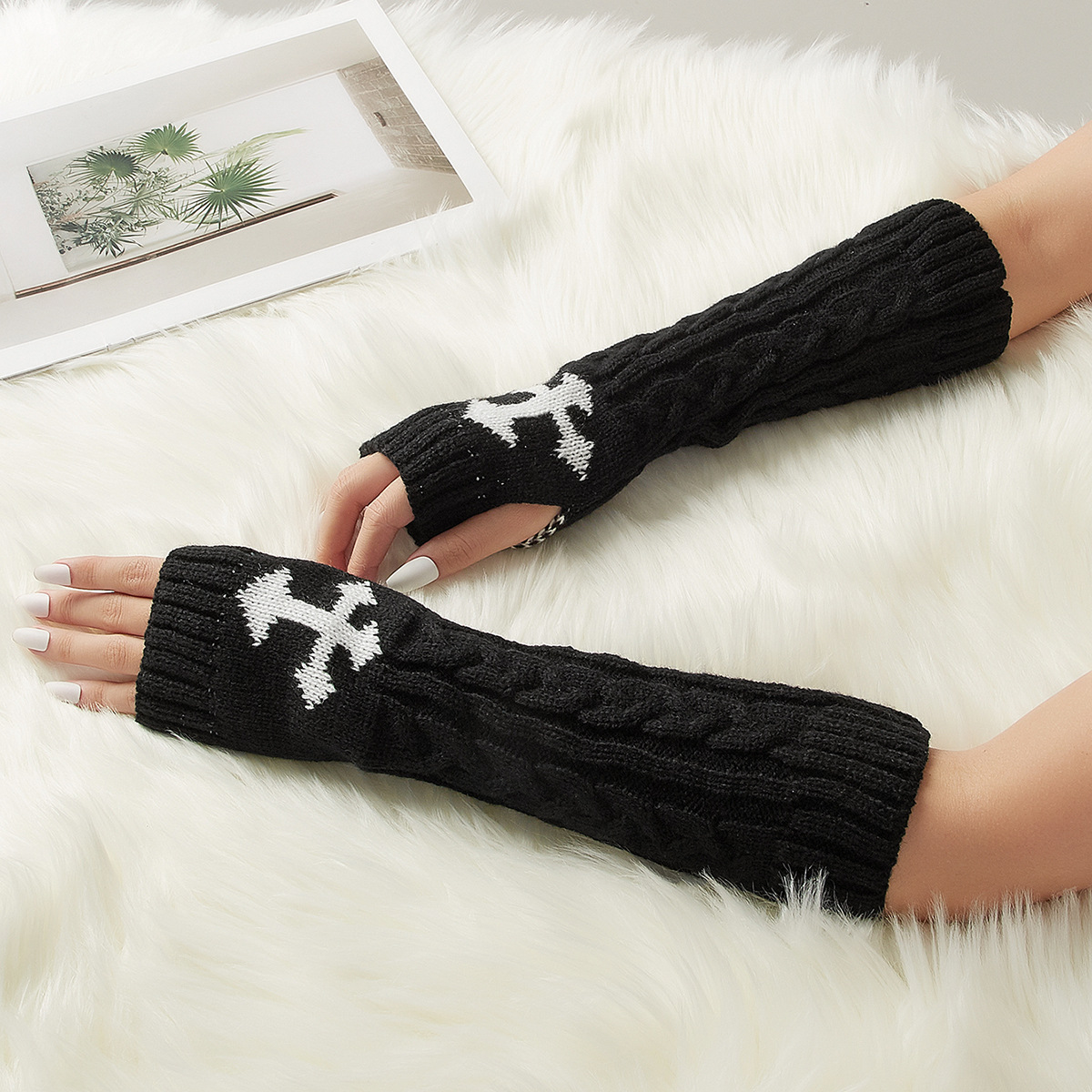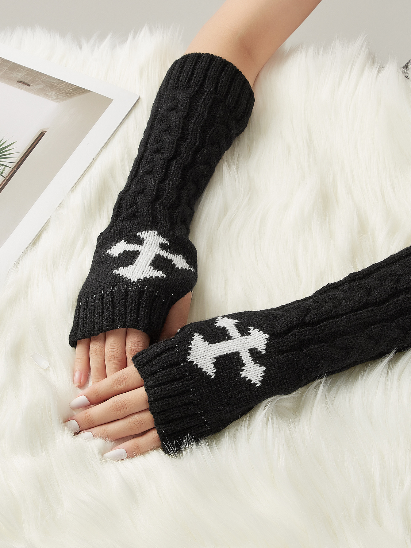 새로운 크로스 장갑 아크릴 니트 장갑 따뜻한 트위스트 패턴 JK 소녀 겨울 따뜻한 팔 커버
