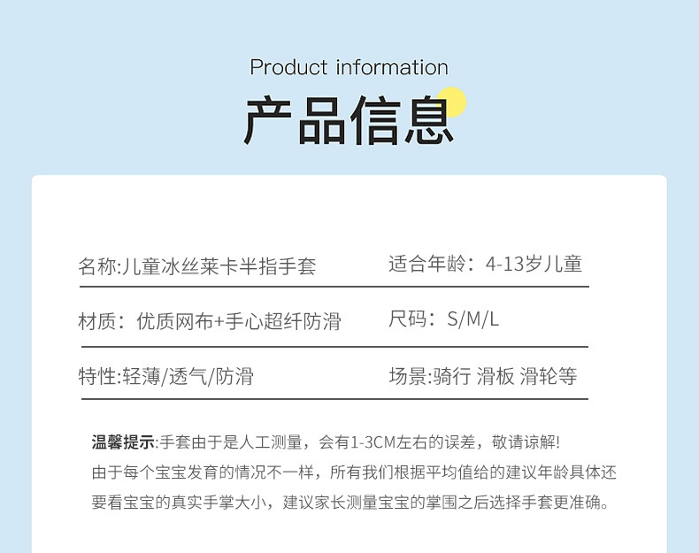 어린이 반 손가락 장갑 남성과 여성의 여름 보호 착용 방지 비 슬립 통기성 자전거 선 스크린 충격 흡수 사이클링 장갑