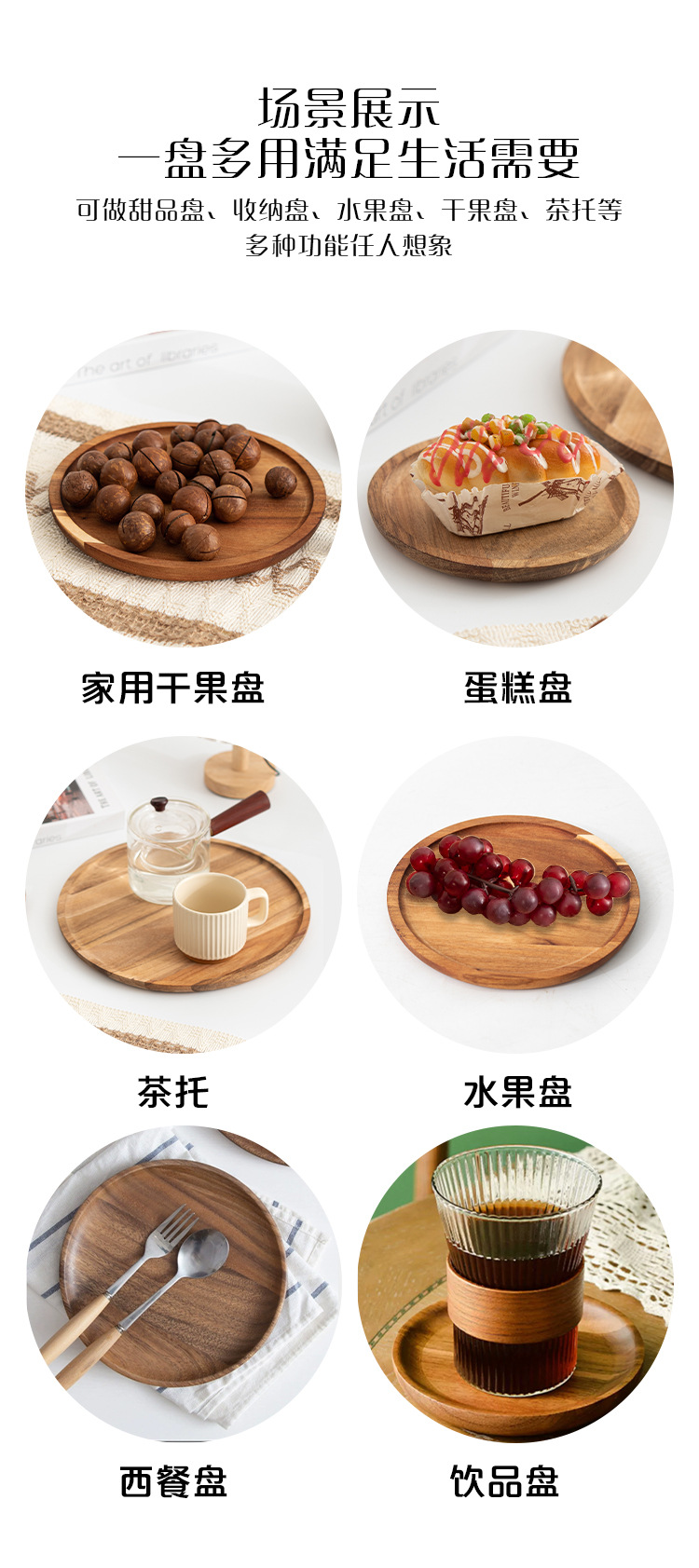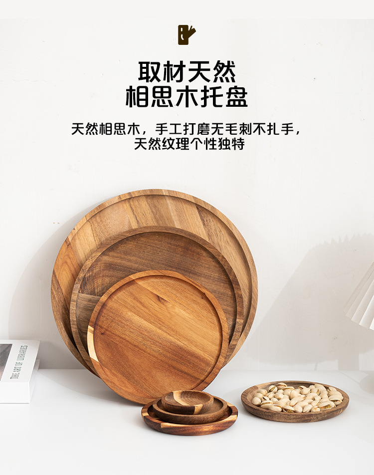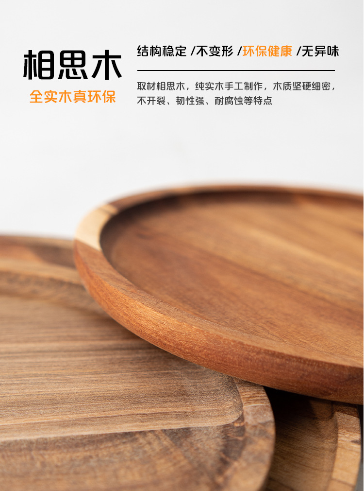 나무 트레이 서양식당 나무 베이킹 트레이 원형 트레이 원목 원형 나무 접시 디저트 장식 접시 건과일 디저트
