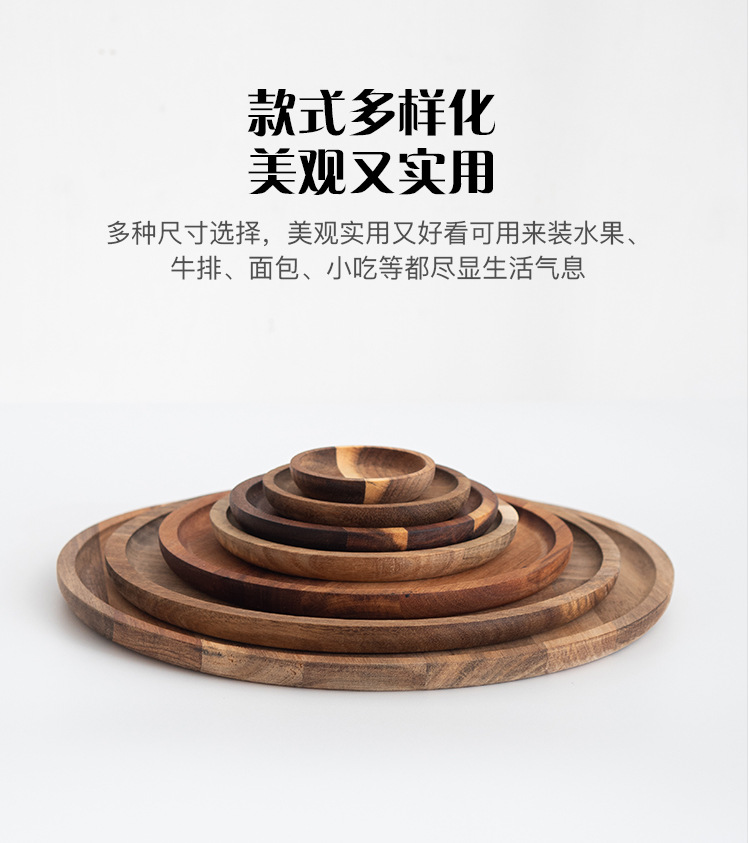 나무 트레이 서양식당 나무 베이킹 트레이 원형 트레이 원목 원형 나무 접시 디저트 장식 접시 건과일 디저트스토어 가기