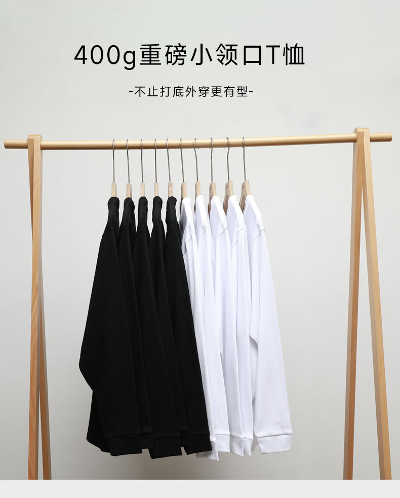 남성용 아메리칸 스몰 네크라인 긴팔 티셔츠 400g 헤비급 루즈 코튼 화이트 바닥 셔츠 남성용 및 여성용 원피스 드롭 배송