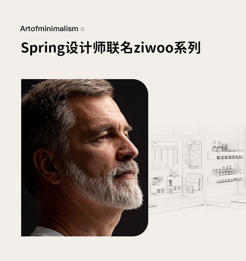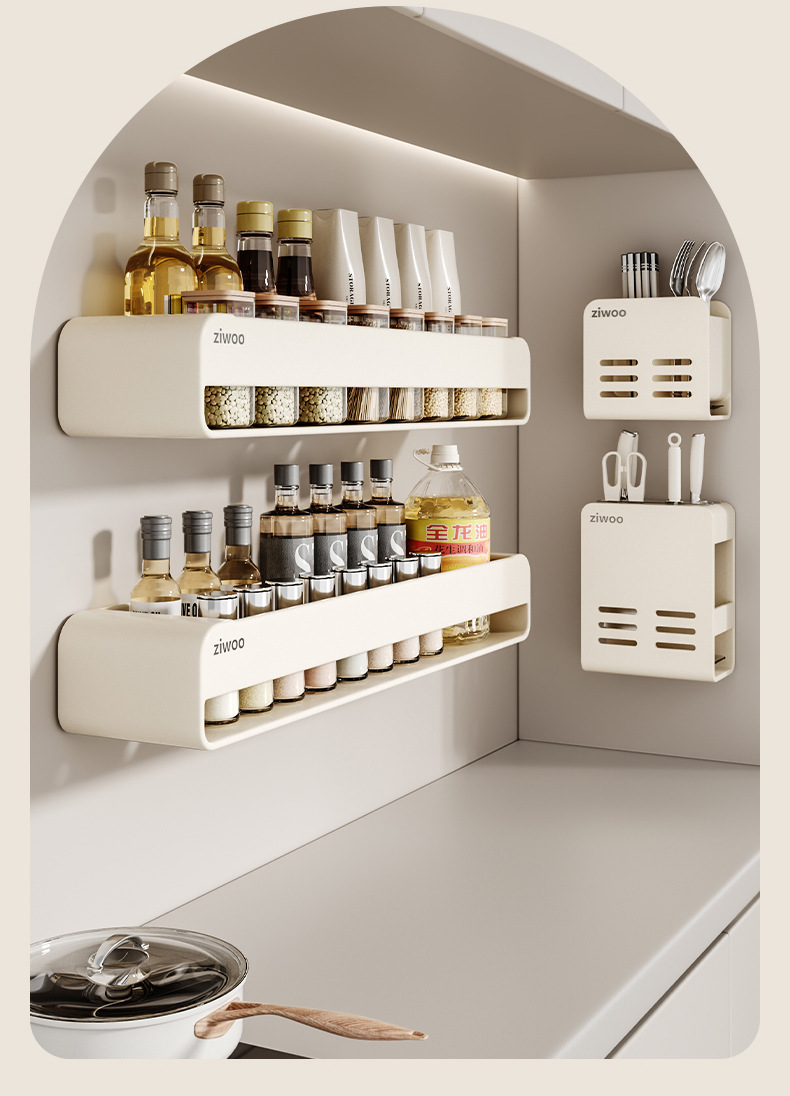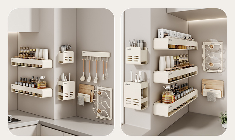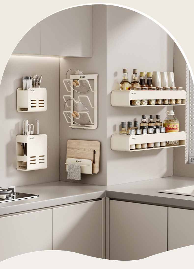 • [밀크화이트 지우 공동브랜드 디자인] 6종세트 (조미료걸이*2+냄비뚜껑걸이+도마걸이+칼꽂이+젓가락통)