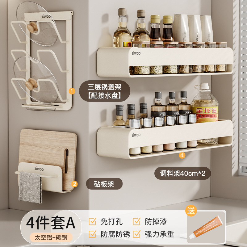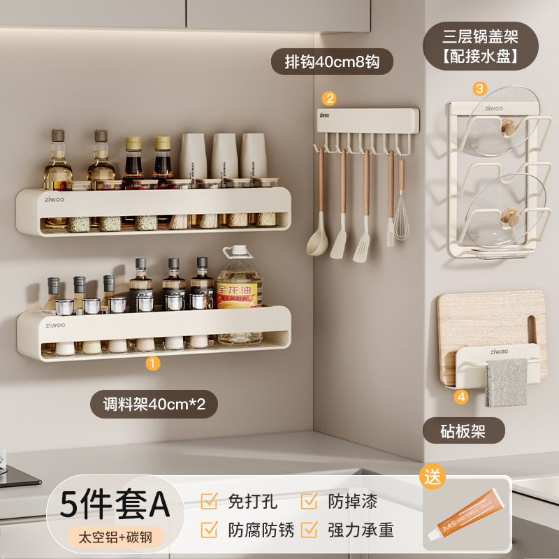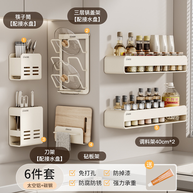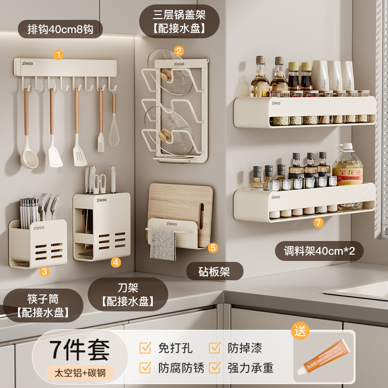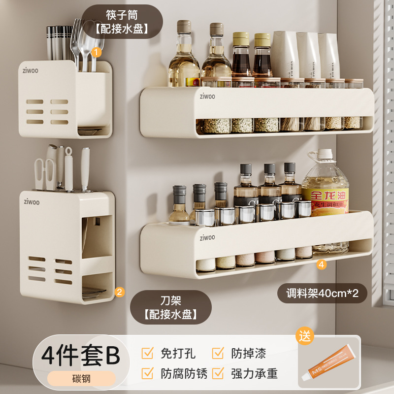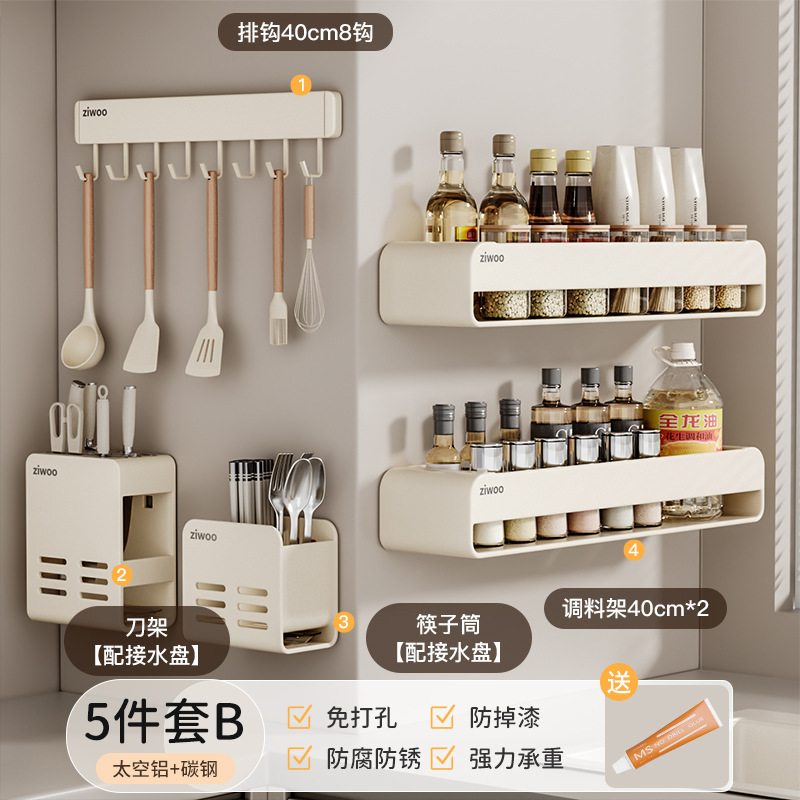 주방 스토리지 랙 이동식 펀치 프리 조미료 벽 마운트 나이프 랙 공급 Daquan 다기능 스토리지 선반스토어 가기