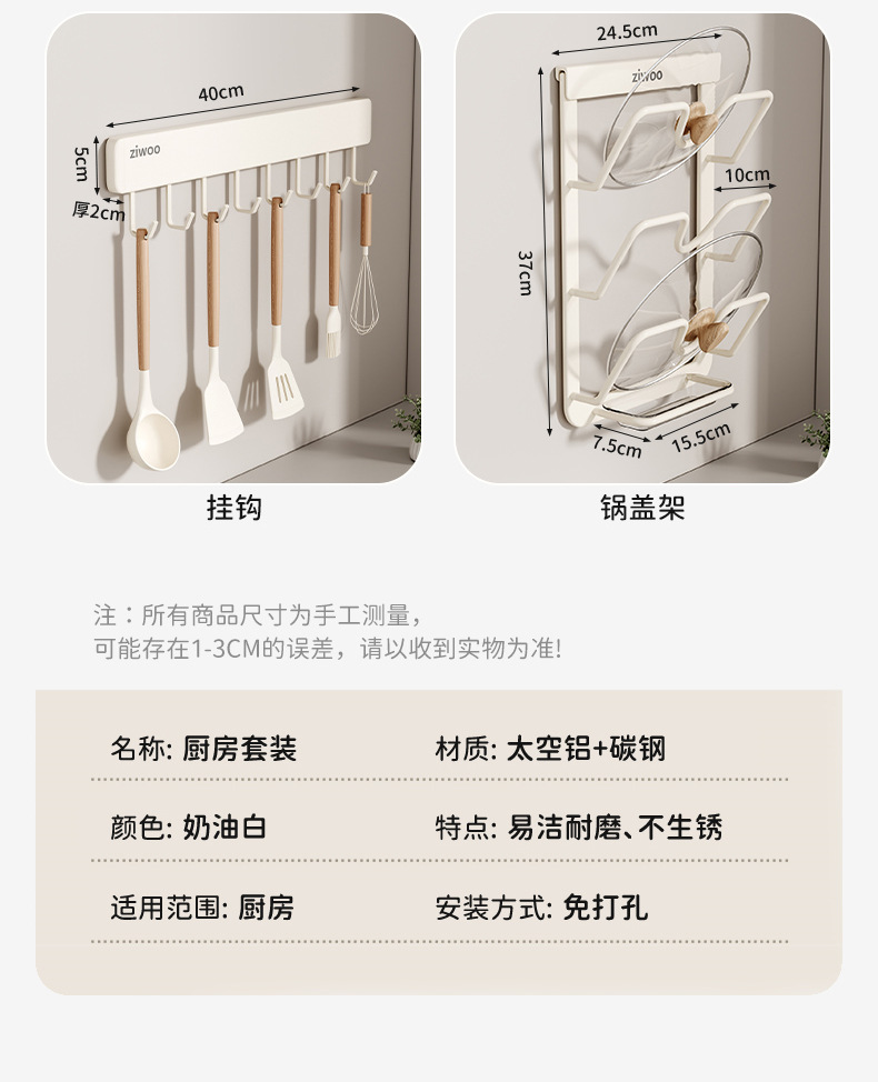 • [밀크화이트 지우 공동브랜드 디자인] 5종세트A (조미료걸이*2+냄비뚜껑걸이+도마걸이+줄고리)