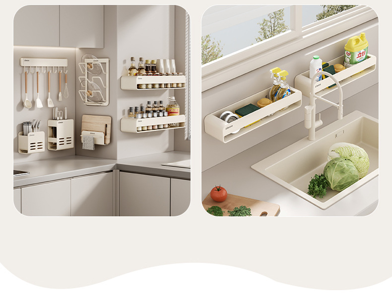 주방 스토리지 랙 이동식 펀치 프리 조미료 벽 마운트 나이프 랙 공급 Daquan 다기능 스토리지 선반