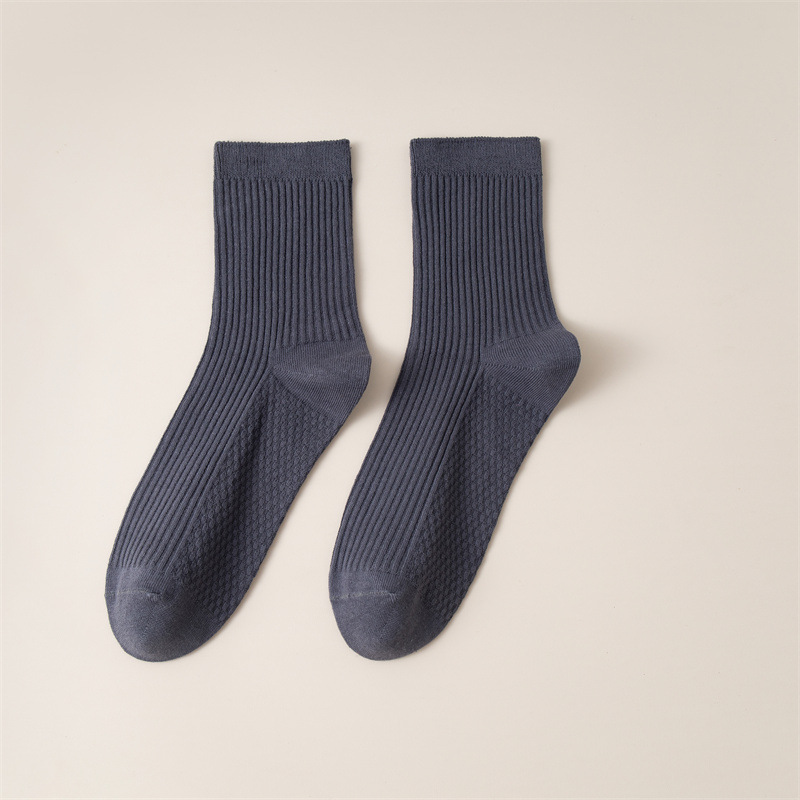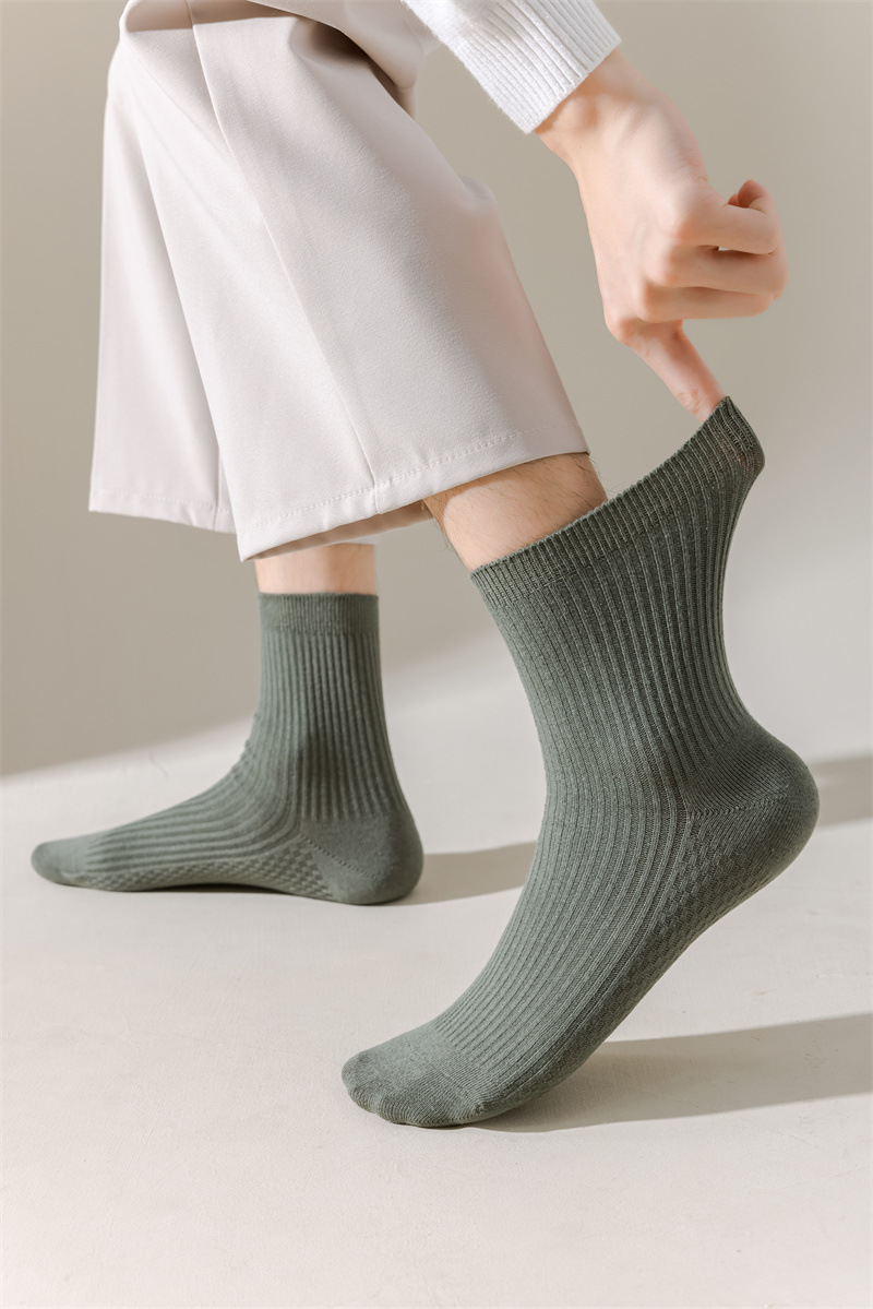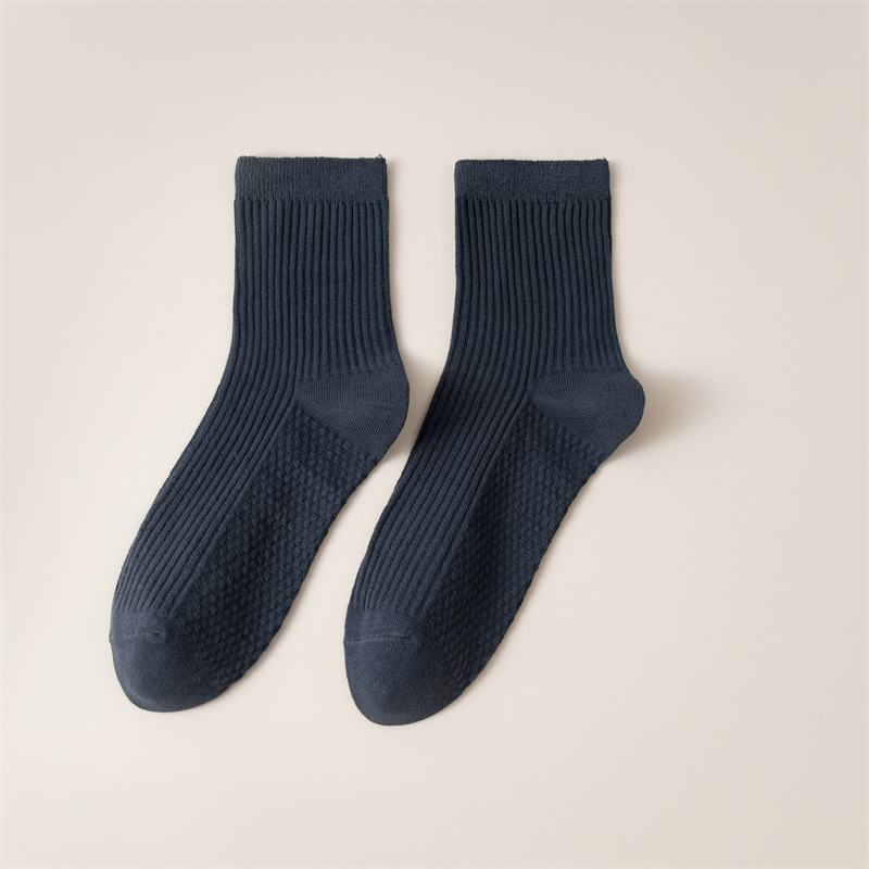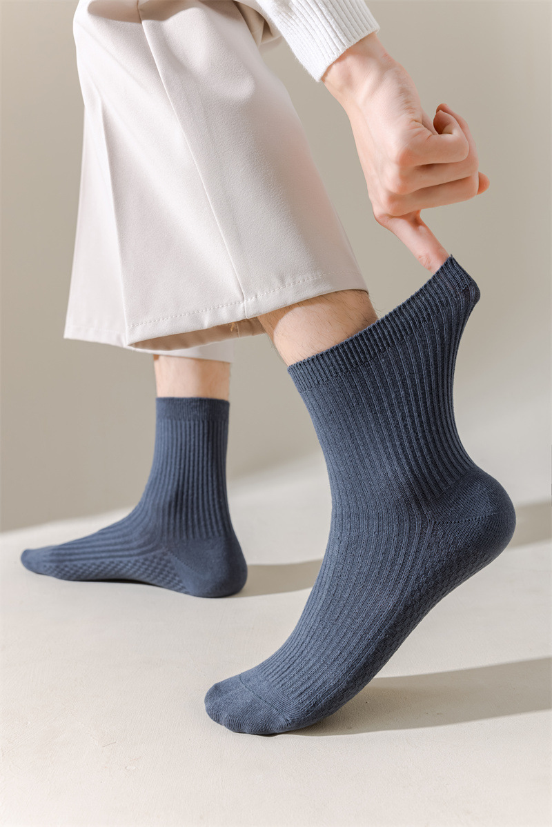 더블 니들 드로우 스트립 남성용 양말 미드 튜브 양말 뼈없는 재봉 솔리드 컬러 코튼 양말 흡수 가을 및 겨울 땀 발 마사지 스포츠 양말