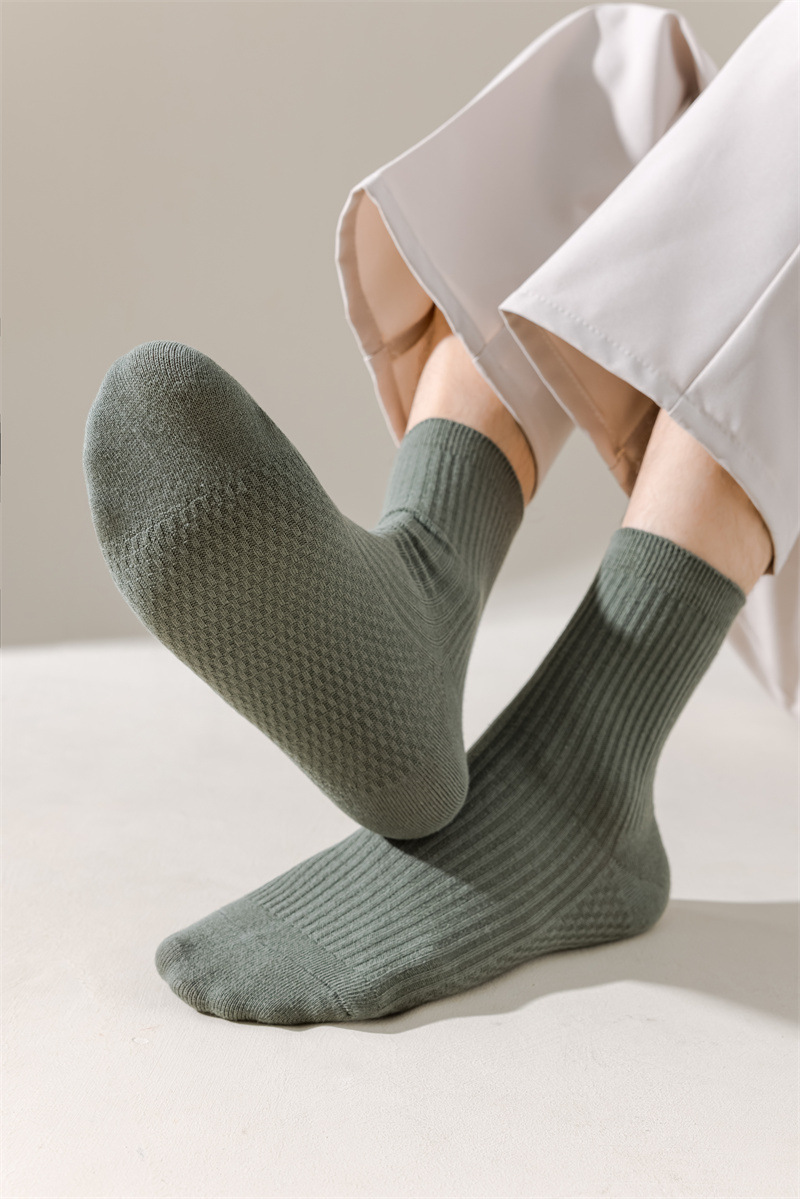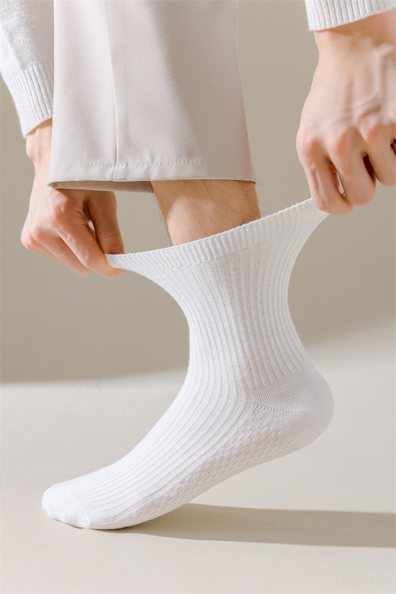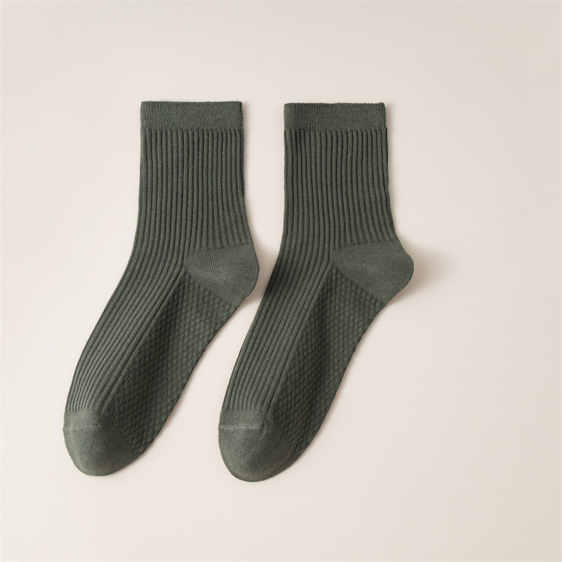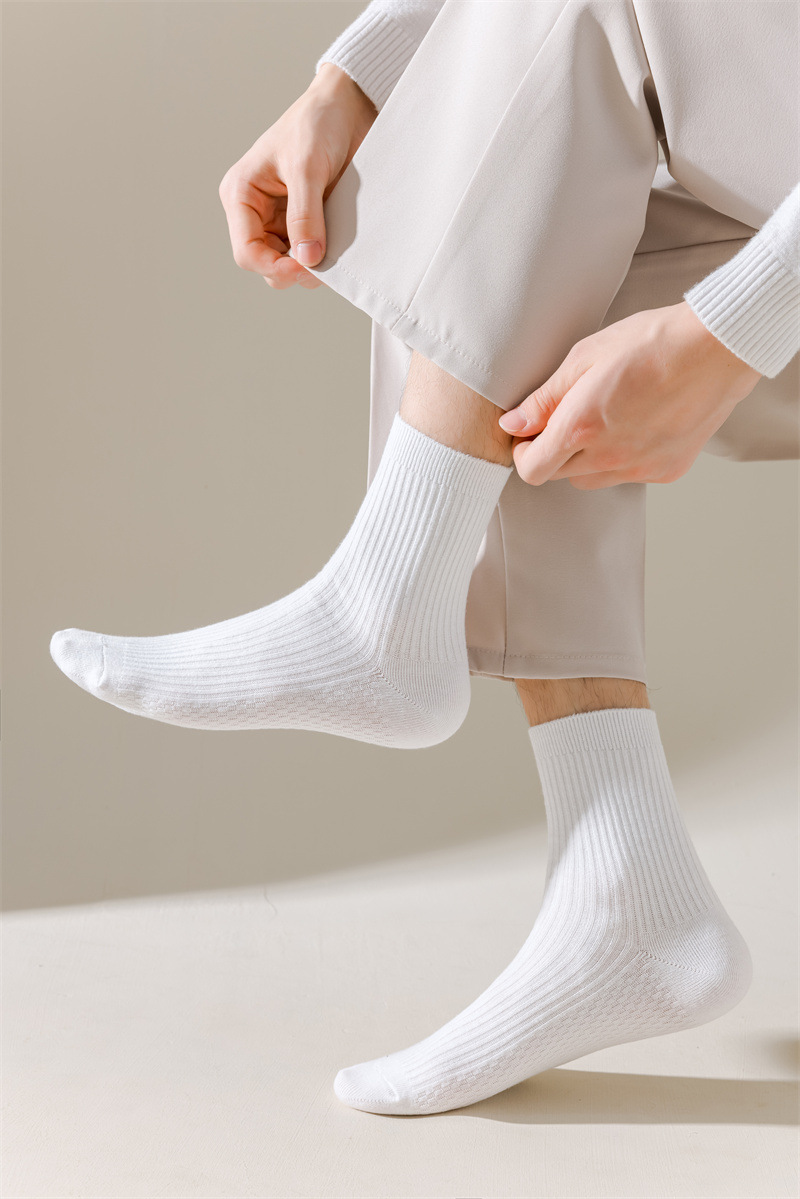 더블 니들 드로우 스트립 남성용 양말 미드 튜브 양말 뼈없는 재봉 솔리드 컬러 코튼 양말 흡수 가을 및 겨울 땀 발 마사지 스포츠 양말