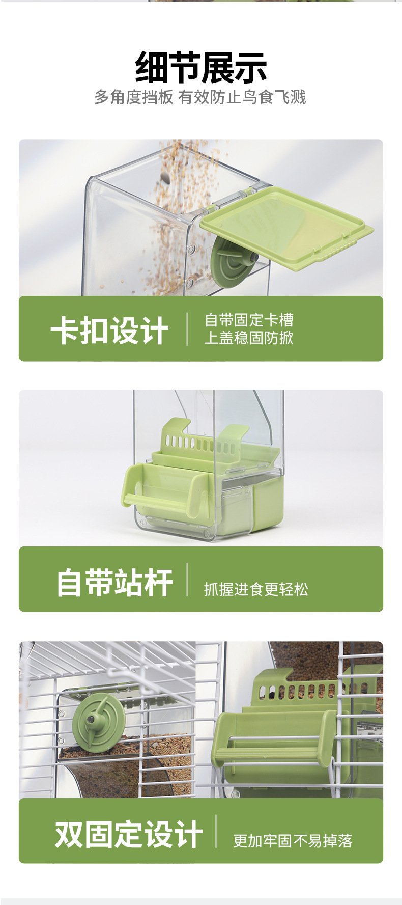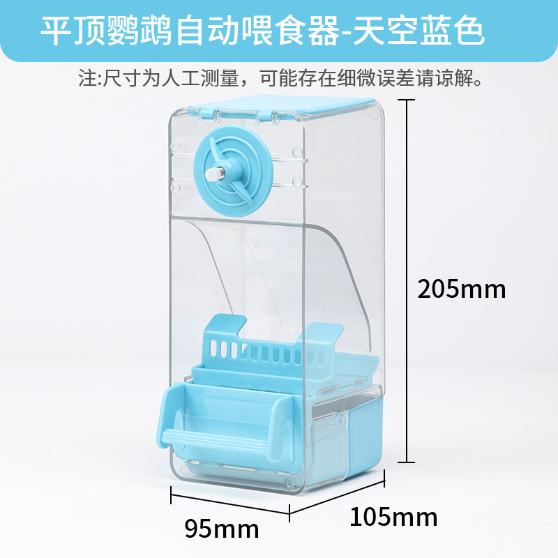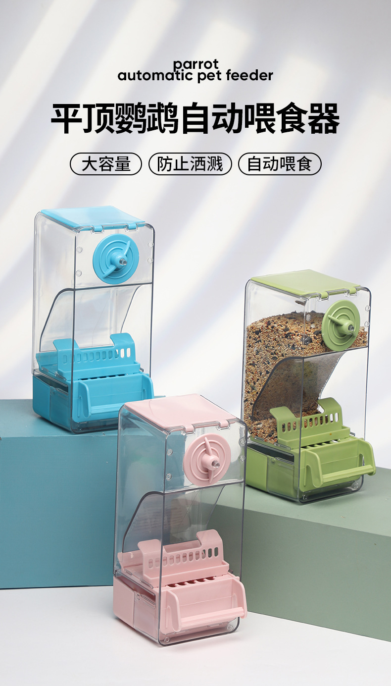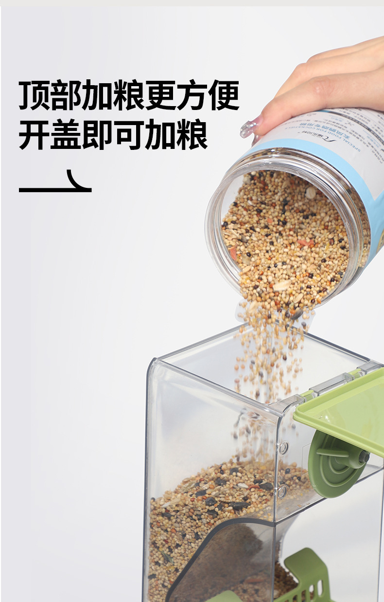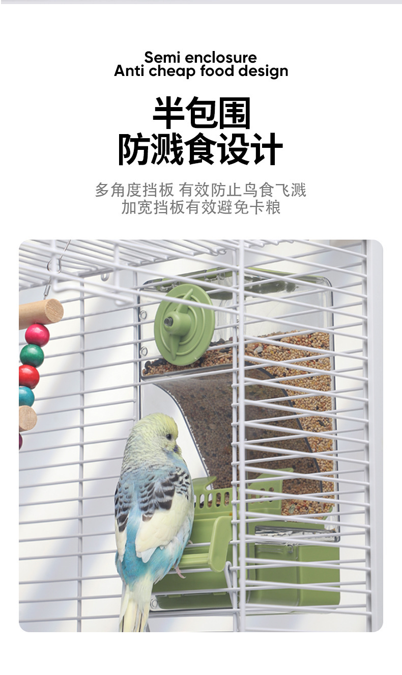 앵무새 자동 피더 식품 상자 산란 방지 및 스플래시 방지 사료 상자 Xuanfeng 타이거 스킨 버드 피더 곡물 쉘 분리기