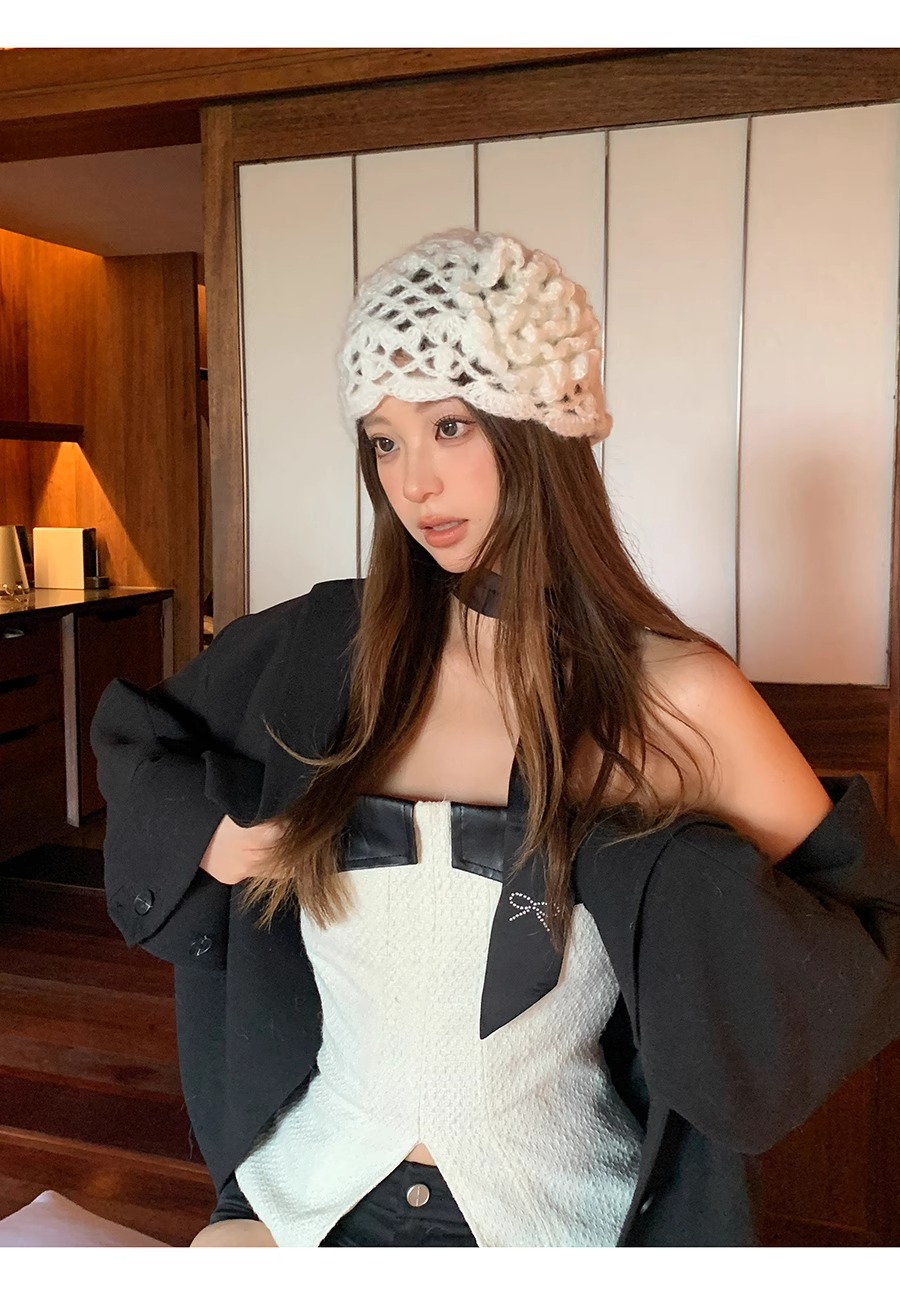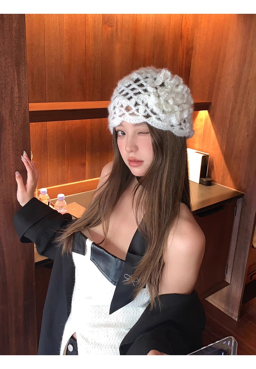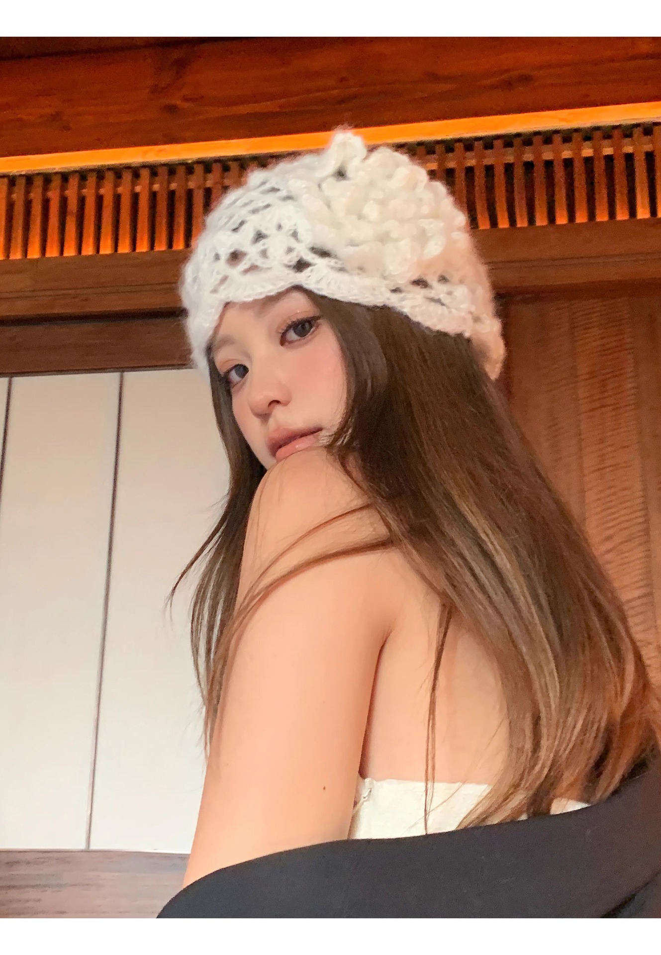봄과 가을 원래 수제 얼굴 작은 크로 셰 뜨개질 꽃 3 차원 꽃 머리 모자 여성의 예술적 복고풍 니트 힙 캡스토어 가기