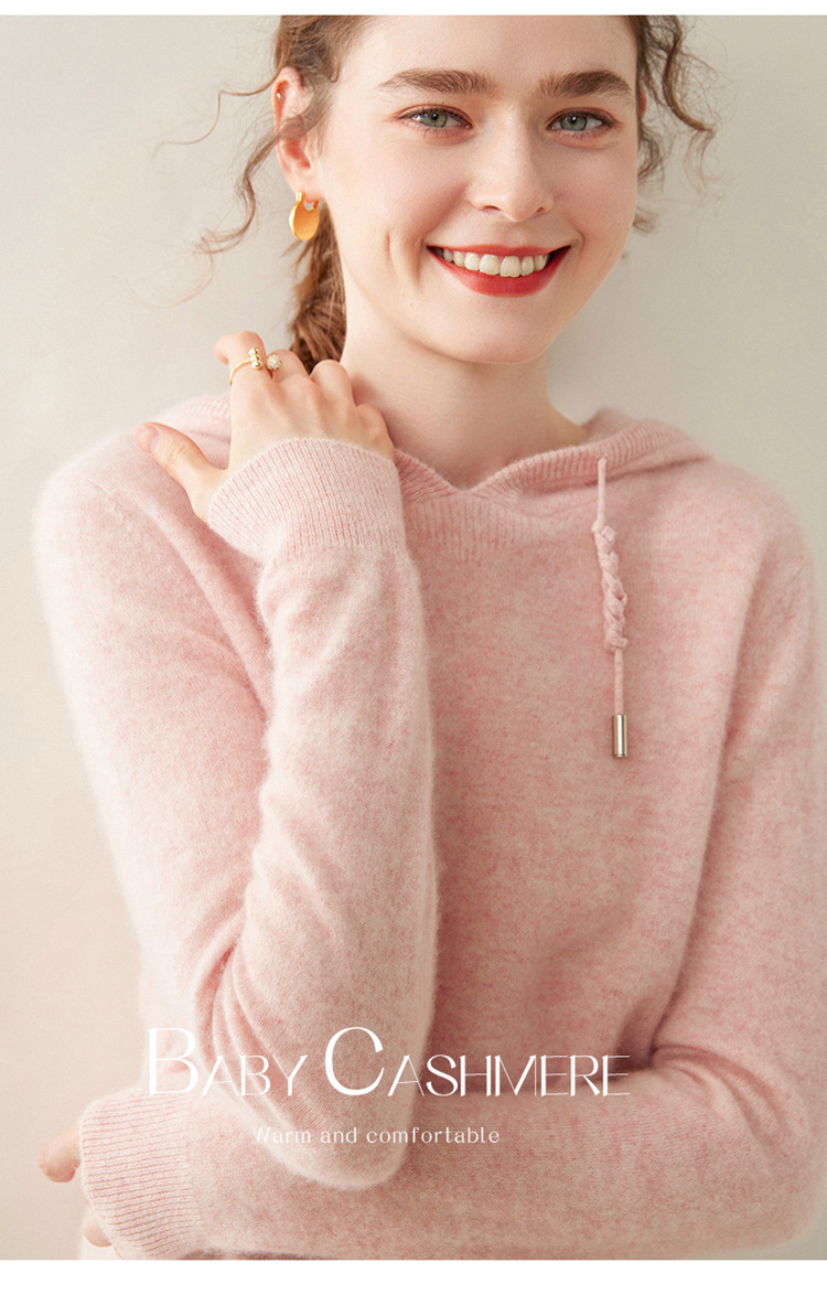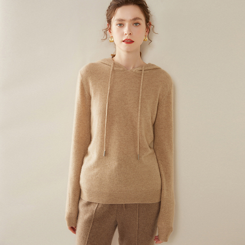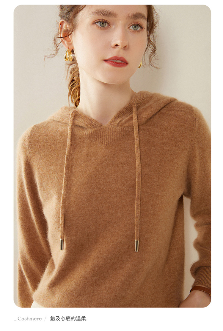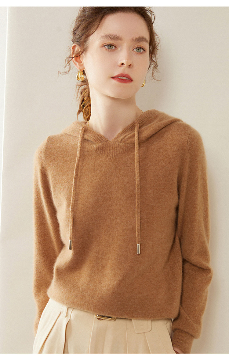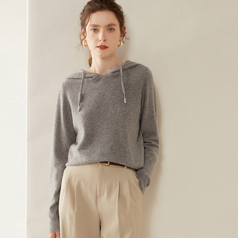 에르도시시 100% 순수 캐시미어 후드티 여성용 가을 겨울 루즈핏 얇은 후드 스웨터 니트 베이스웨어스토어 가기