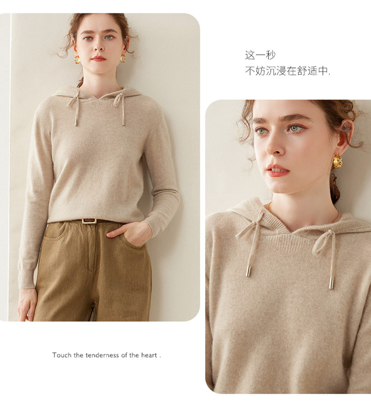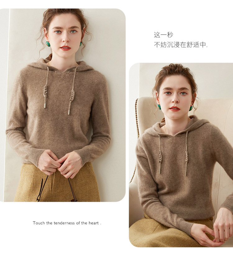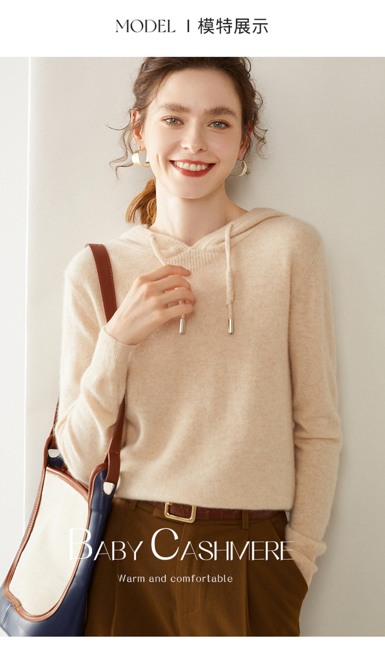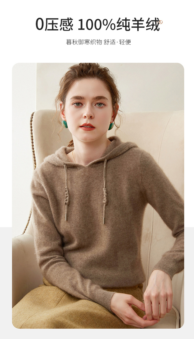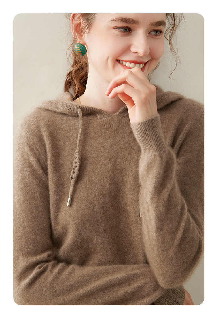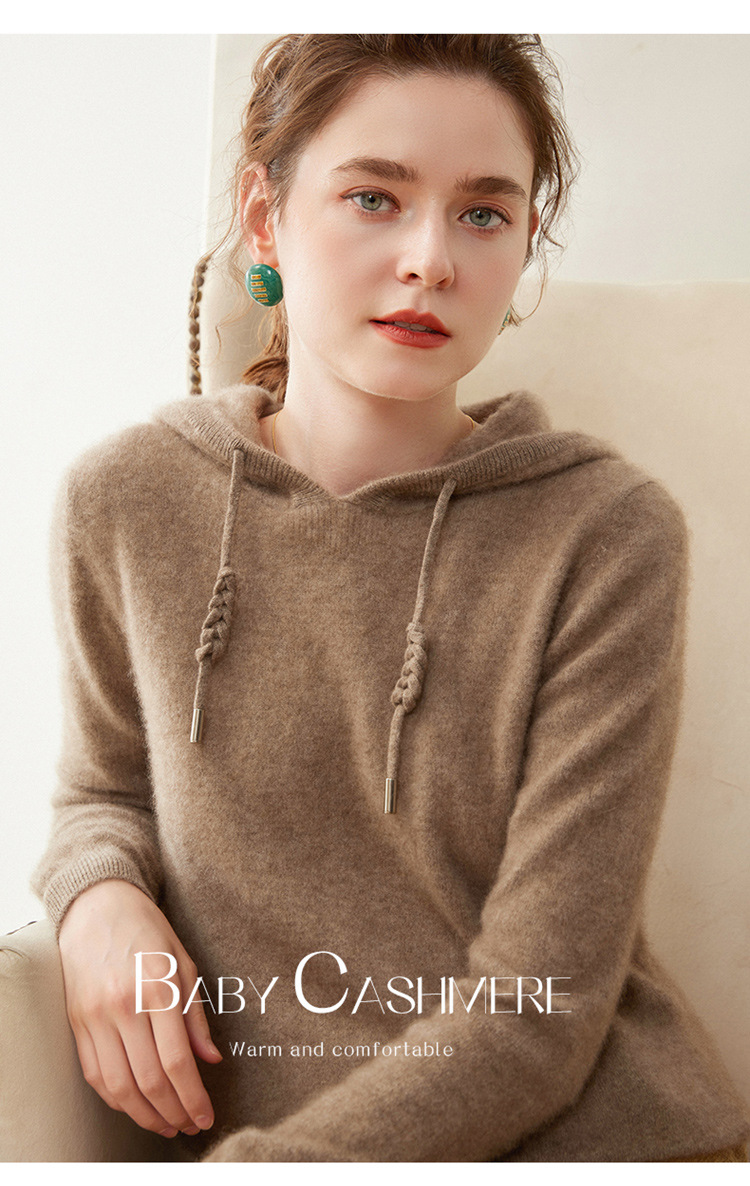 에르도시시 100% 순수 캐시미어 후드티 여성용 가을 겨울 루즈핏 얇은 후드 스웨터 니트 베이스웨어스토어 가기