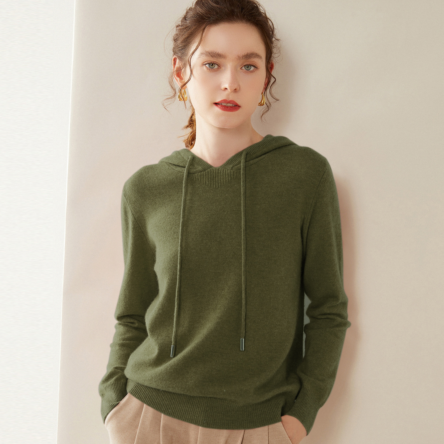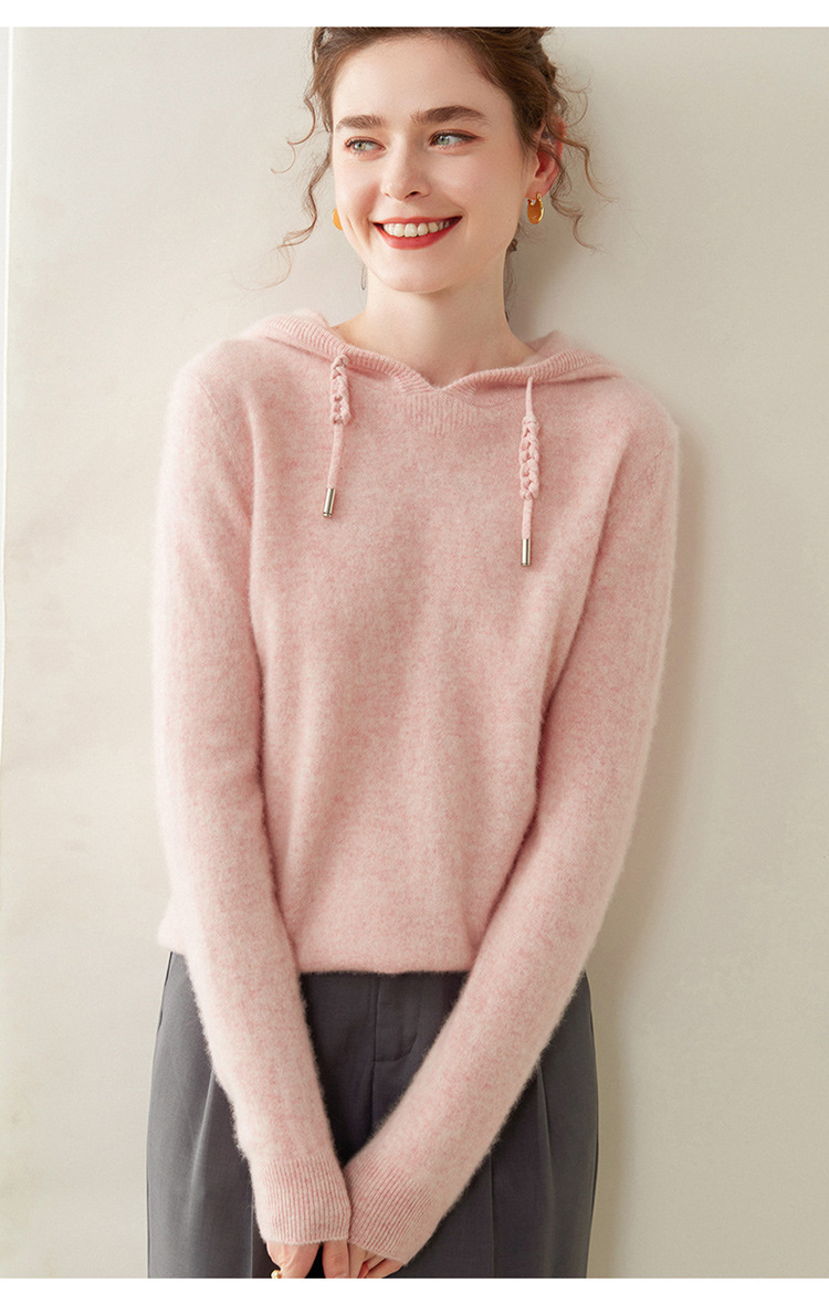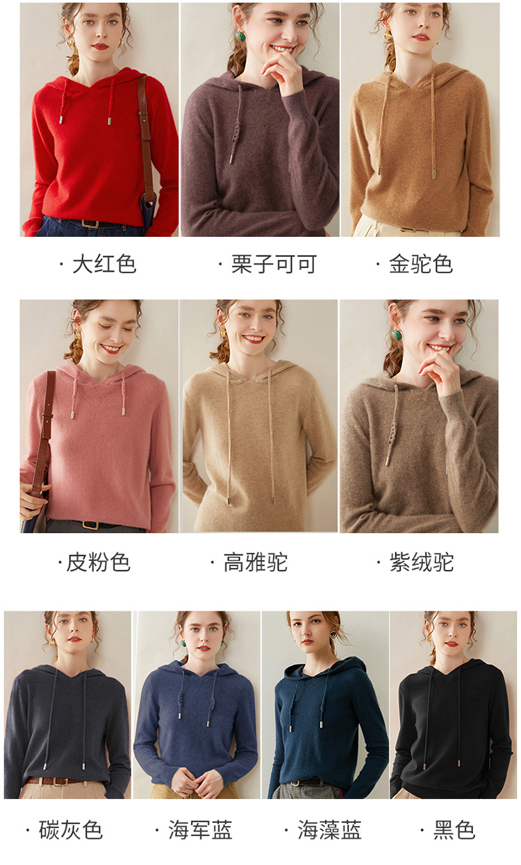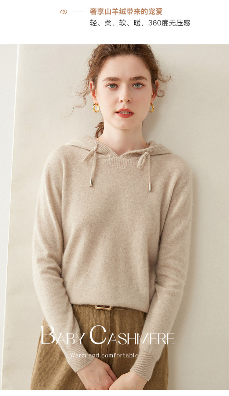 에르도시시 100% 순수 캐시미어 후드티 여성용 가을 겨울 루즈핏 얇은 후드 스웨터 니트 베이스웨어스토어 가기