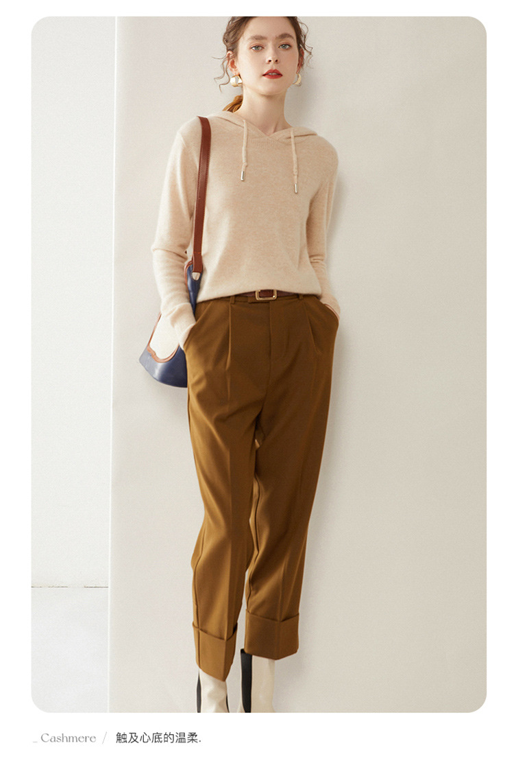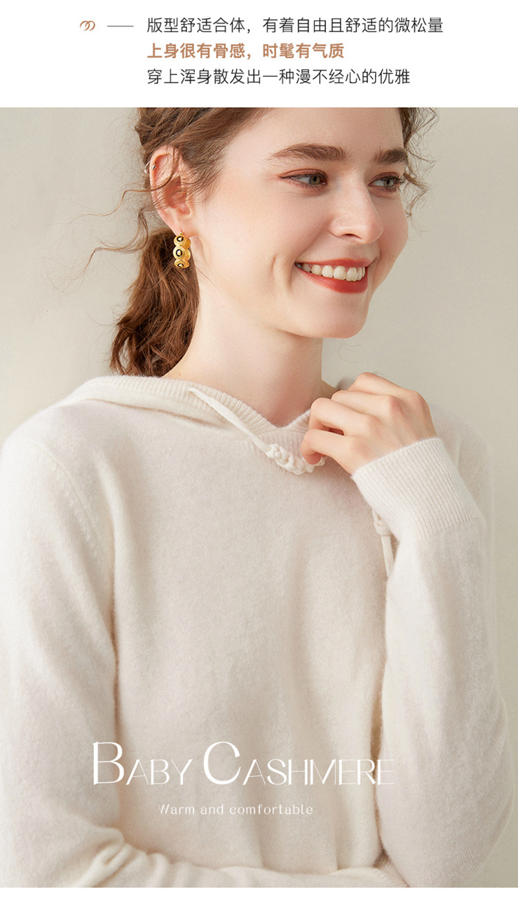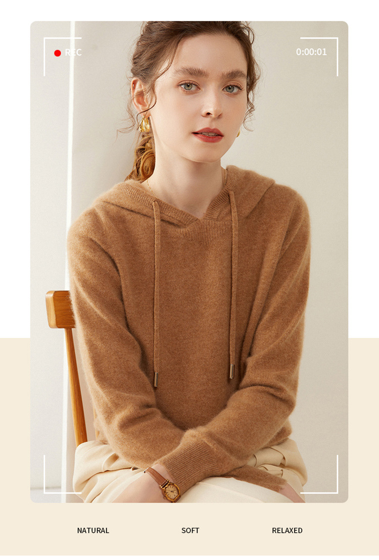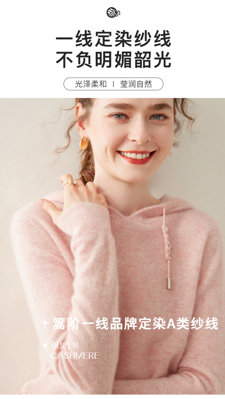에르도시시 100% 순수 캐시미어 후드티 여성용 가을 겨울 루즈핏 얇은 후드 스웨터 니트 베이스웨어