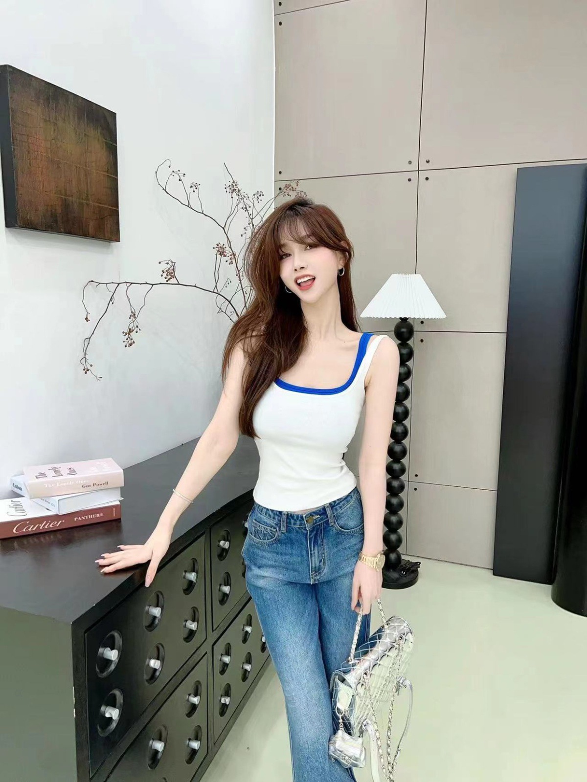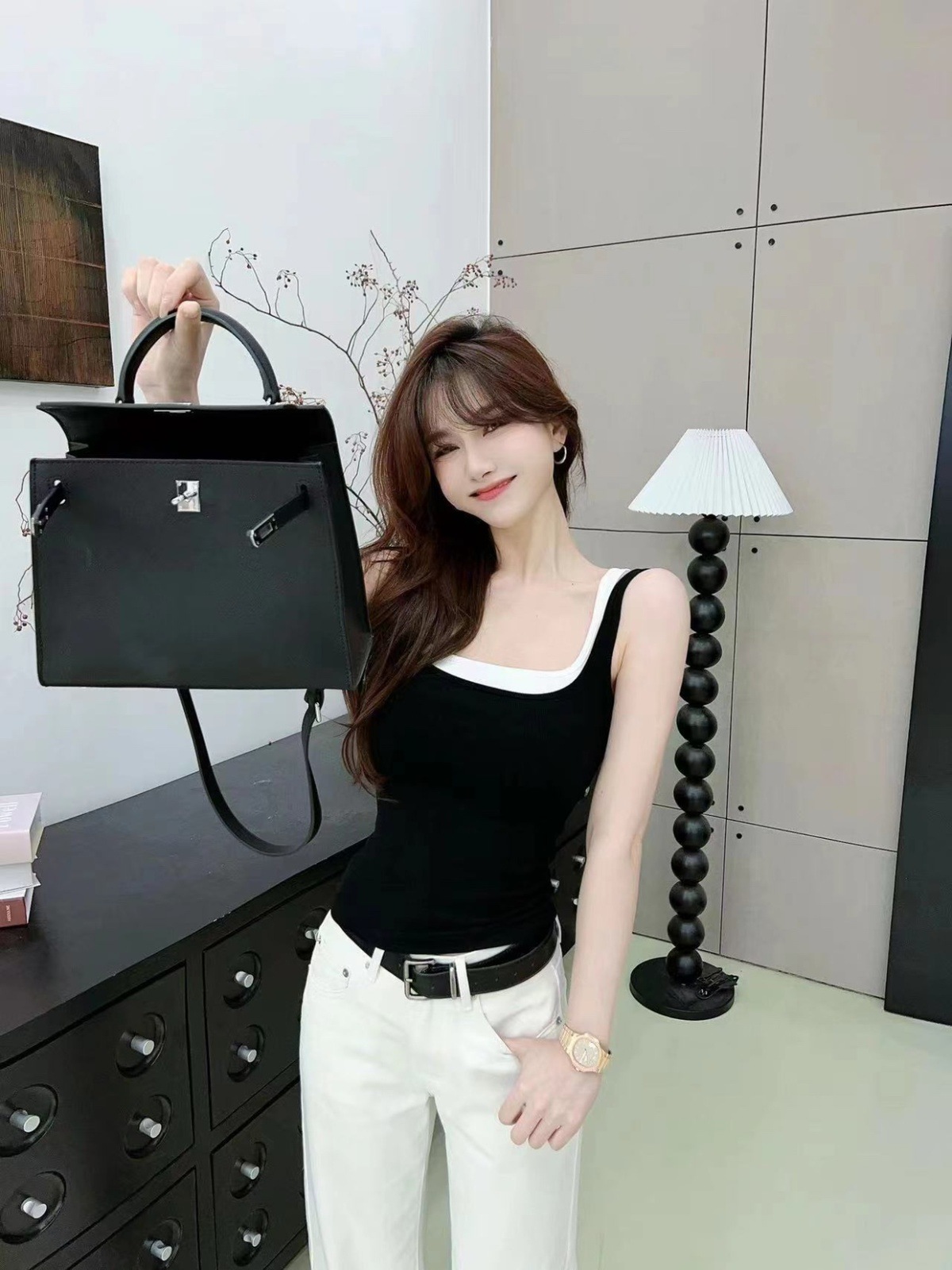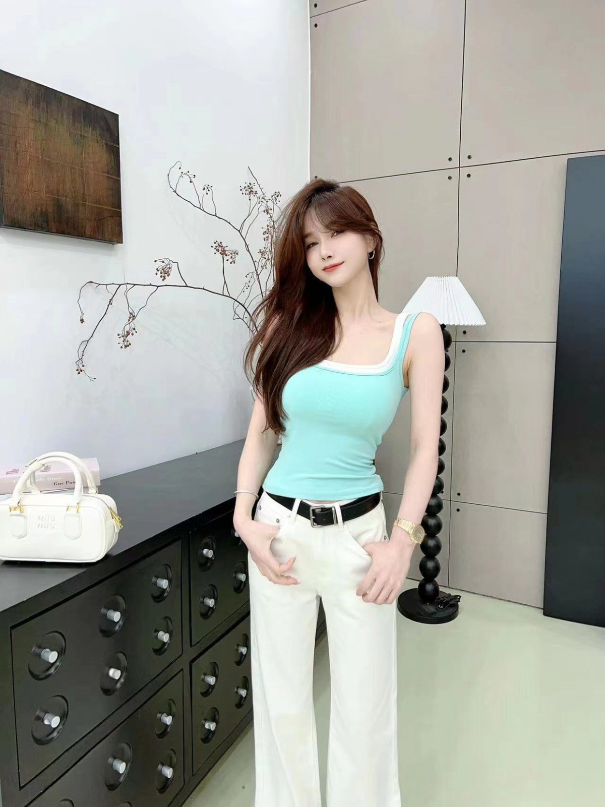 더블 무스 컬러 대비 가짜 2 피스 원피스 컵 카미 솔 조끼, 가슴 패드 여자 여름 아름다운 뒷면 슬림 핏 민소매 탑