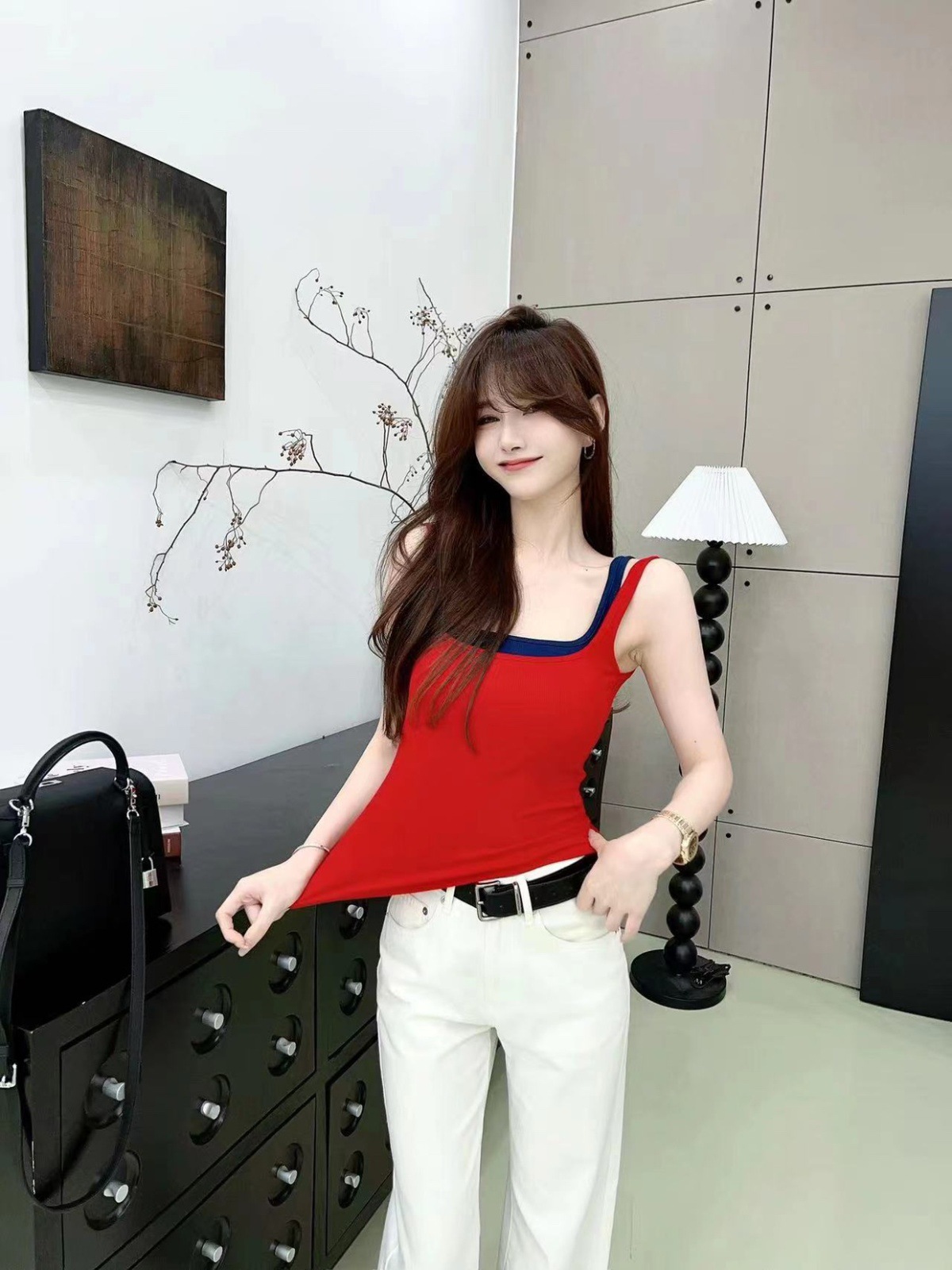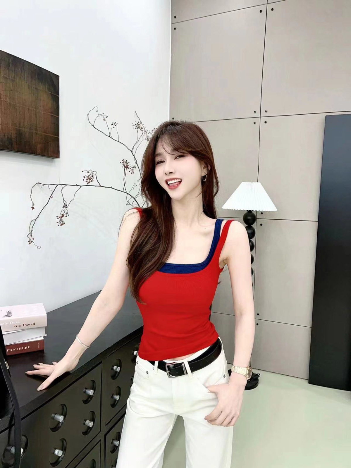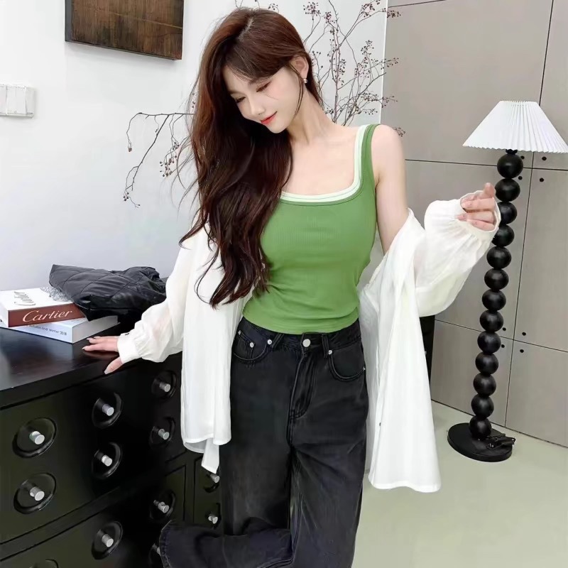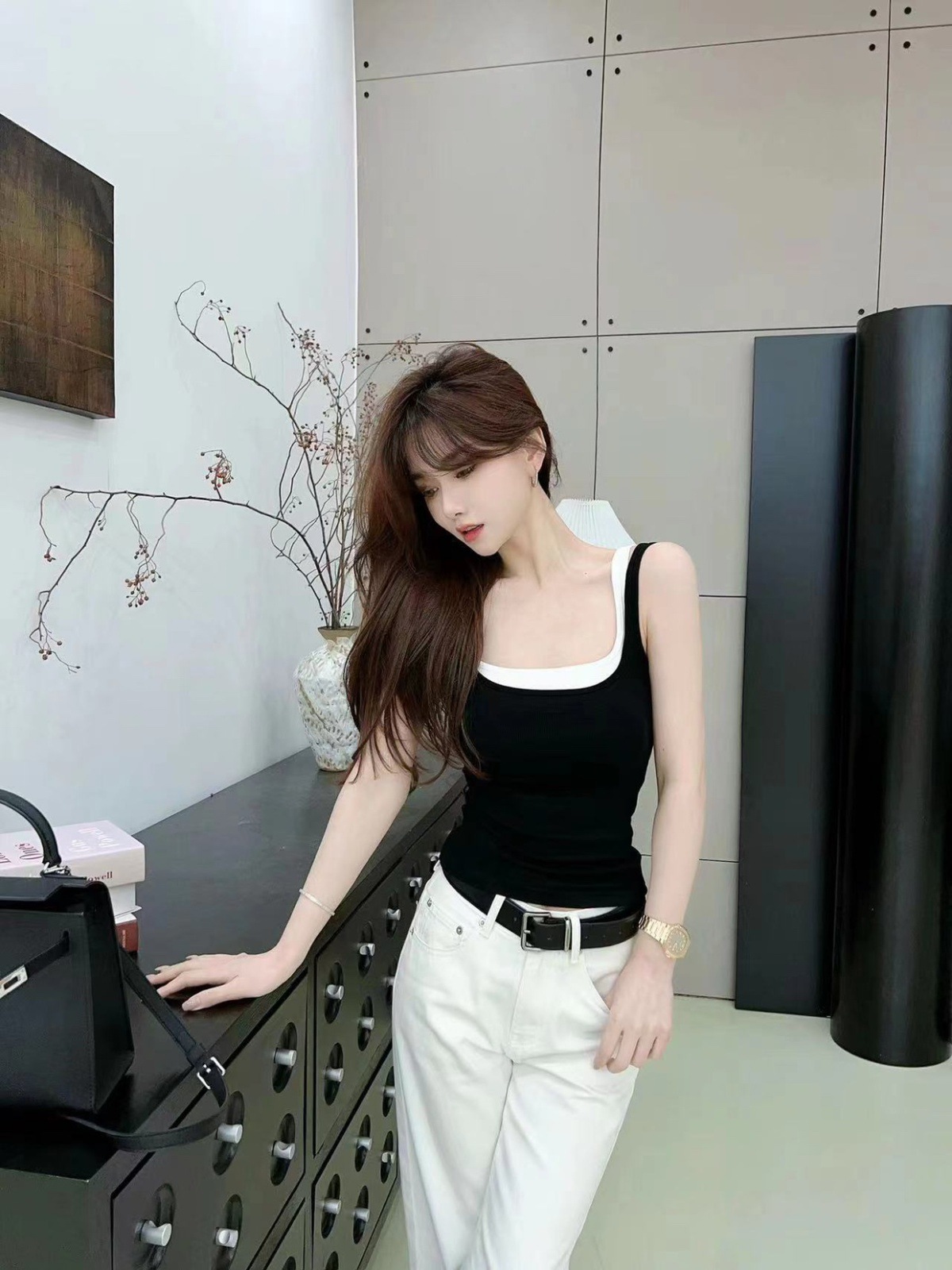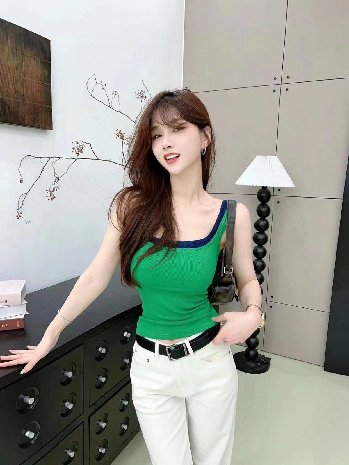 더블 무스 컬러 대비 가짜 2 피스 원피스 컵 카미 솔 조끼, 가슴 패드 여자 여름 아름다운 뒷면 슬림 핏 민소매 탑스토어 가기