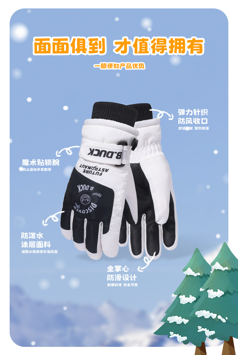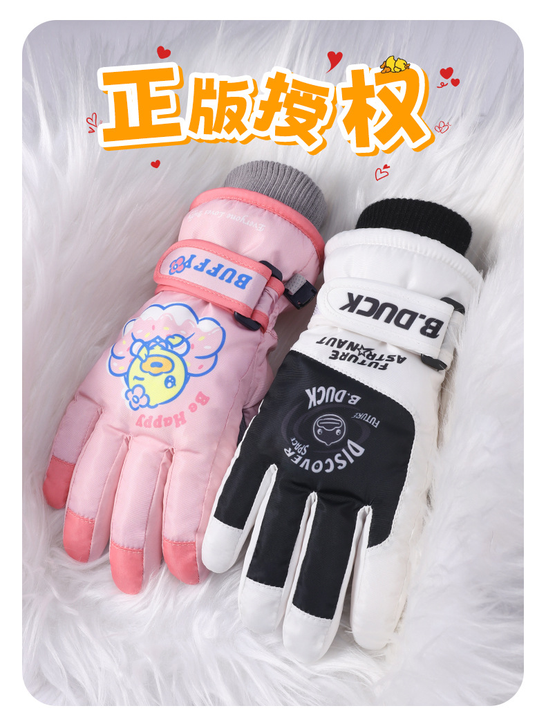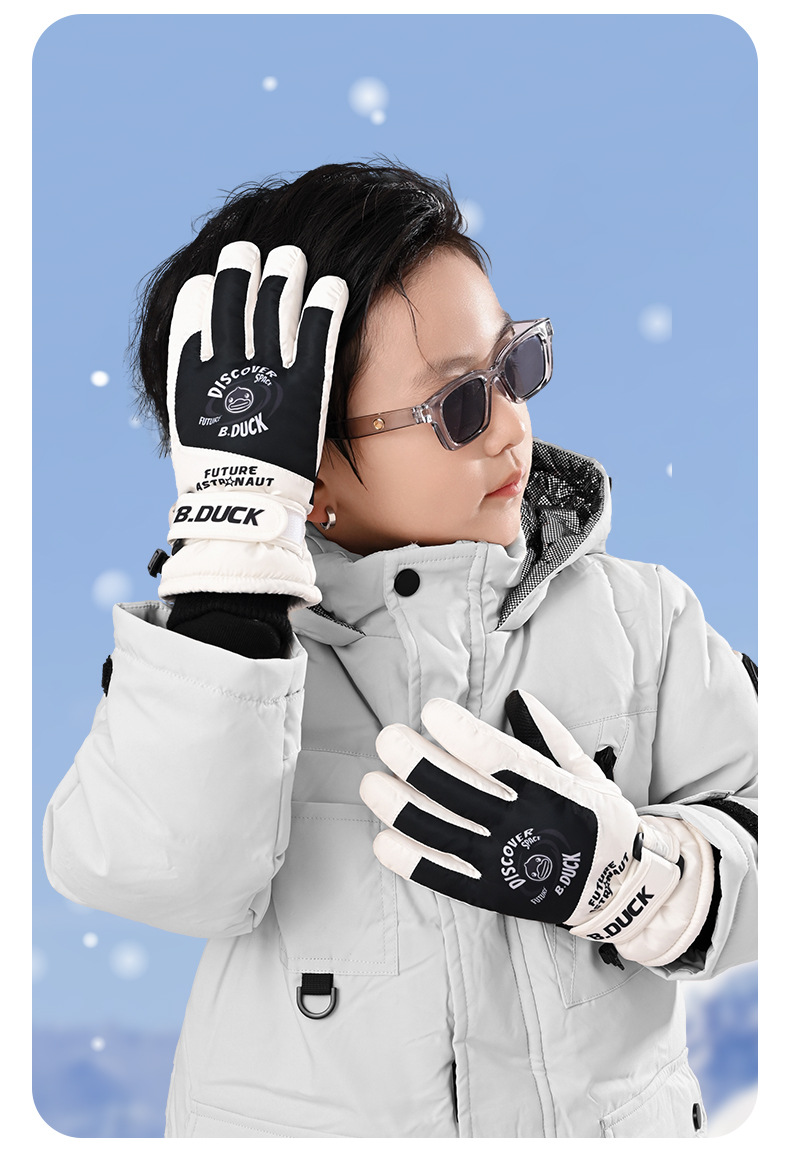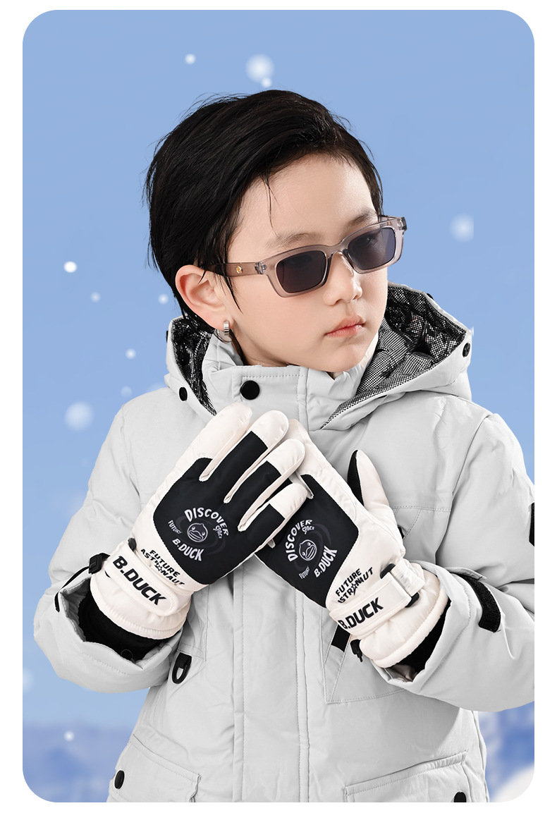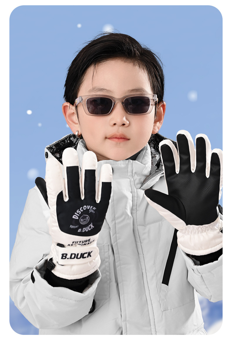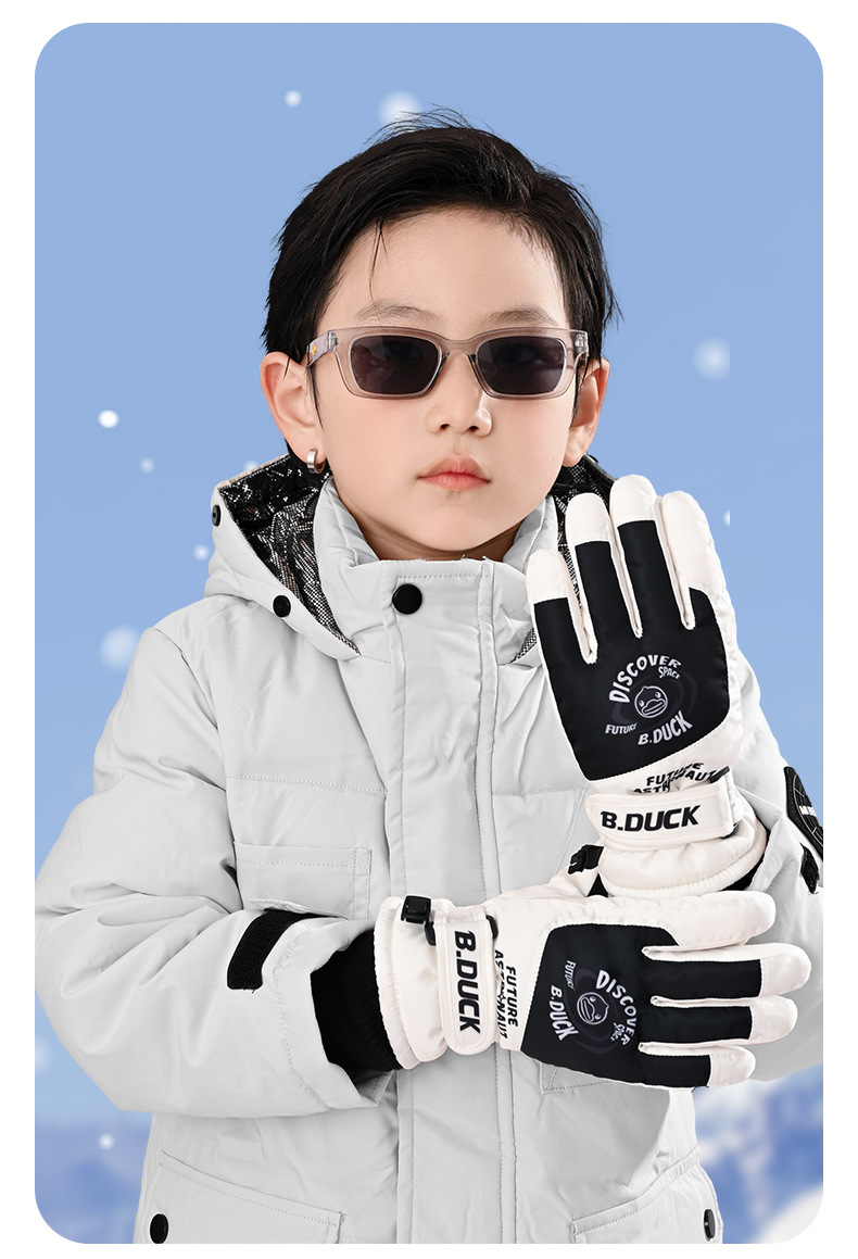 B. 오리 작은 노란 오리 어린이 장갑 소년 겨울 따뜻한 승마 장갑 소녀 방풍 방수 스키 장갑